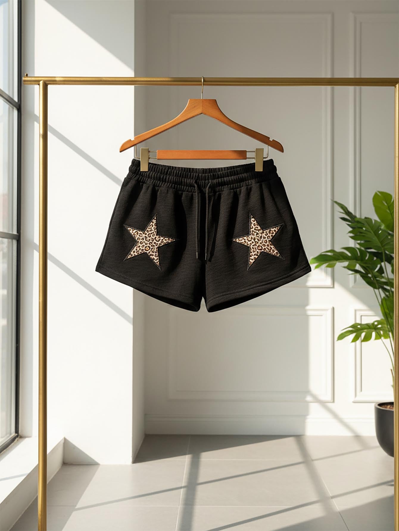 EZwear Women's Leopard Print & Star Casual Versatile Shorts