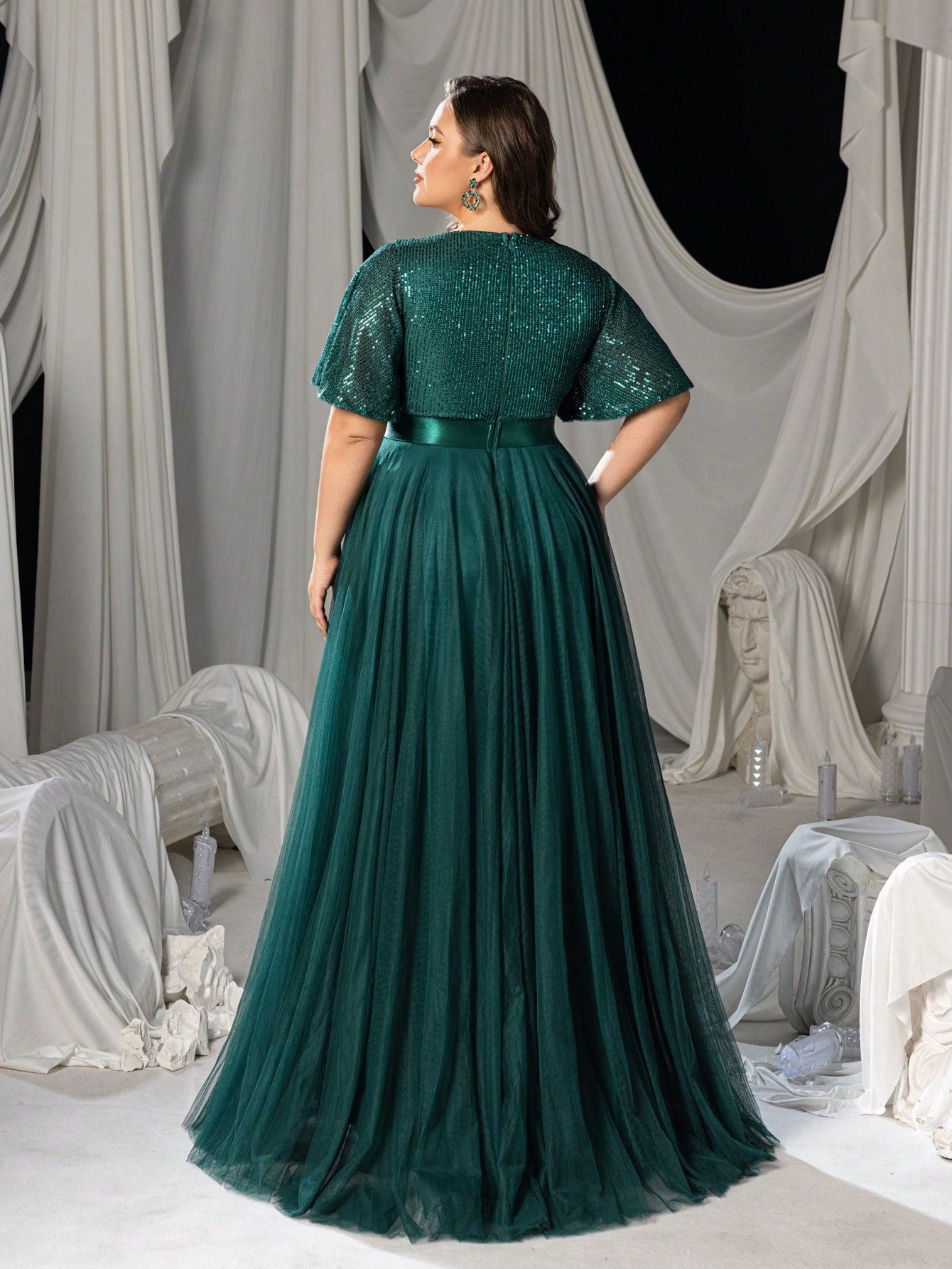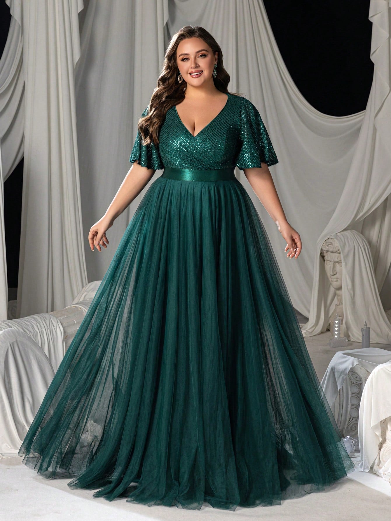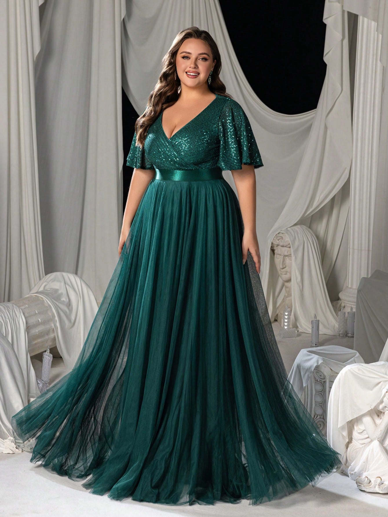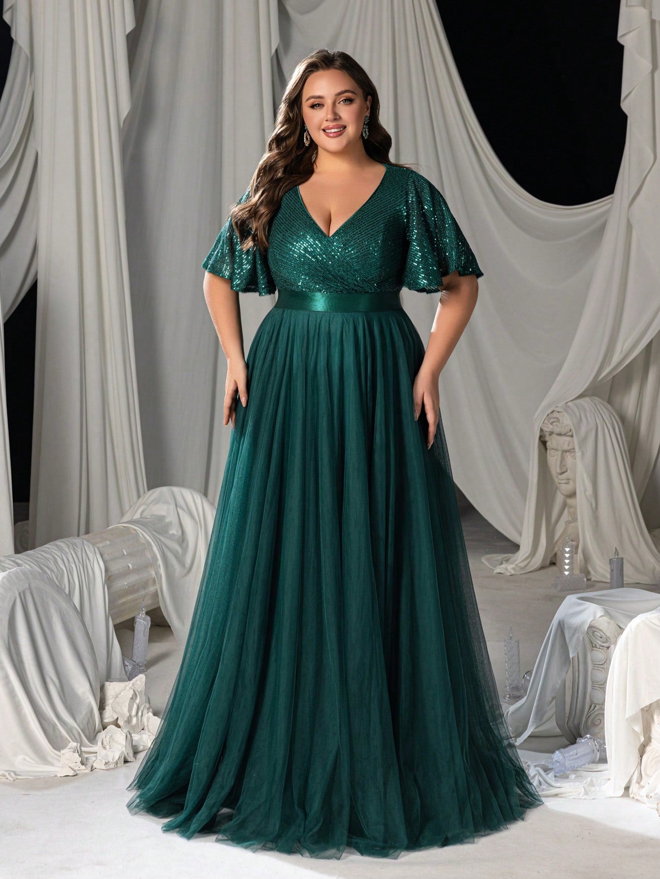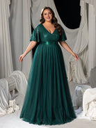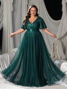 Faeriesty Curve Plus Women Elegant 's Deep V-Neck Chiffon A-Line Evening Dress With Flutter Sleeves – Formal Banquet Gown