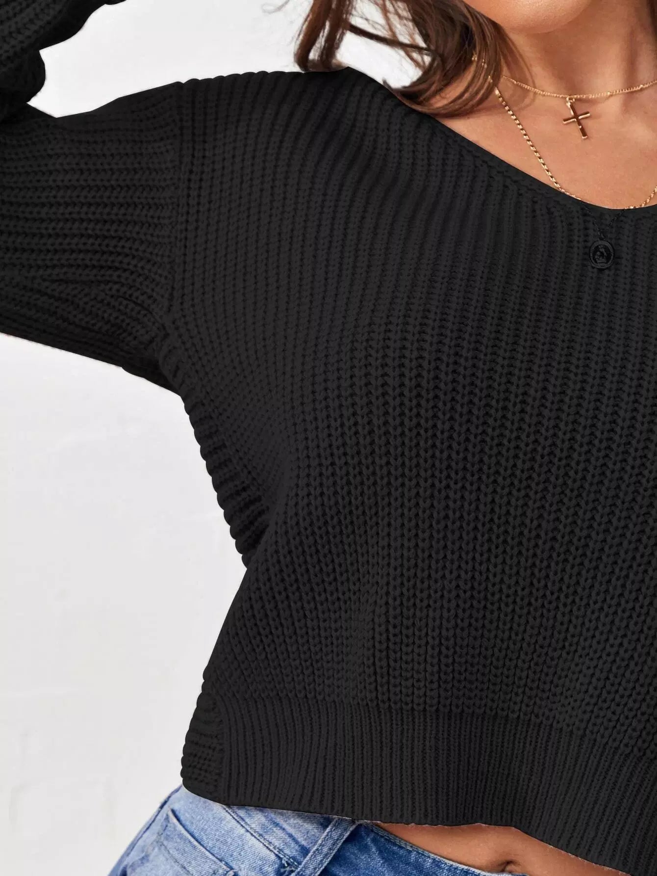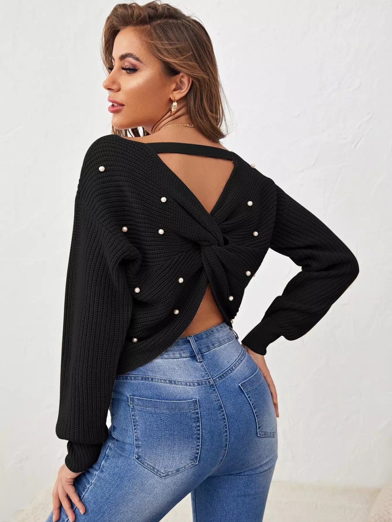 Faux Pearl Accents Twist-Back Sweater