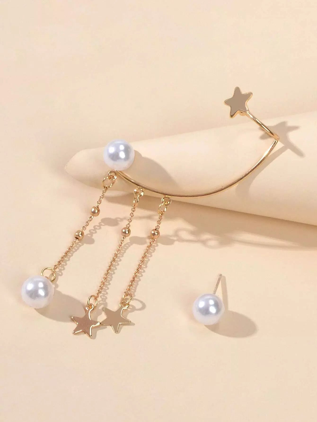 Faux Pearl Decor Star Drop Earrings