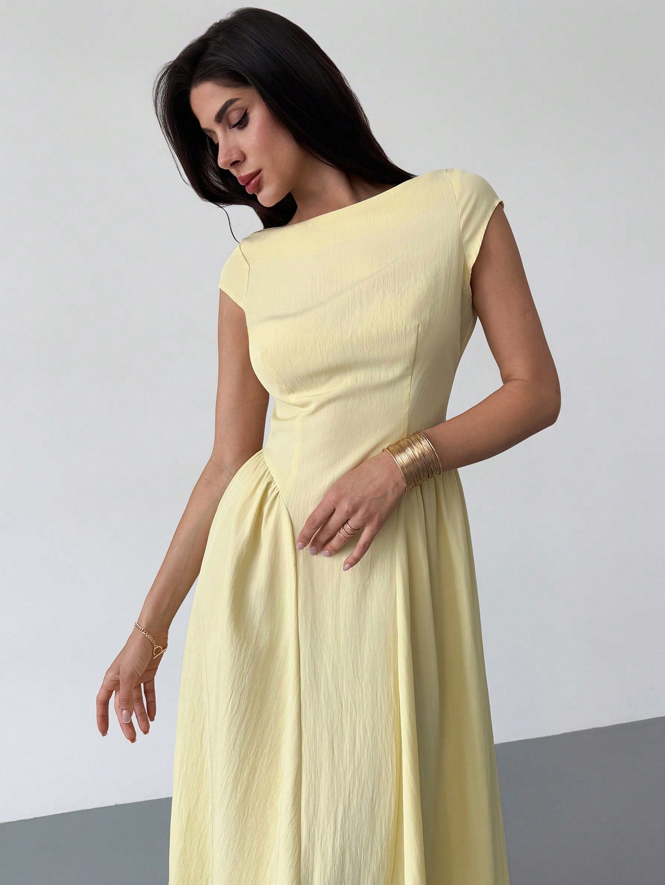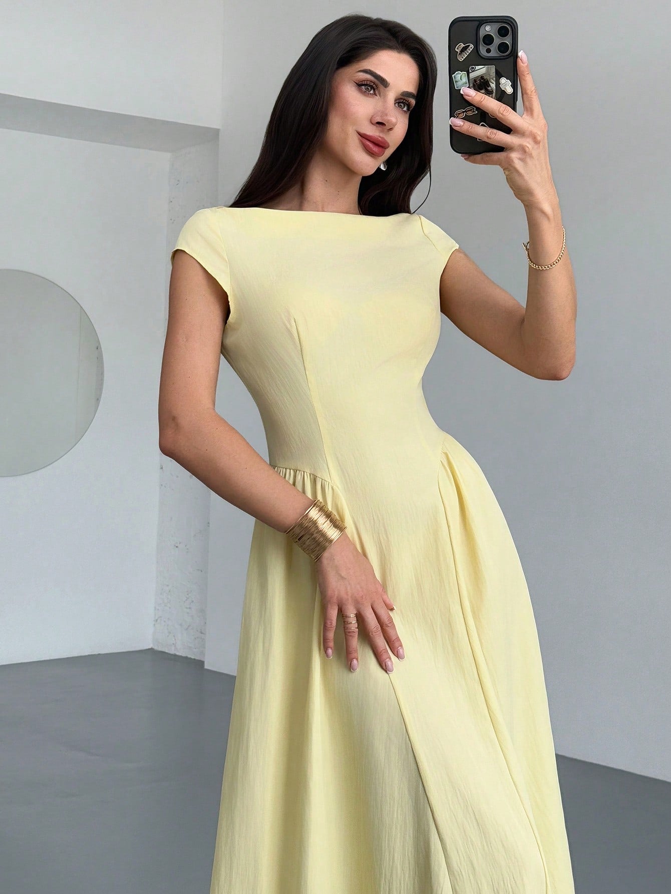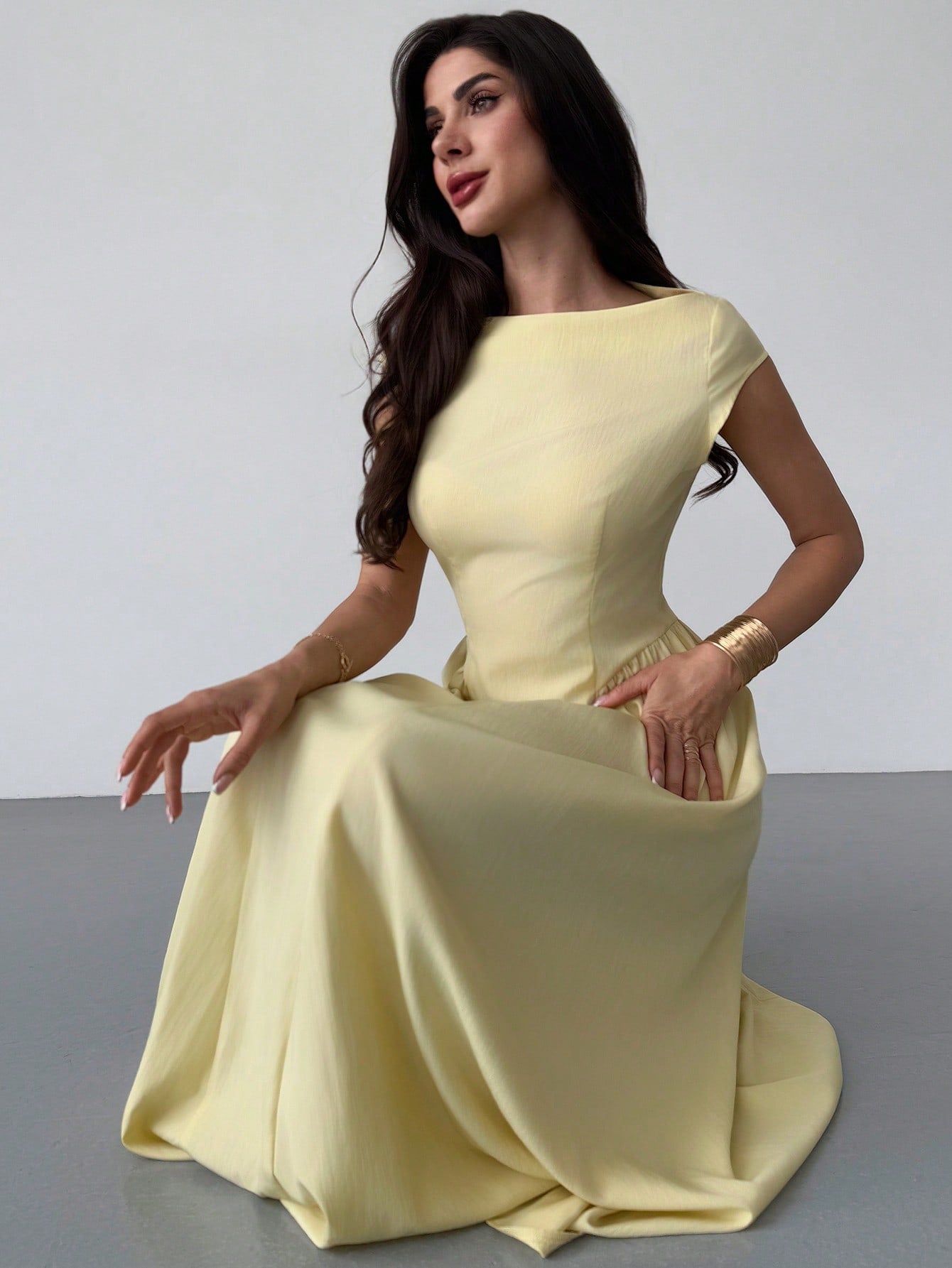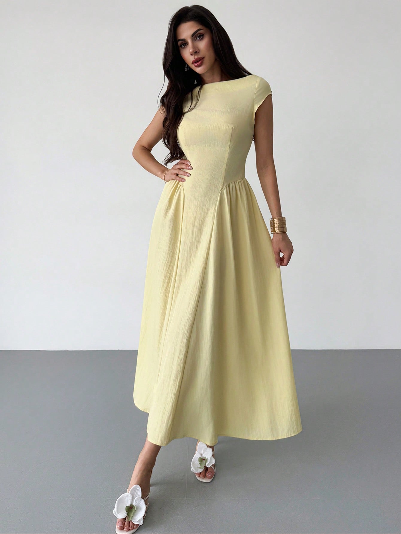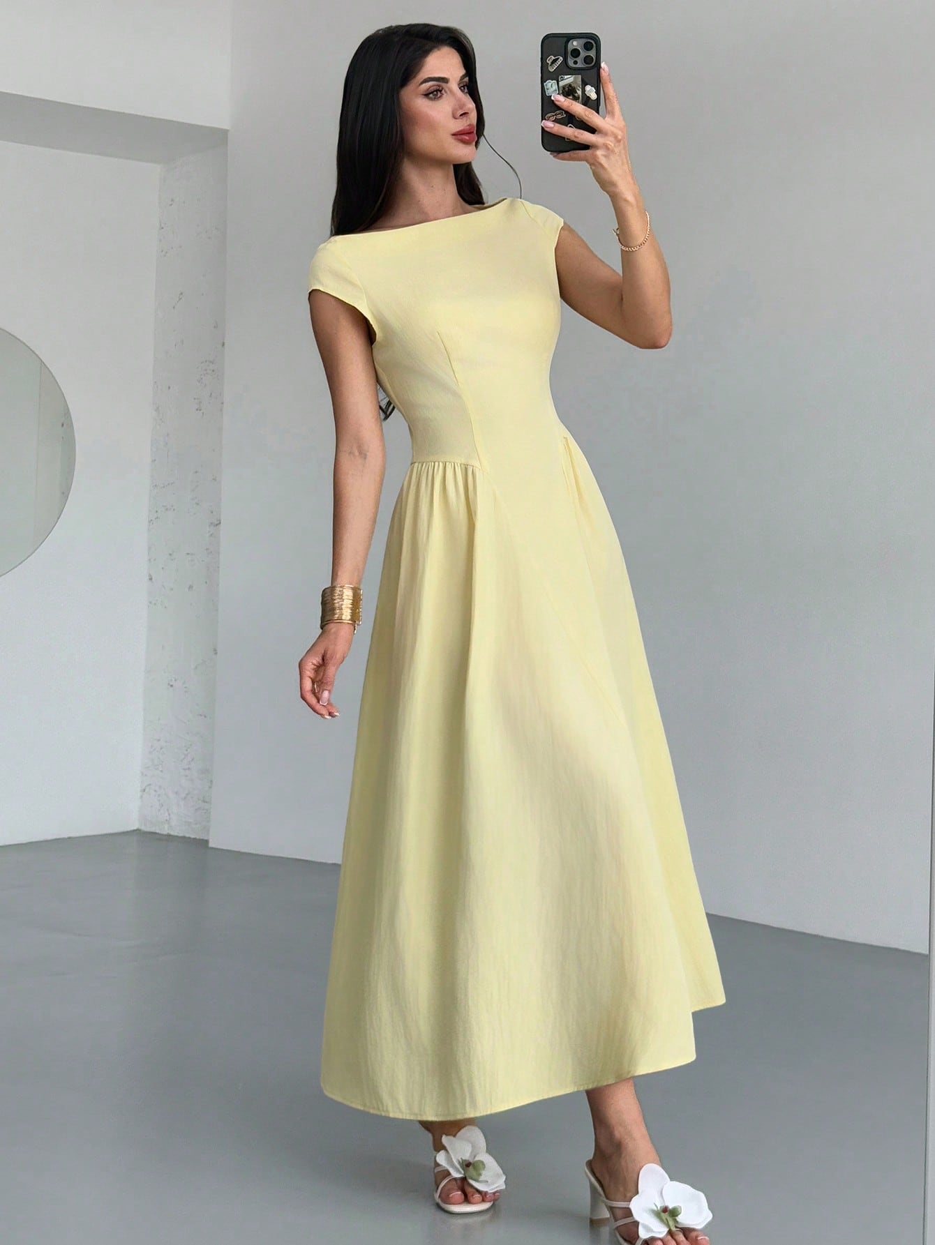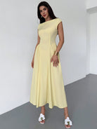 Firerie Women's Elegant Daily Fashion New Vacation Lantern Sleeve Cinched Waist A-Line Midi Dress