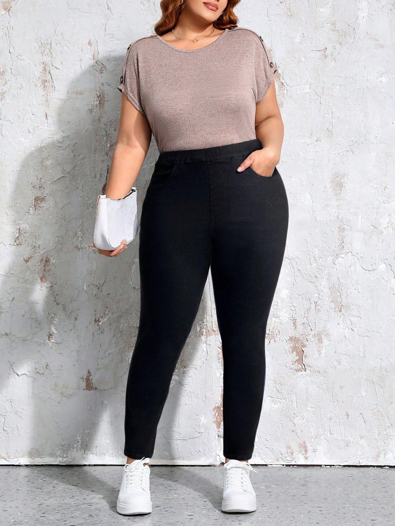 Flexra Coolmax Plus Size Casual Versatile Solid Color Skinny Jeans