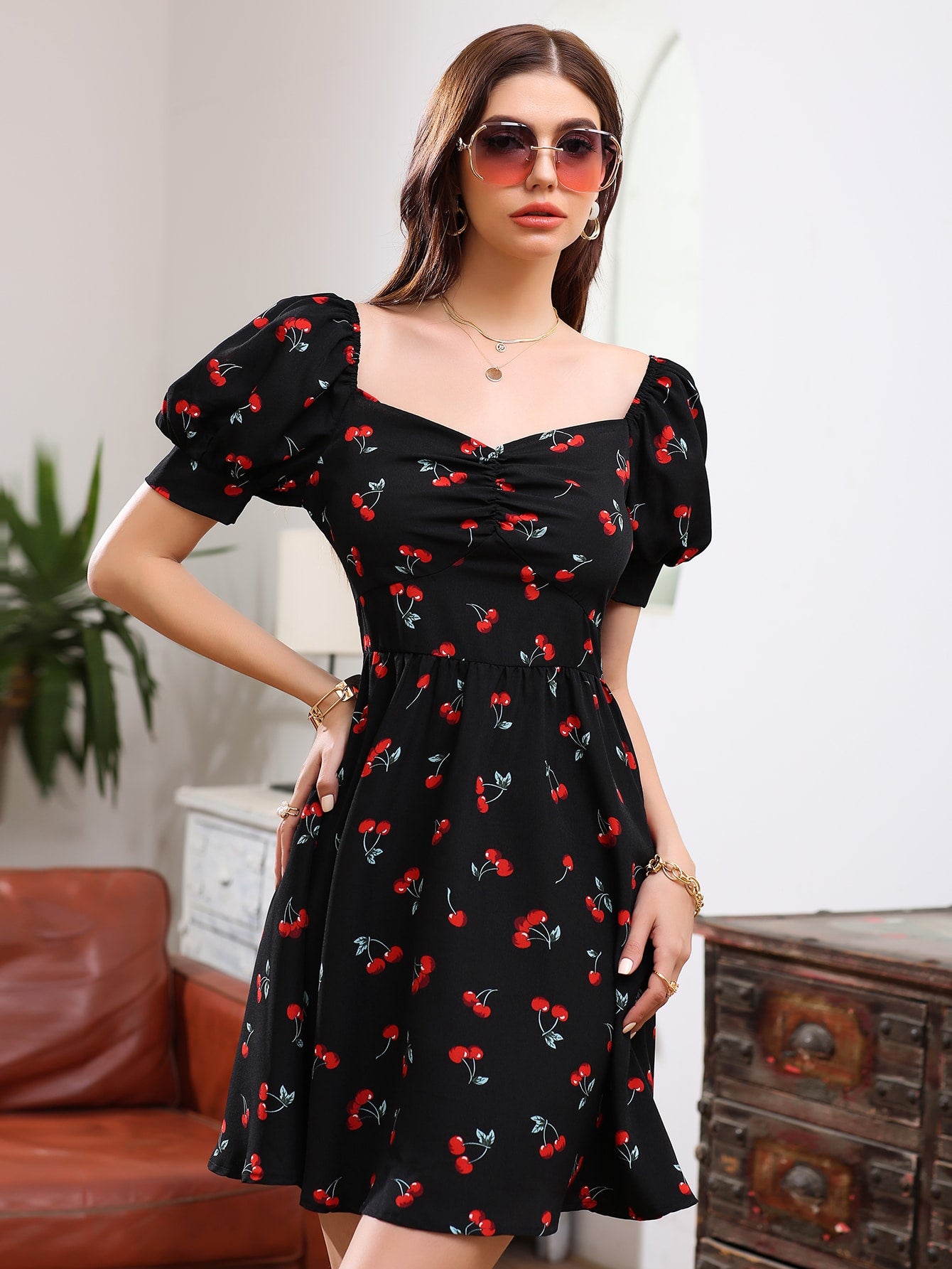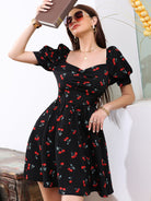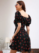 women Flirla Allover Cherry Sweetheart Neck Dress