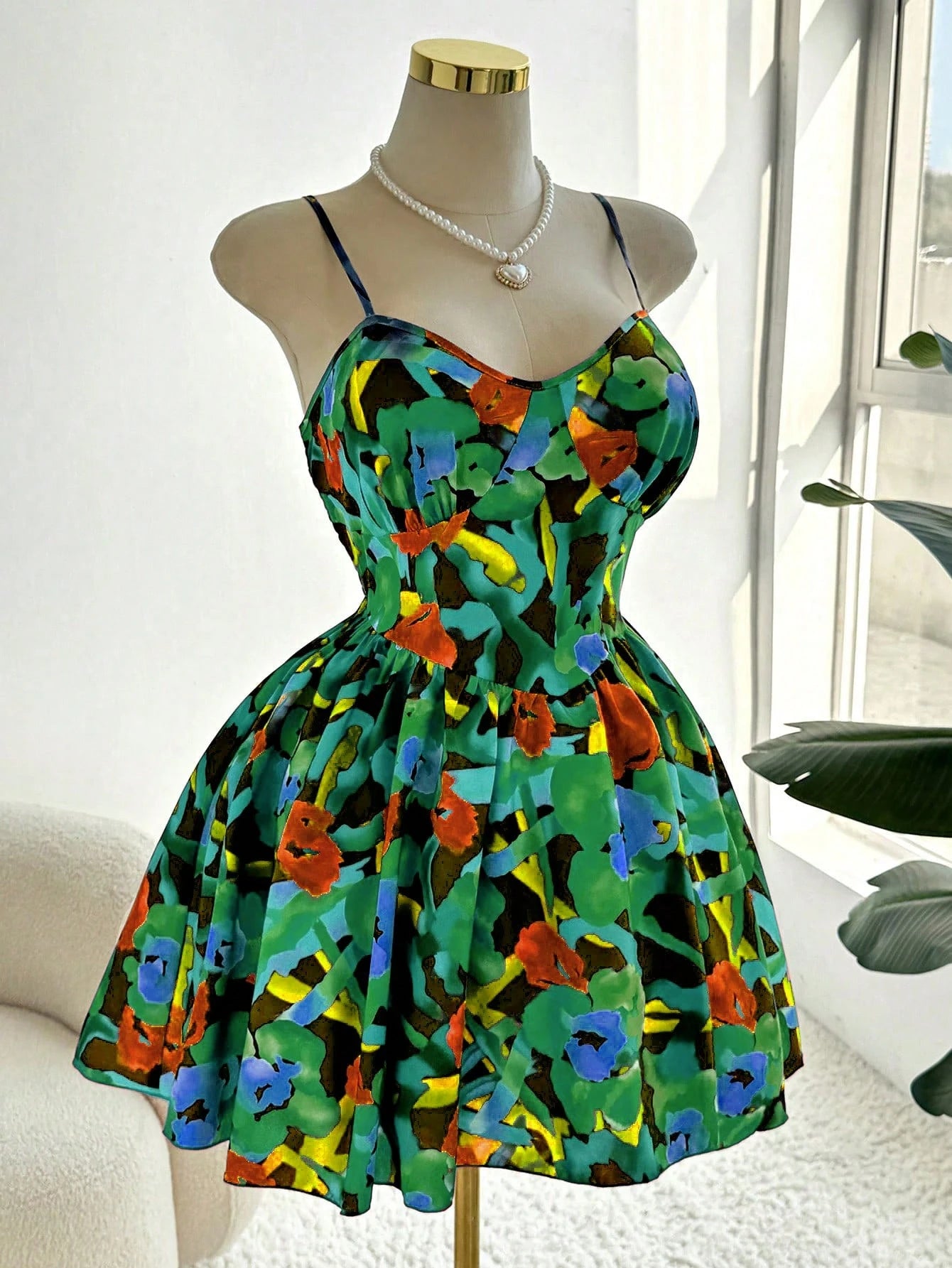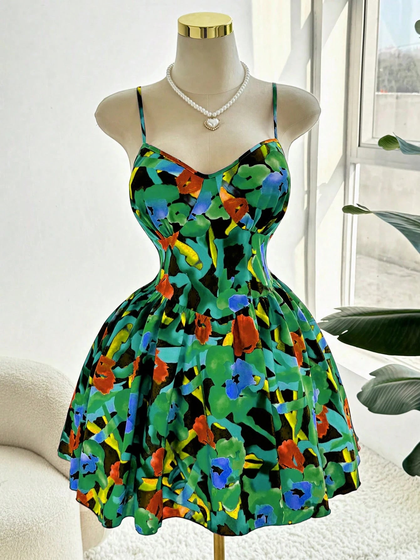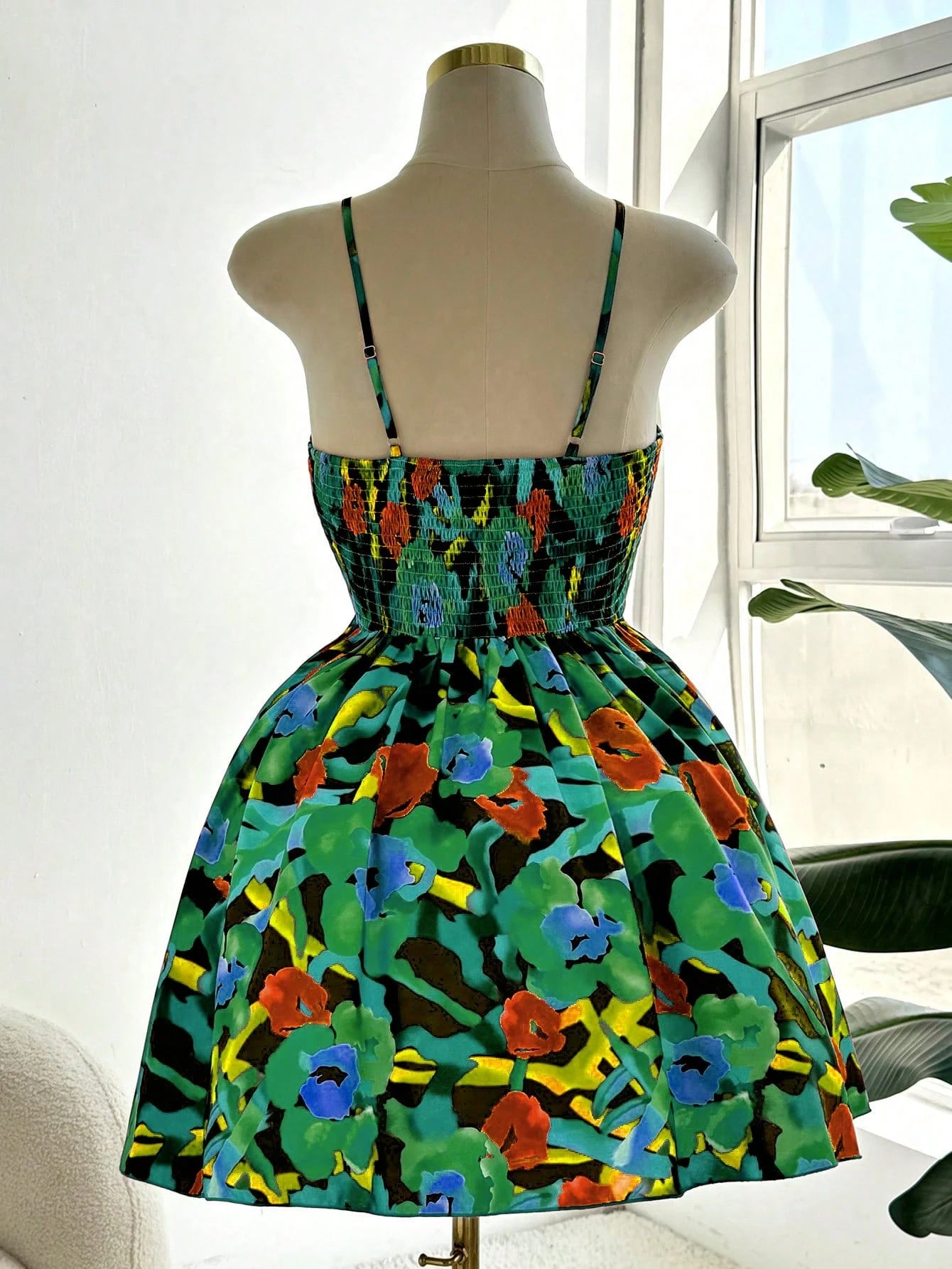 Flirla Casual Plus Size Women Digital Print Elastic Cinched Waist Strap Dress, Fashion Design, Versatile,
