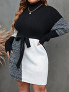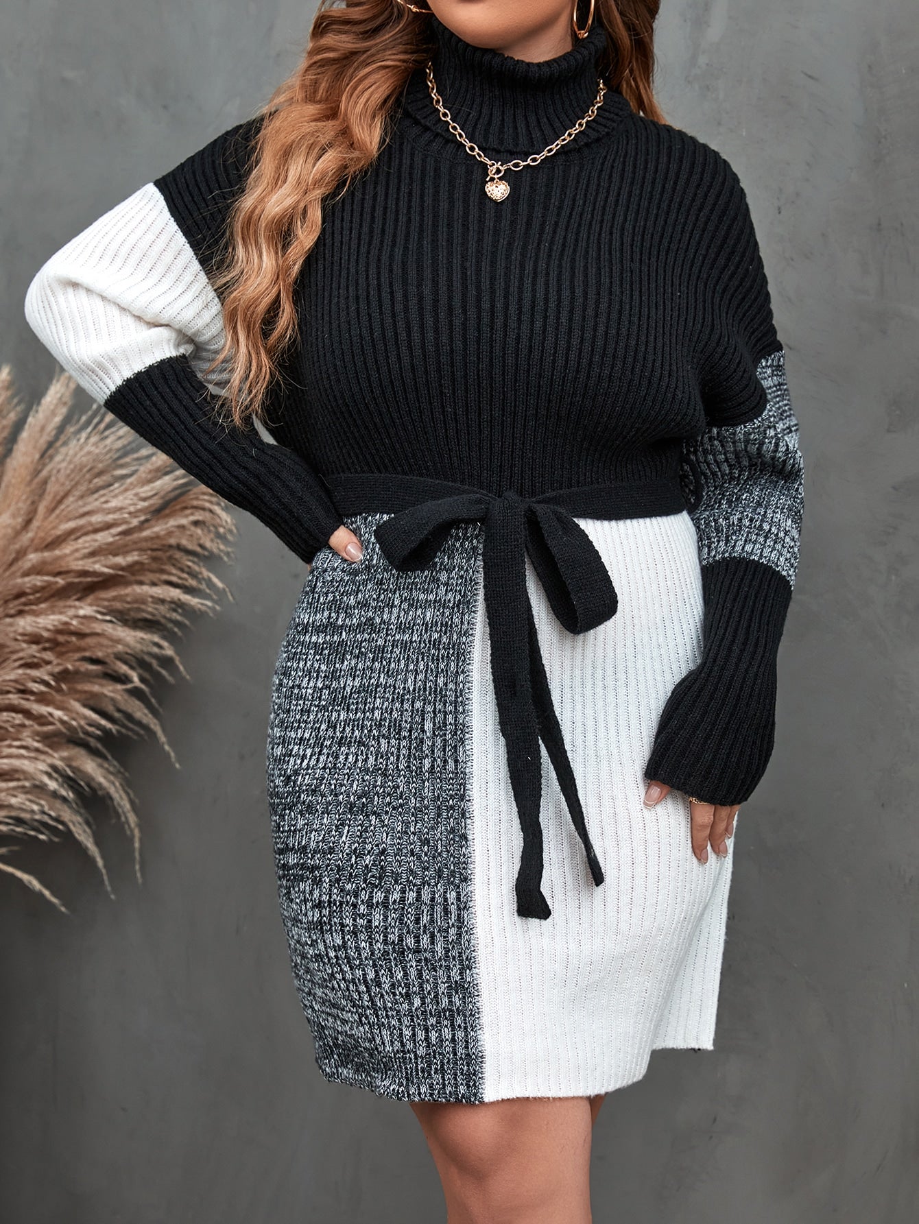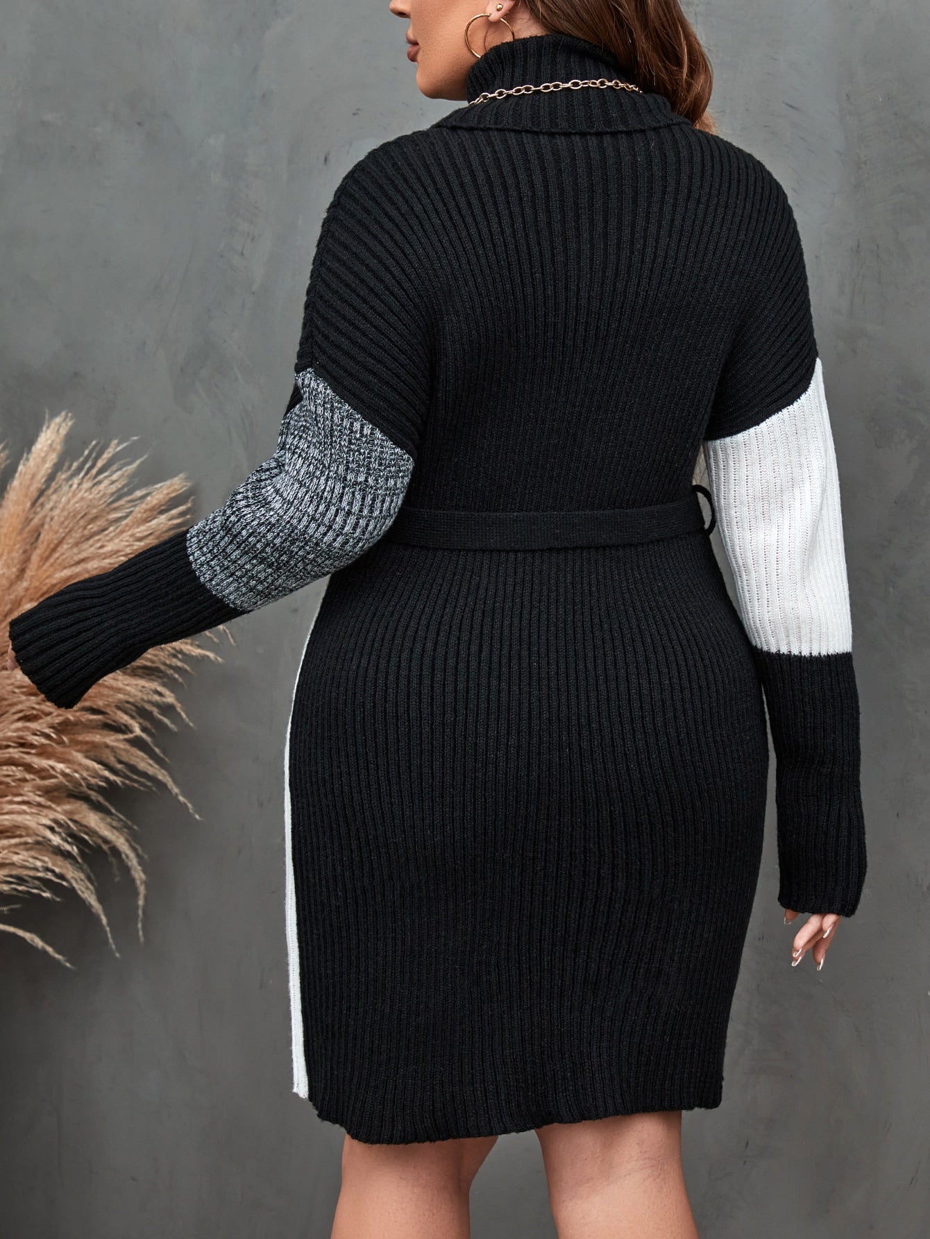 Flirla Plus Colorblock Drop Shoulder Turtle Neck Sweater Dress Without Belt