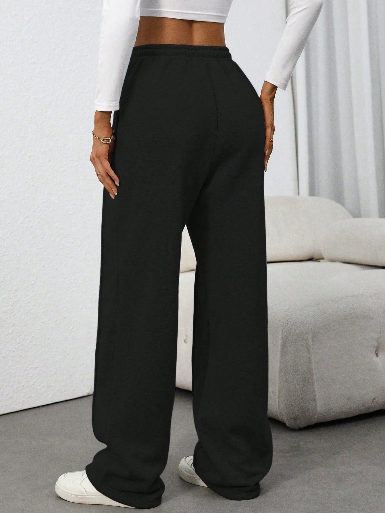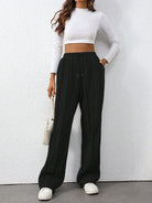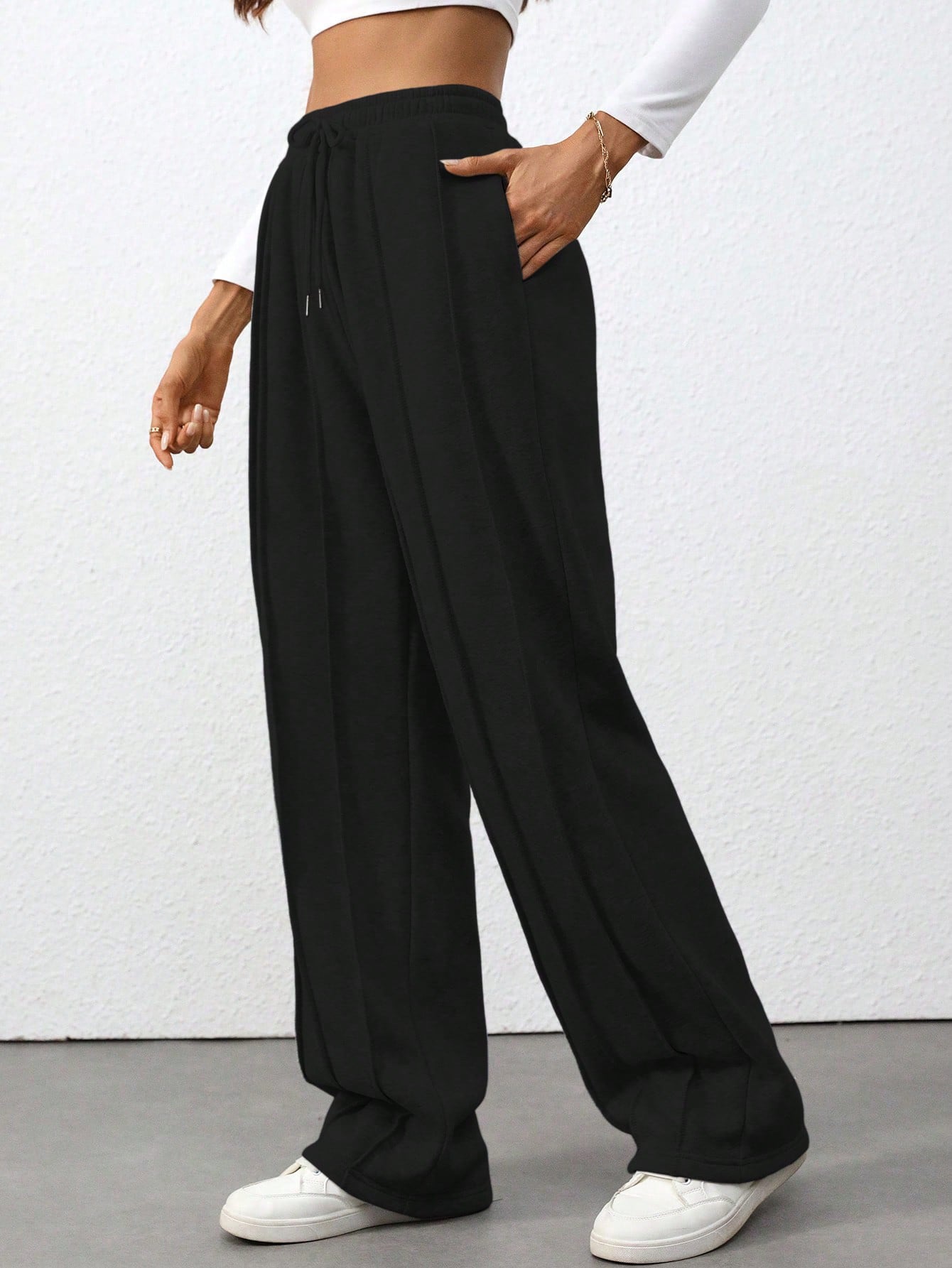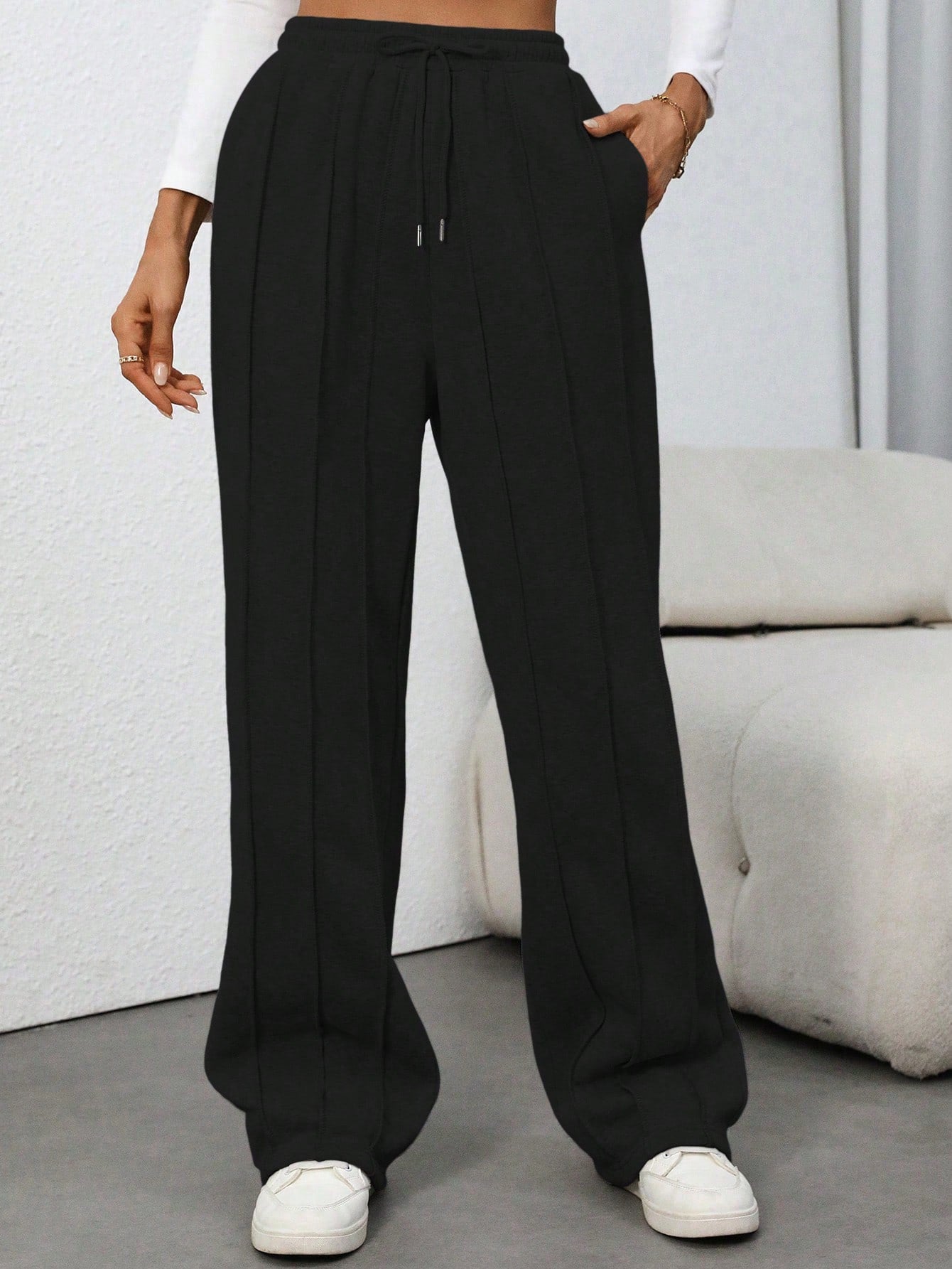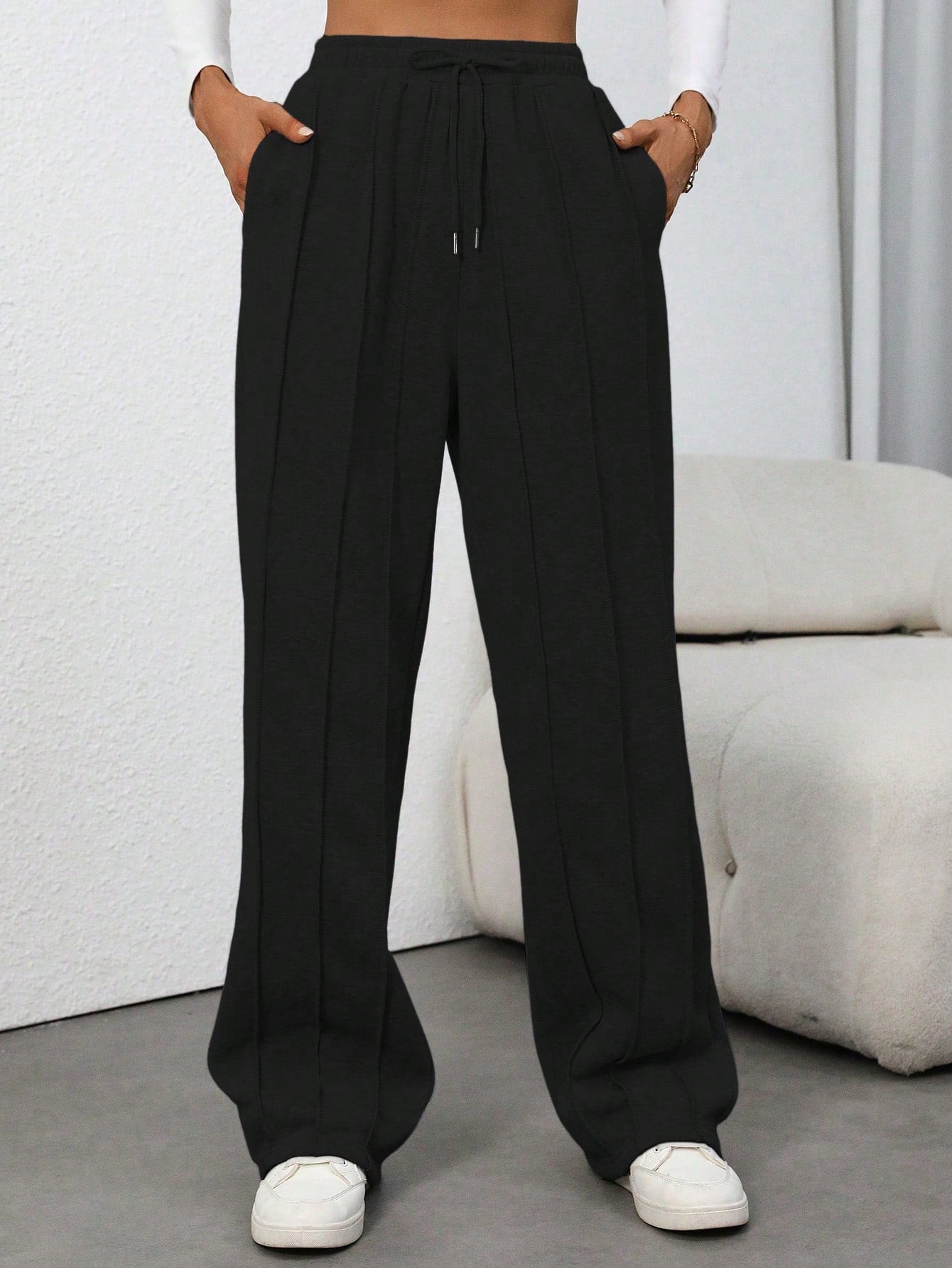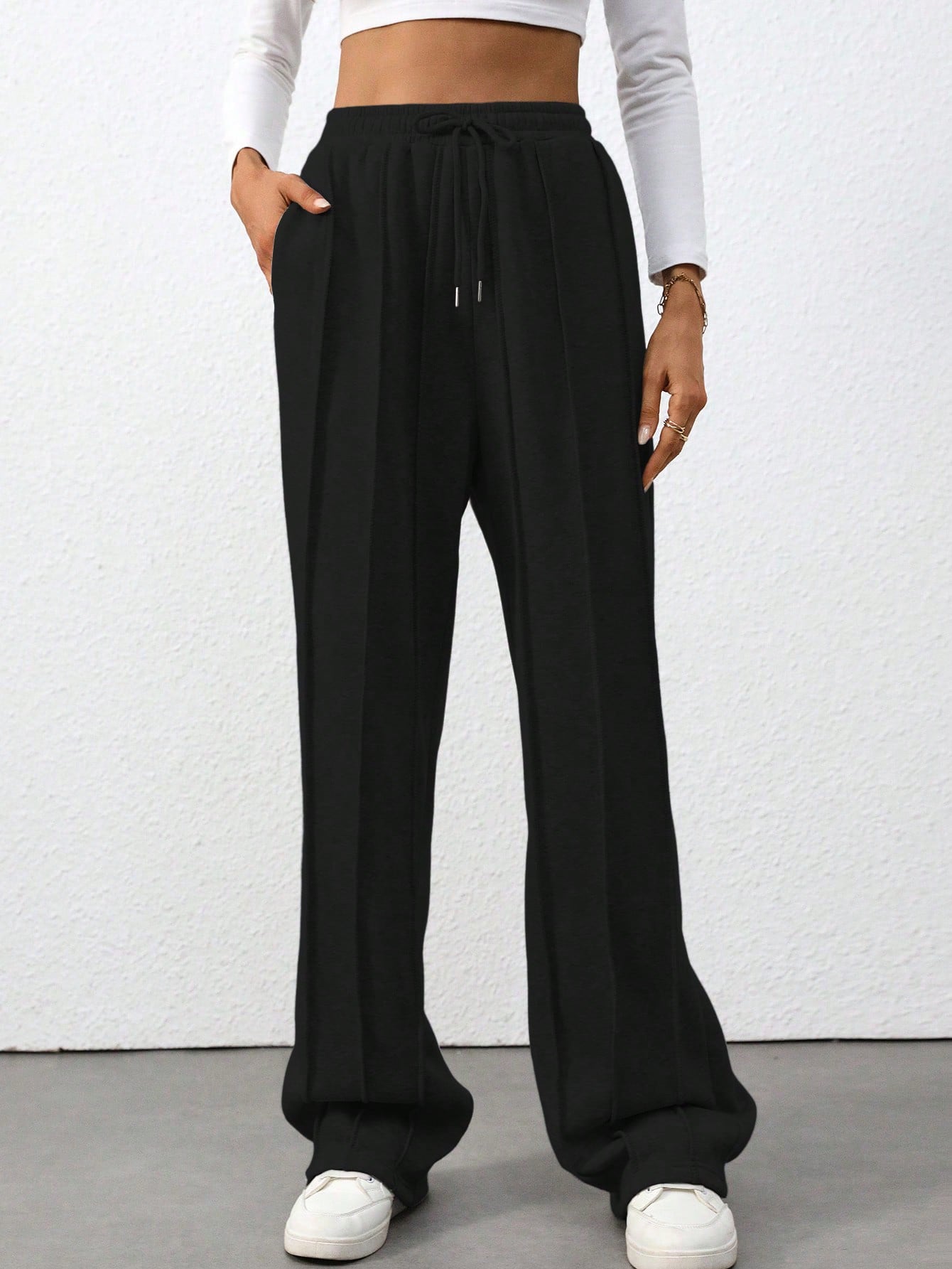 Flirla Tall Grey High Waist Drawstring Tie Patchwork Straight Leg Loose Casual Sweatpants