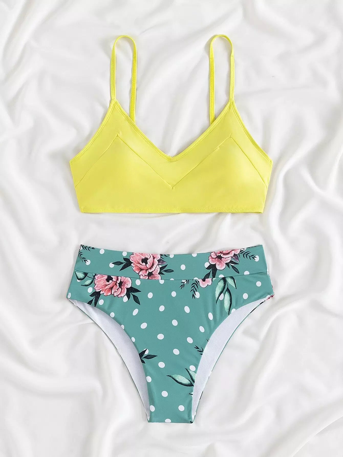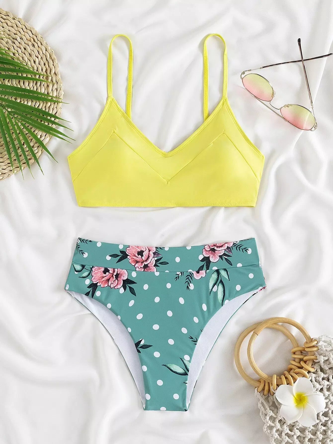 Floral & Polka Dot Bikini Swimsuit