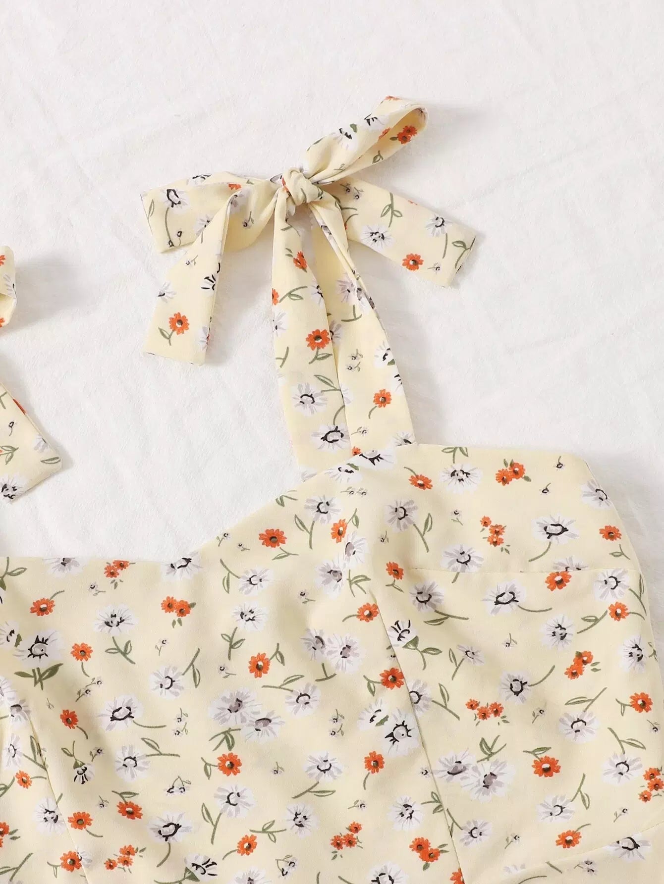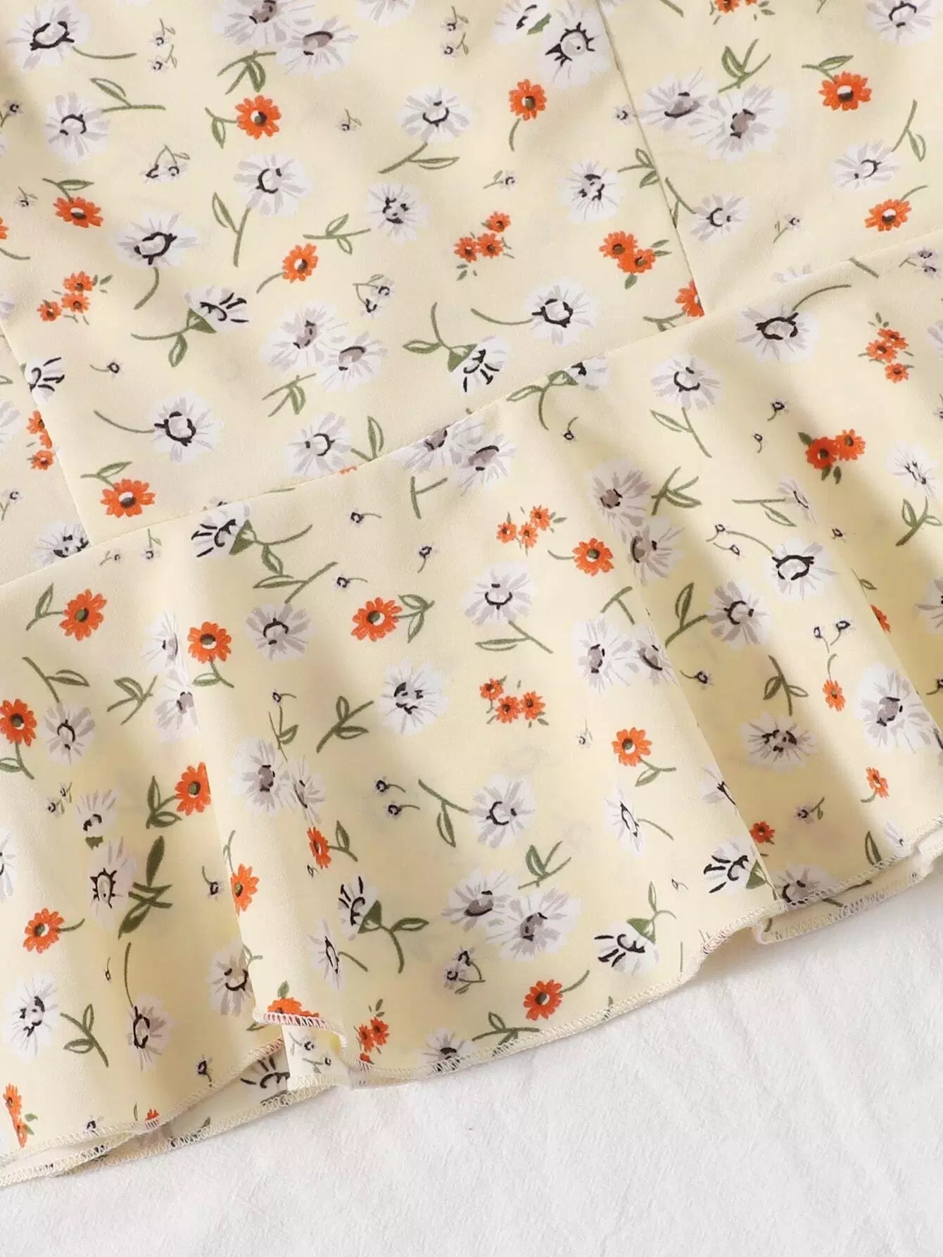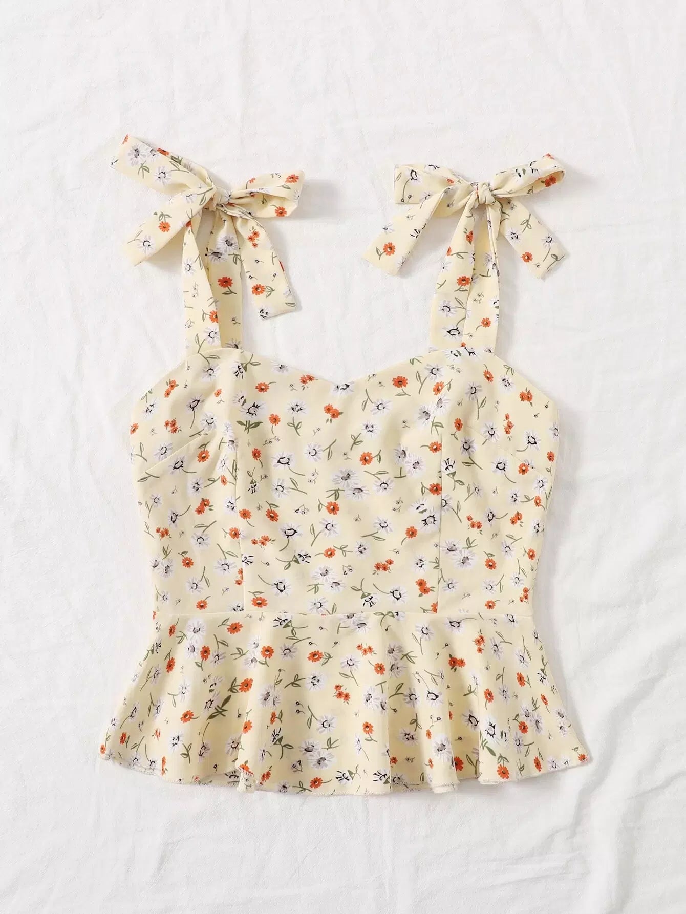 Floral Print Knot Shoulder Ruffle Hem Cami Top