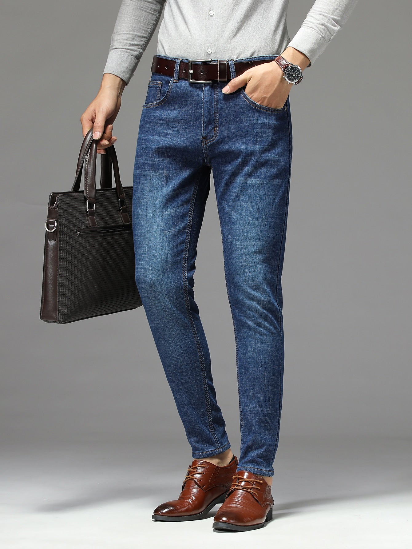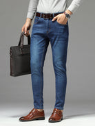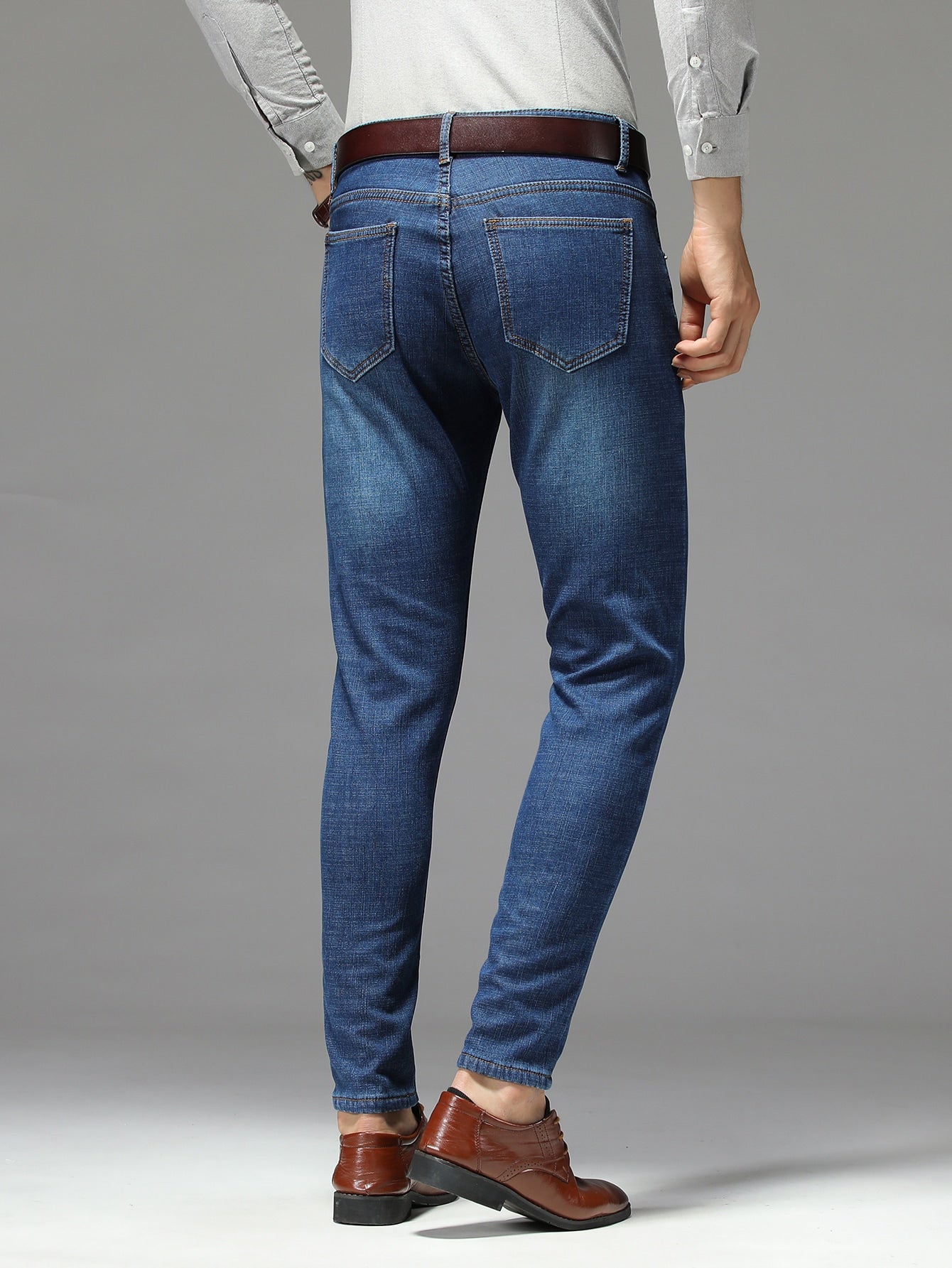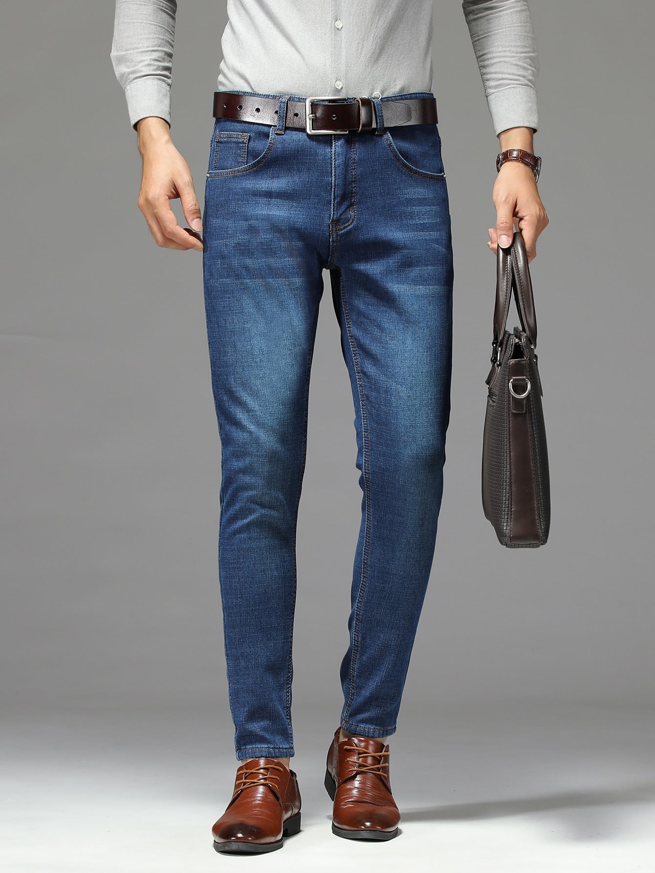 Men Bleach Wash Thermal Jeans Without Belt