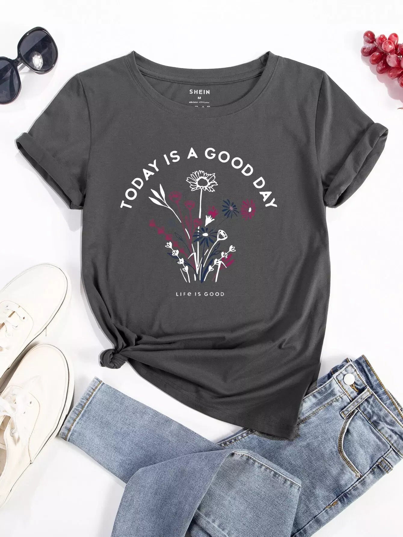 Floral & Slogan Graphic Tee
