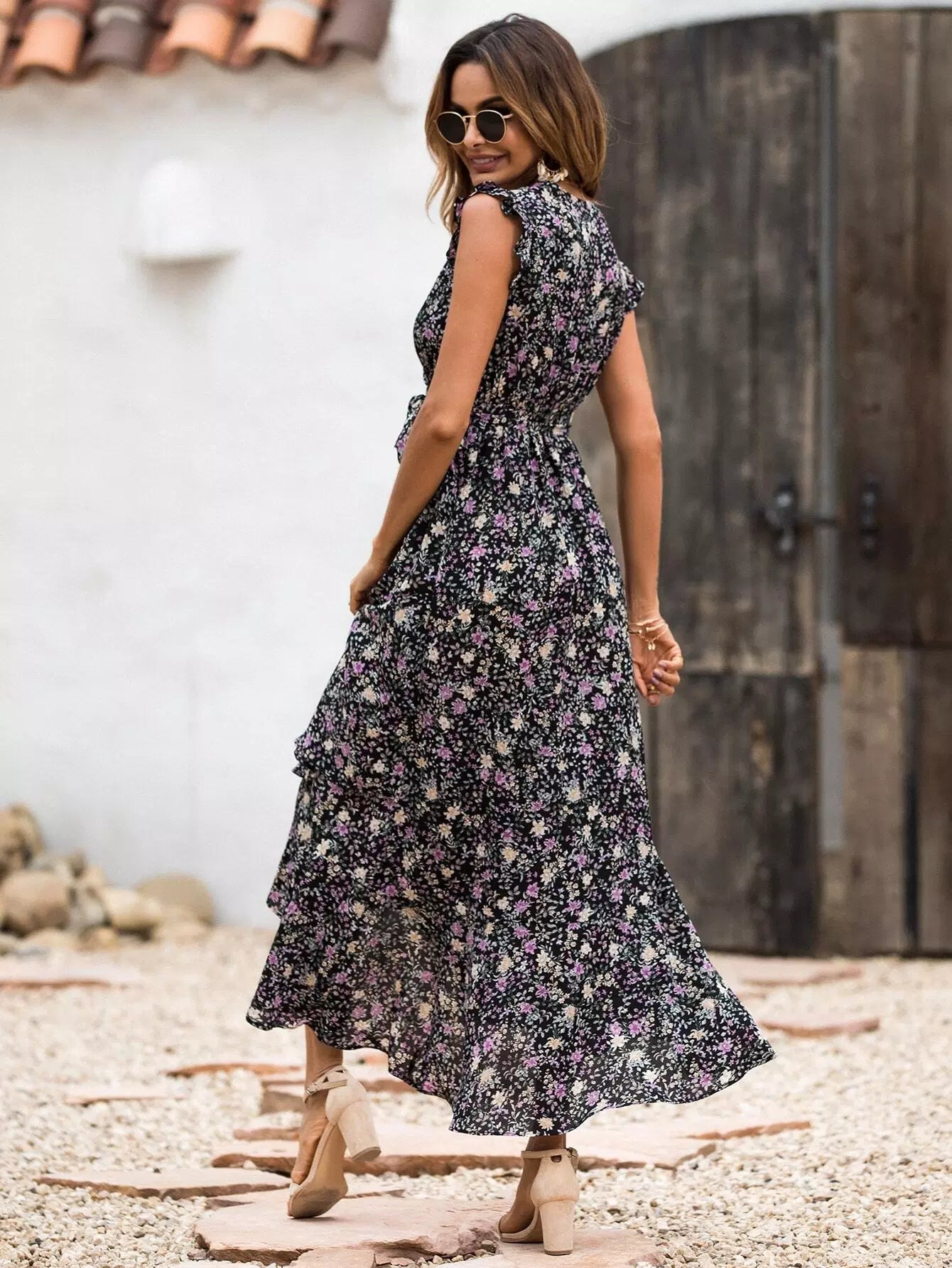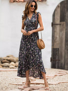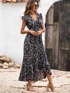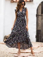 Floral Surplice Front Ruffle Hem Dress Without Belt