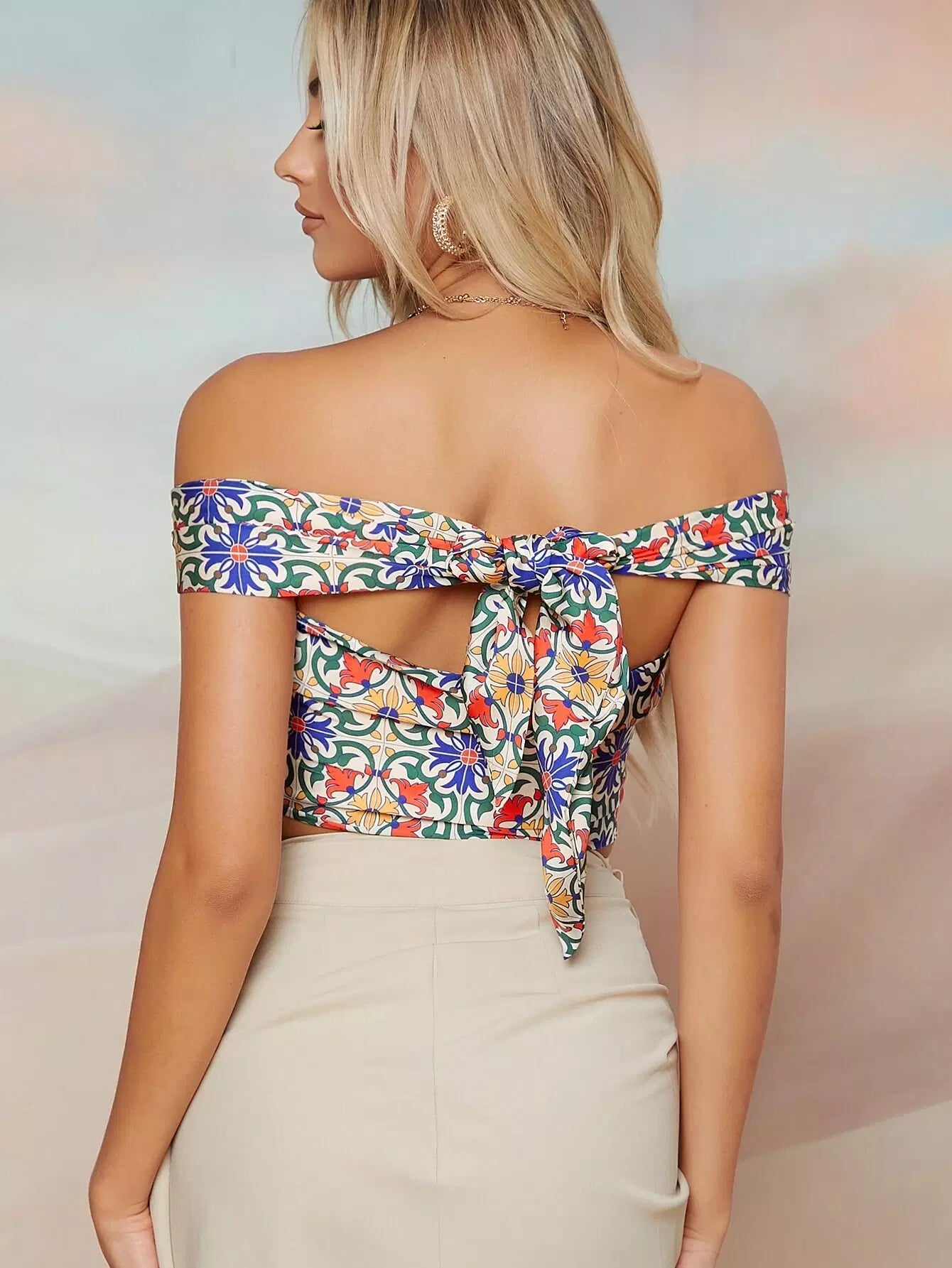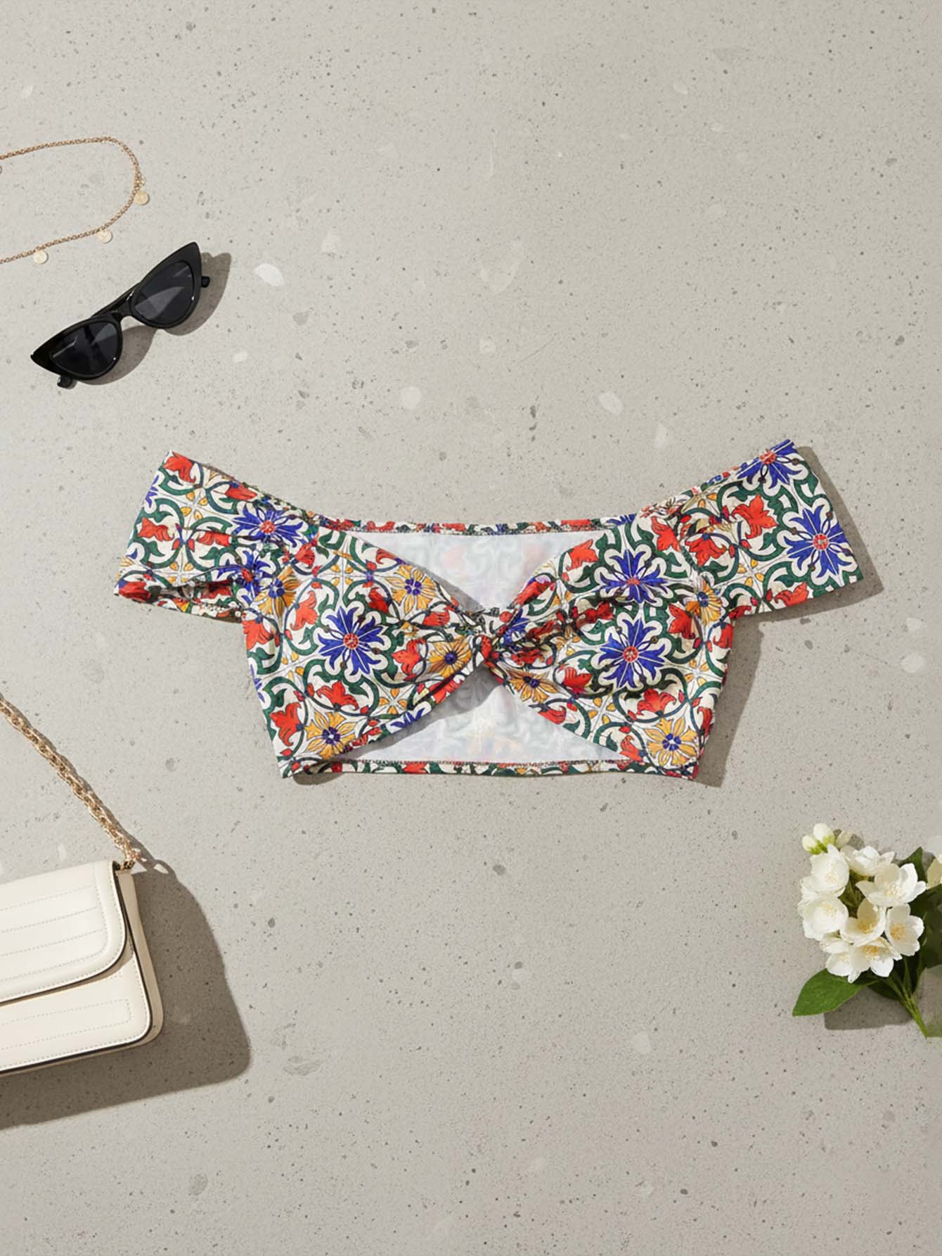 Floral Twist-Front Off-the-Shoulder Crop Top