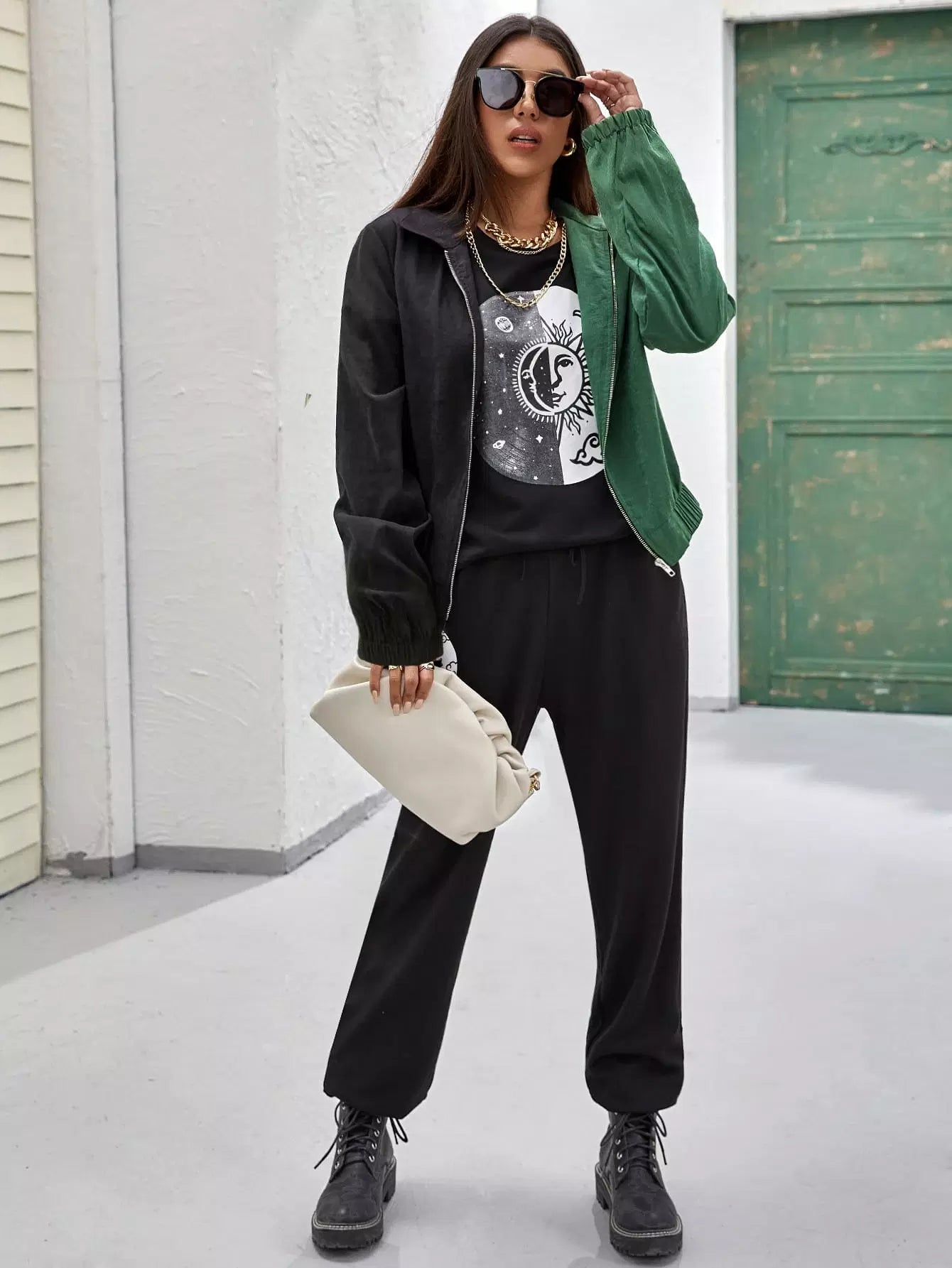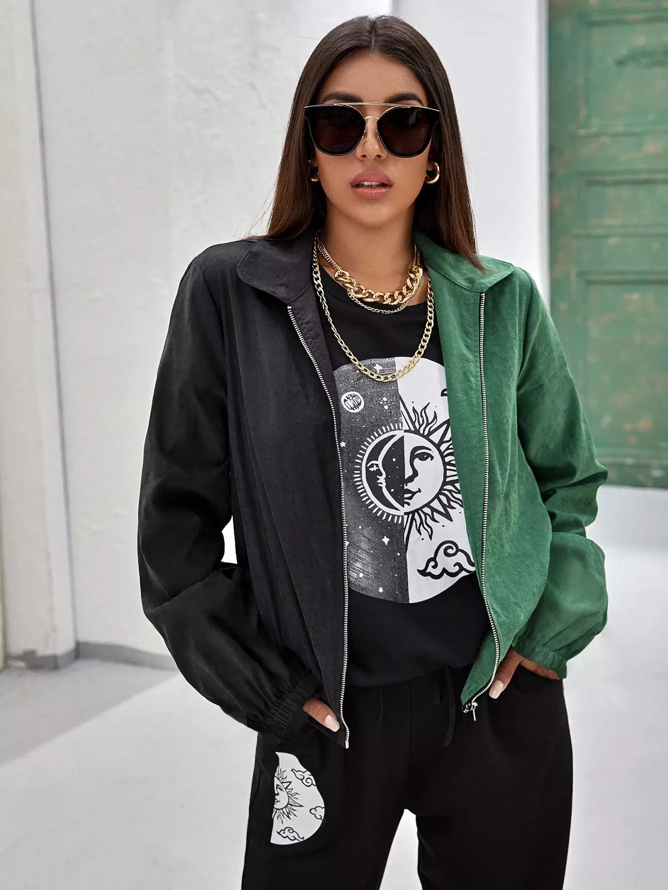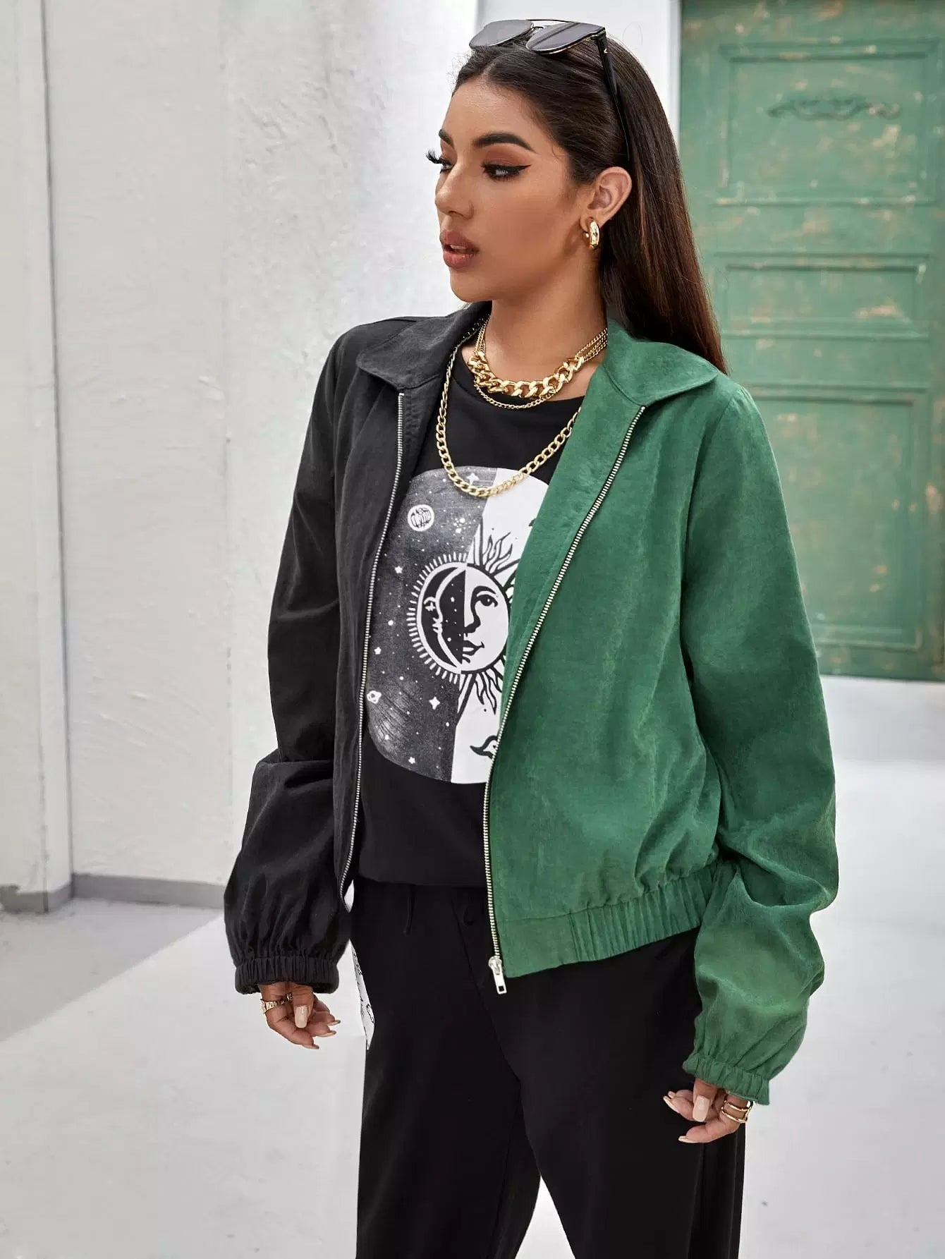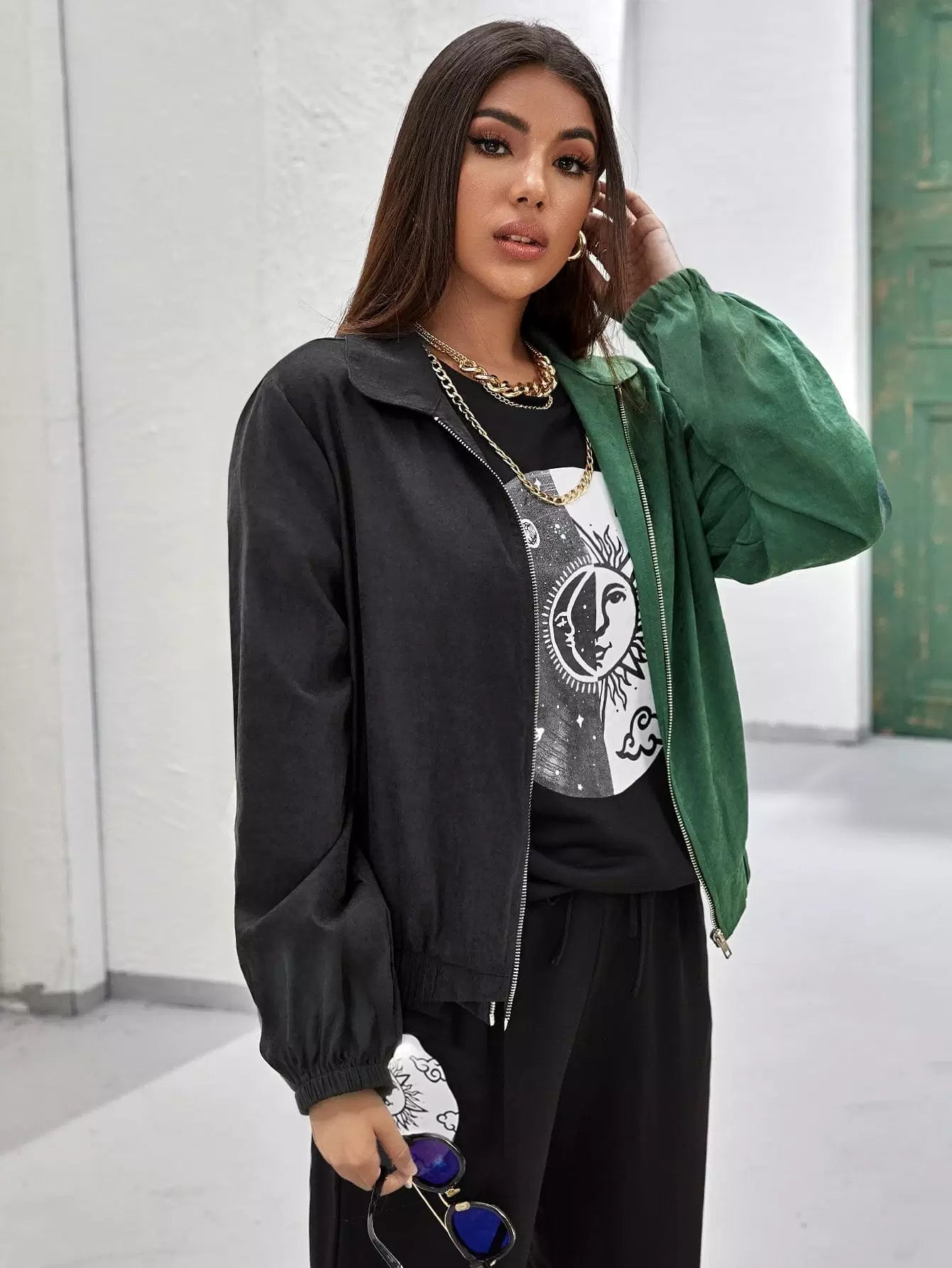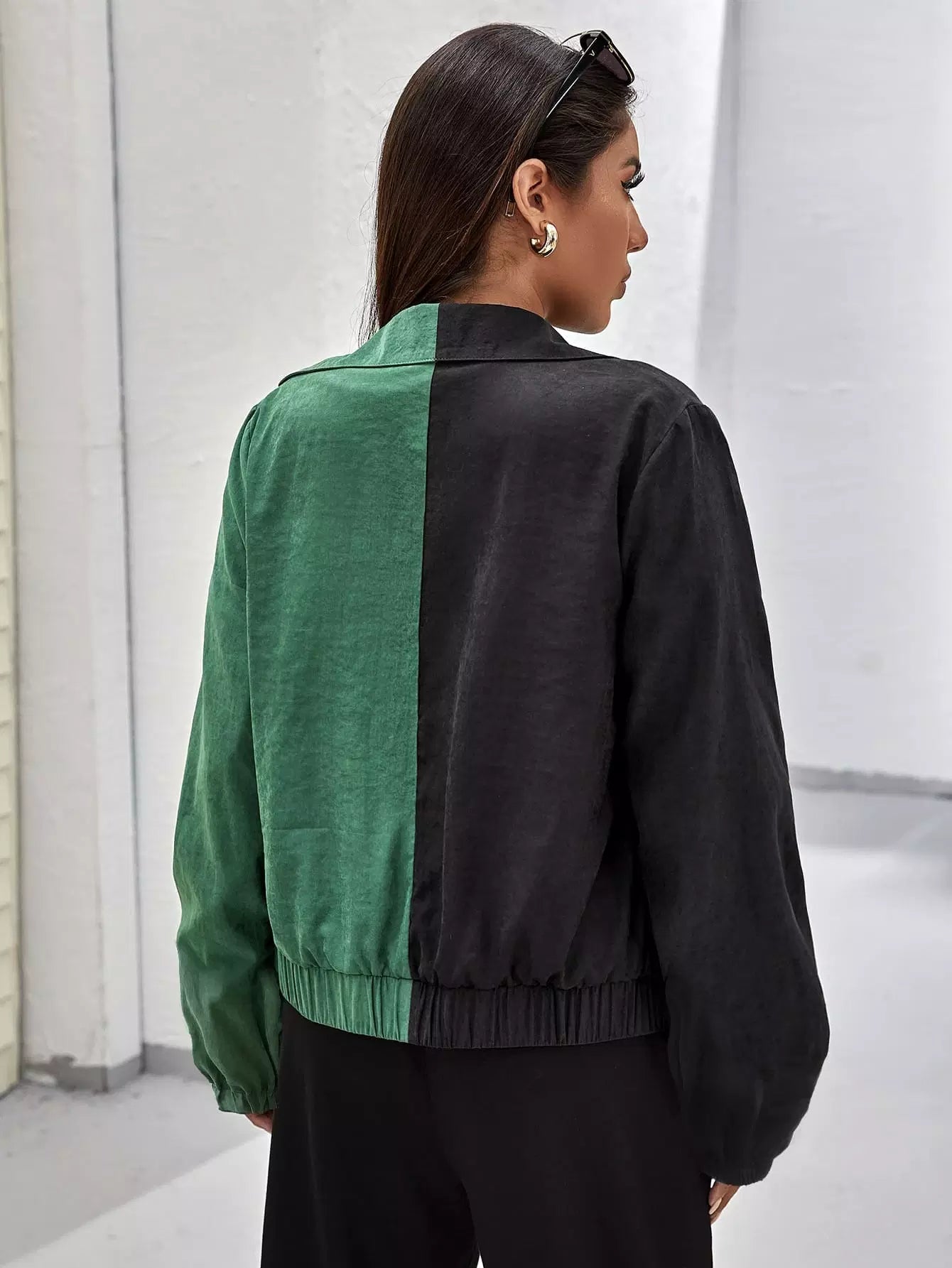 Flounce Sleeve Spliced Zipper Placket Jacket