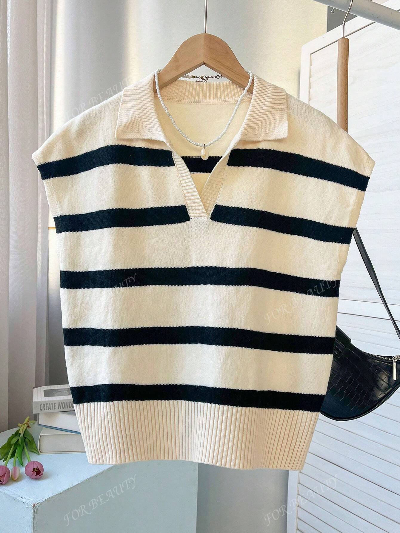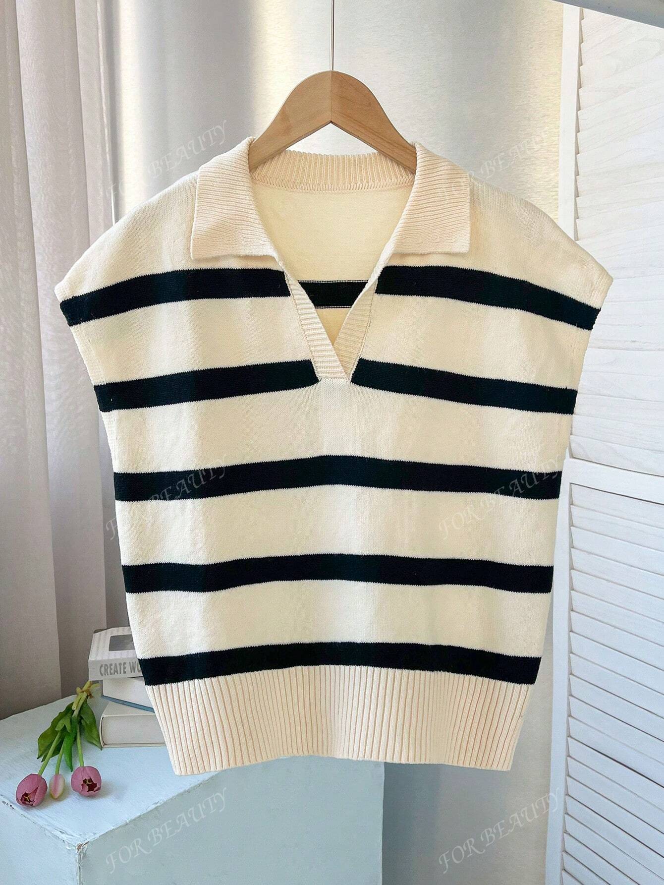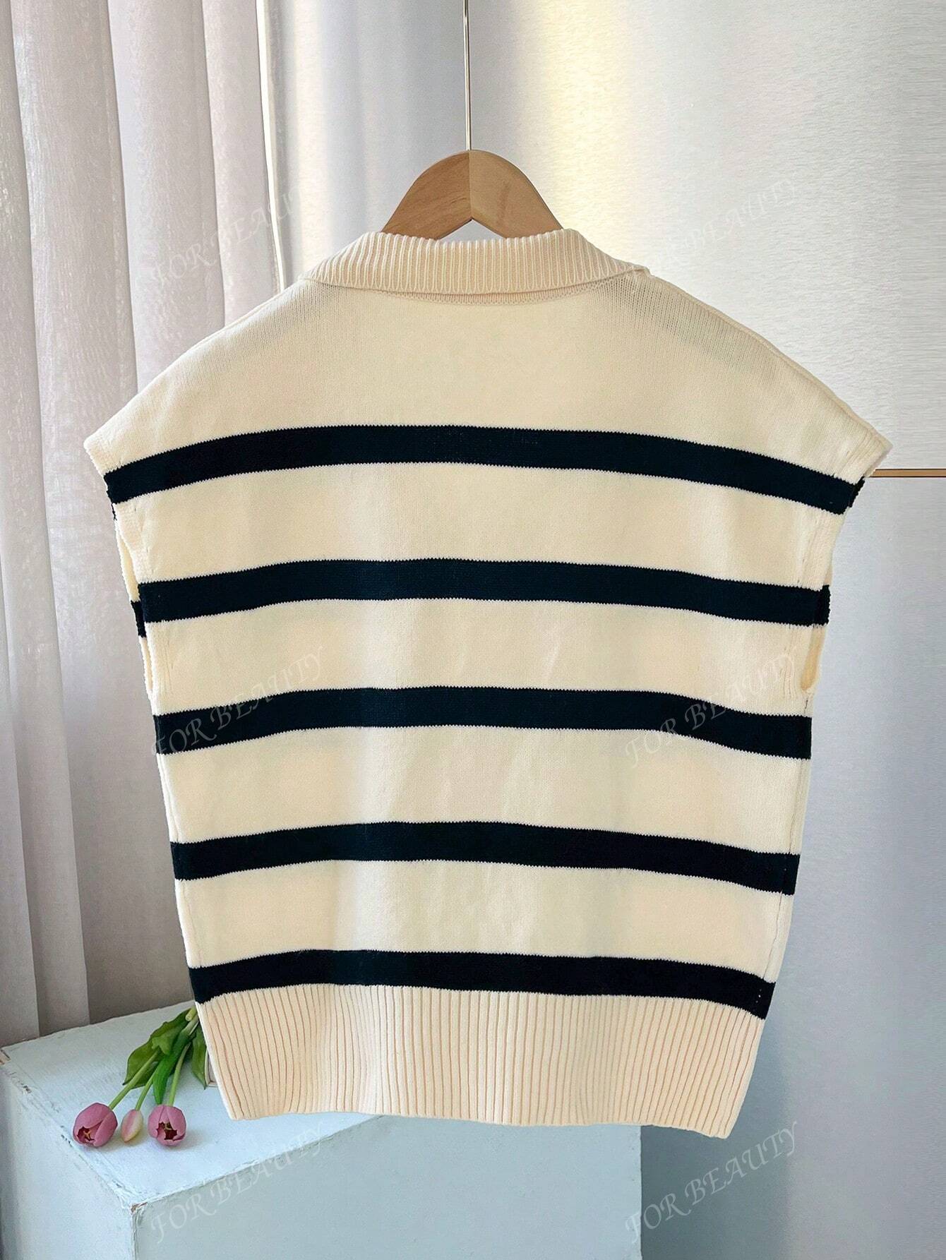 FOR BEAUTY Spring And Summer New Style Lapel Old Money Bizchic Striped Color Blocked Vest Women Sleeveless