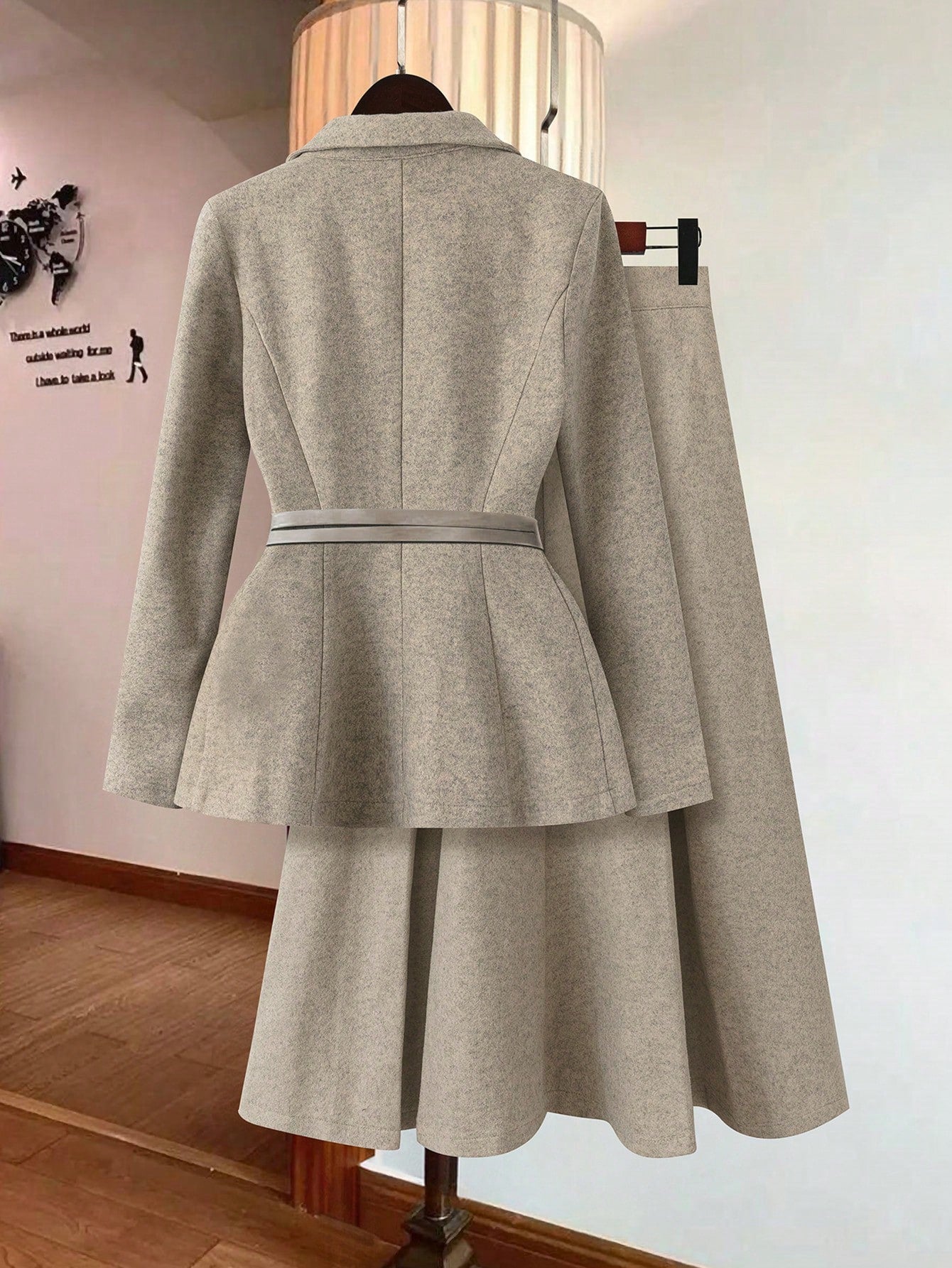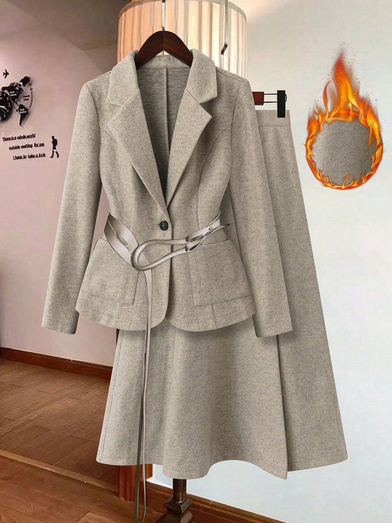Franclia Fashion Commuting Elegant Versatile S-Shape Lapel Long Sleeve Pocket Bicolor Pleated Skirt Bicolor