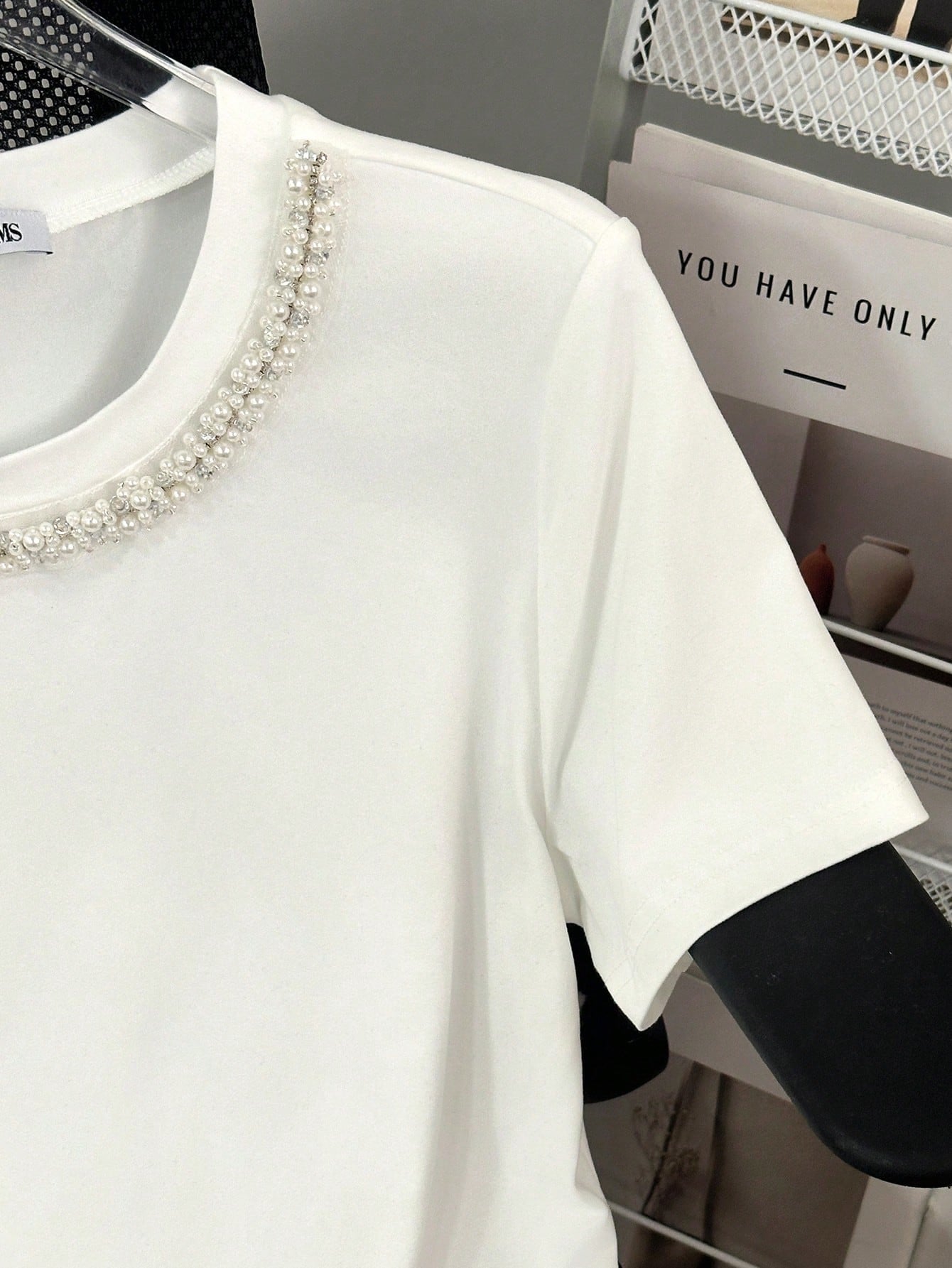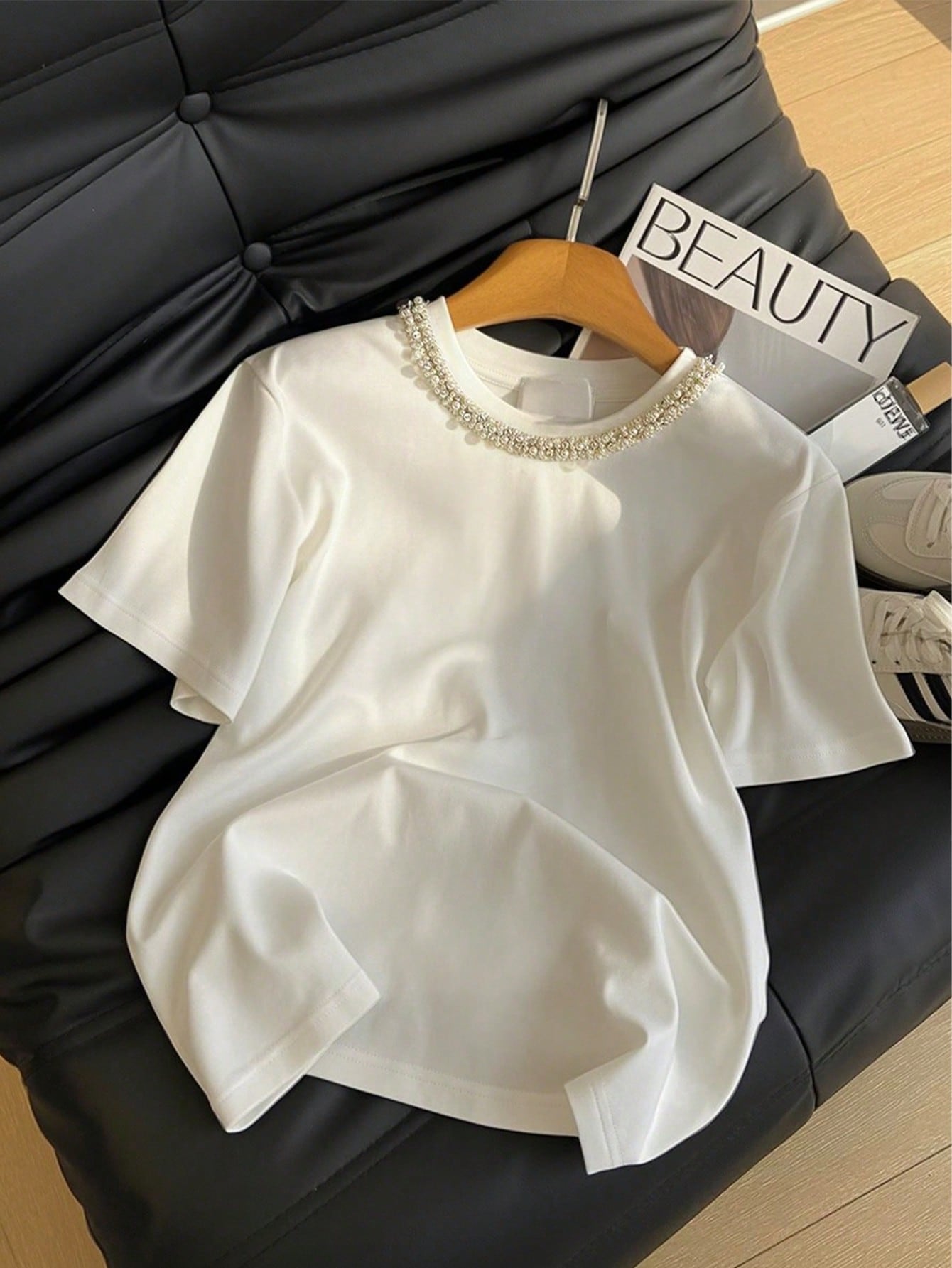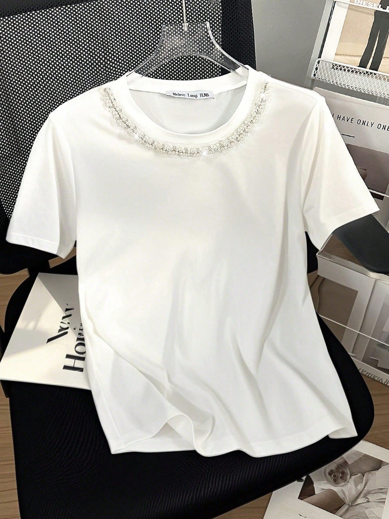 Franclia Women's Casual Studded And Chain Decor Round Neck Short Sleeve T-Shirt