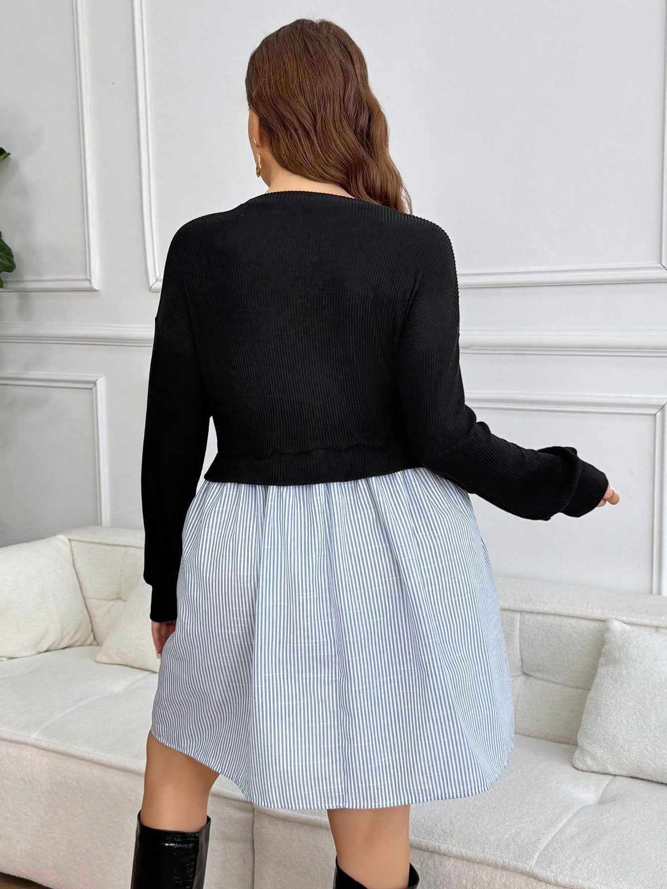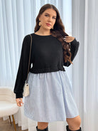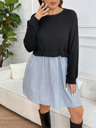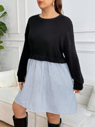 Frenchy Plus Size Women Crew Neck Fabric Splice Casual Dress