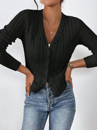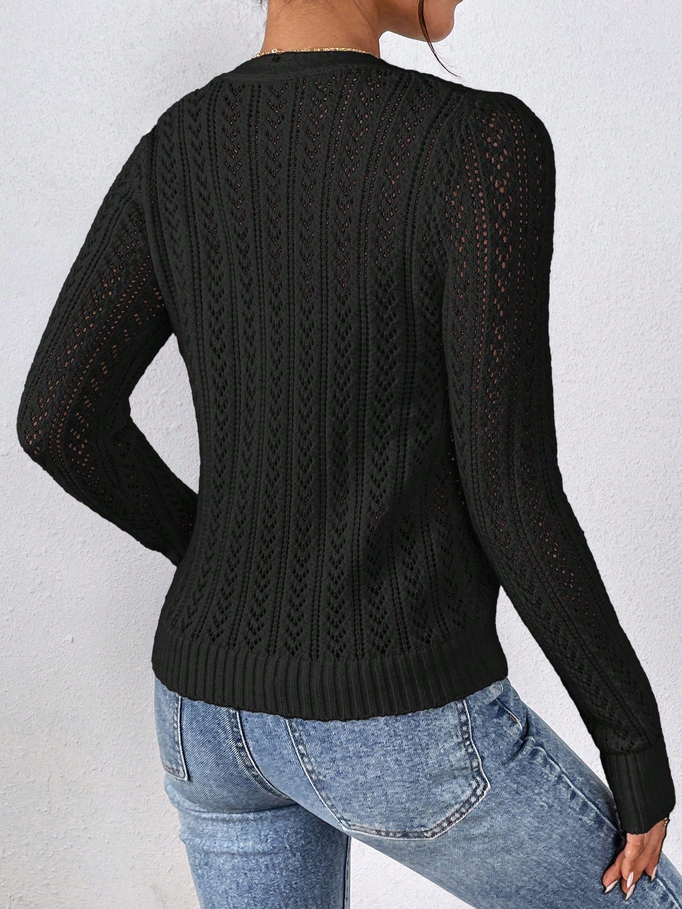 Frenchy Women Casual Black Hollow Out Knitted Buttoned Cardigan
