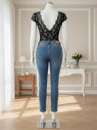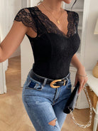 Frenchy Women Lace Backless French Elegant Romantic Bodysuit Party Black Summer