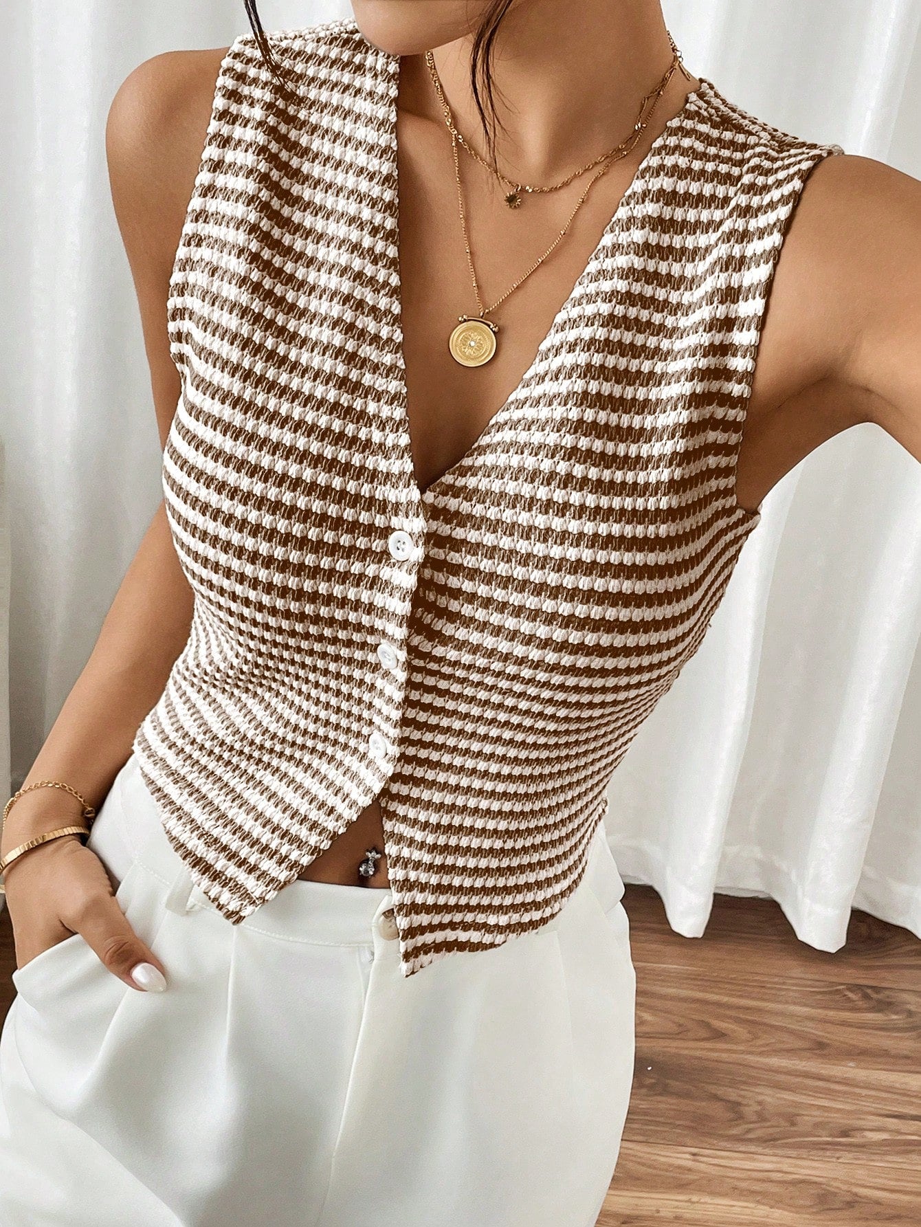 Frenchy Women V-Neck Striped Sleeveless Casual Tank Top