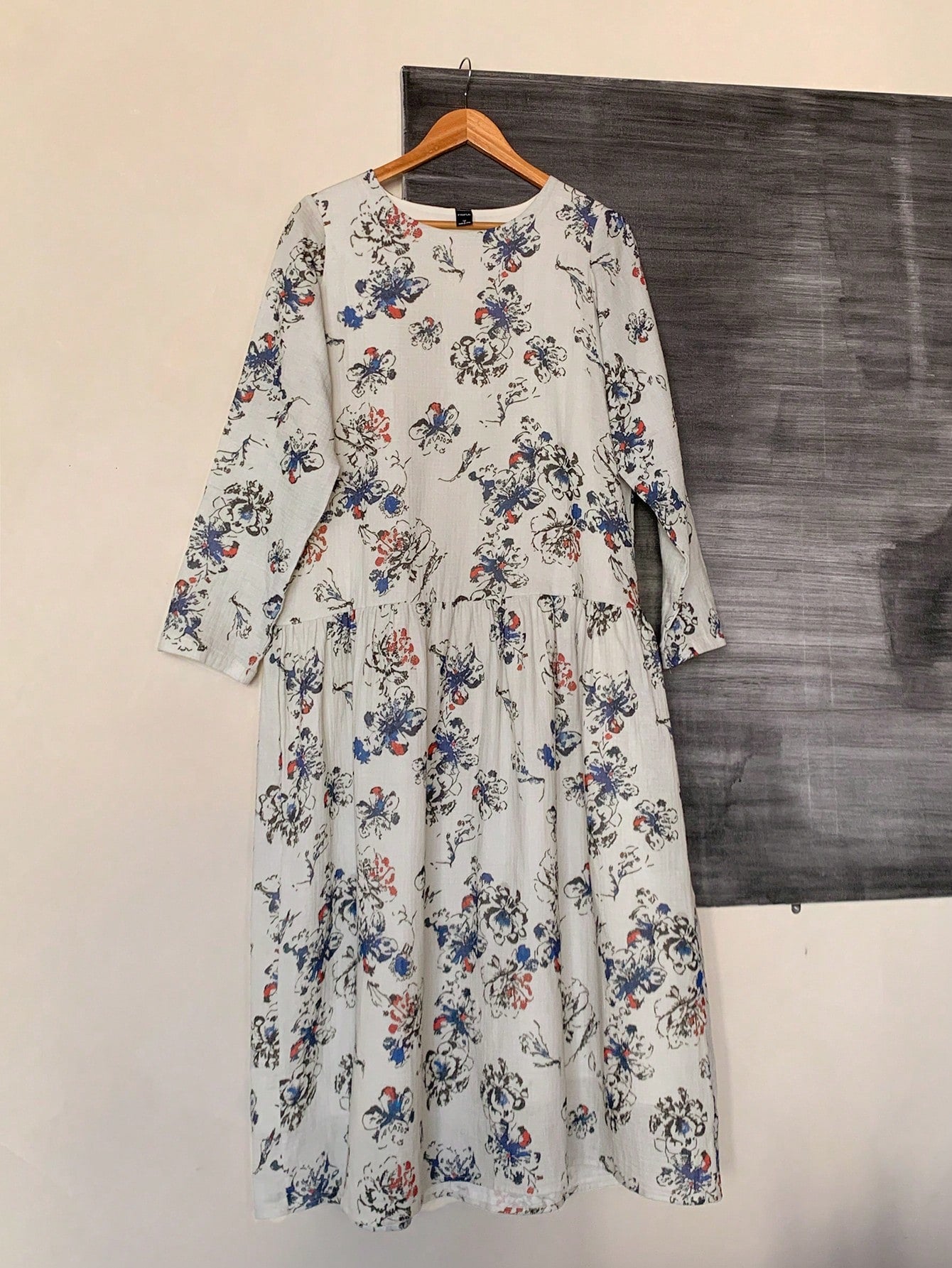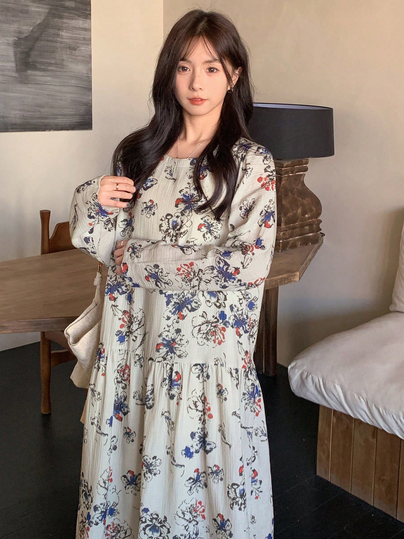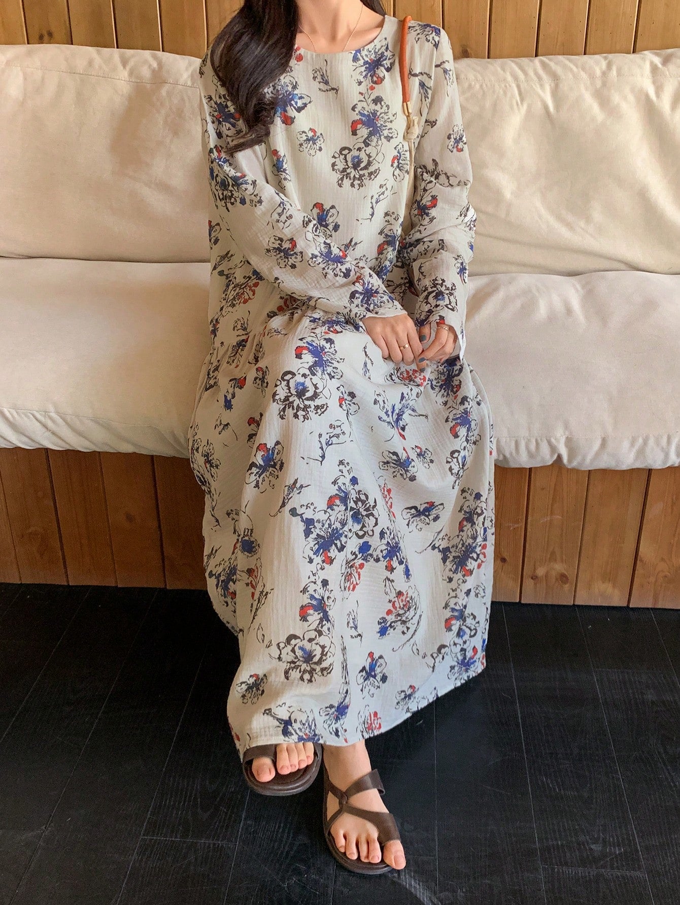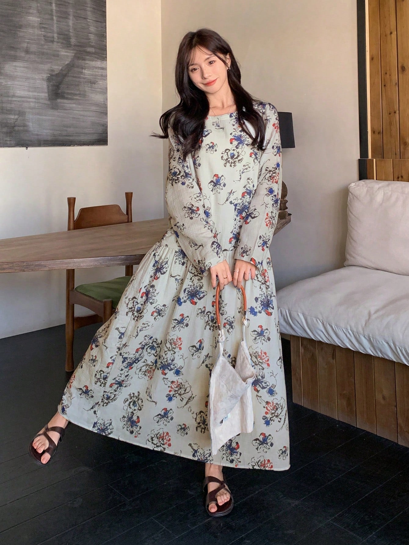 FRIFUL Women Ditsy Floral Linen Dress, Spring Fashion,Fall Dress Long Sleeve Dress
