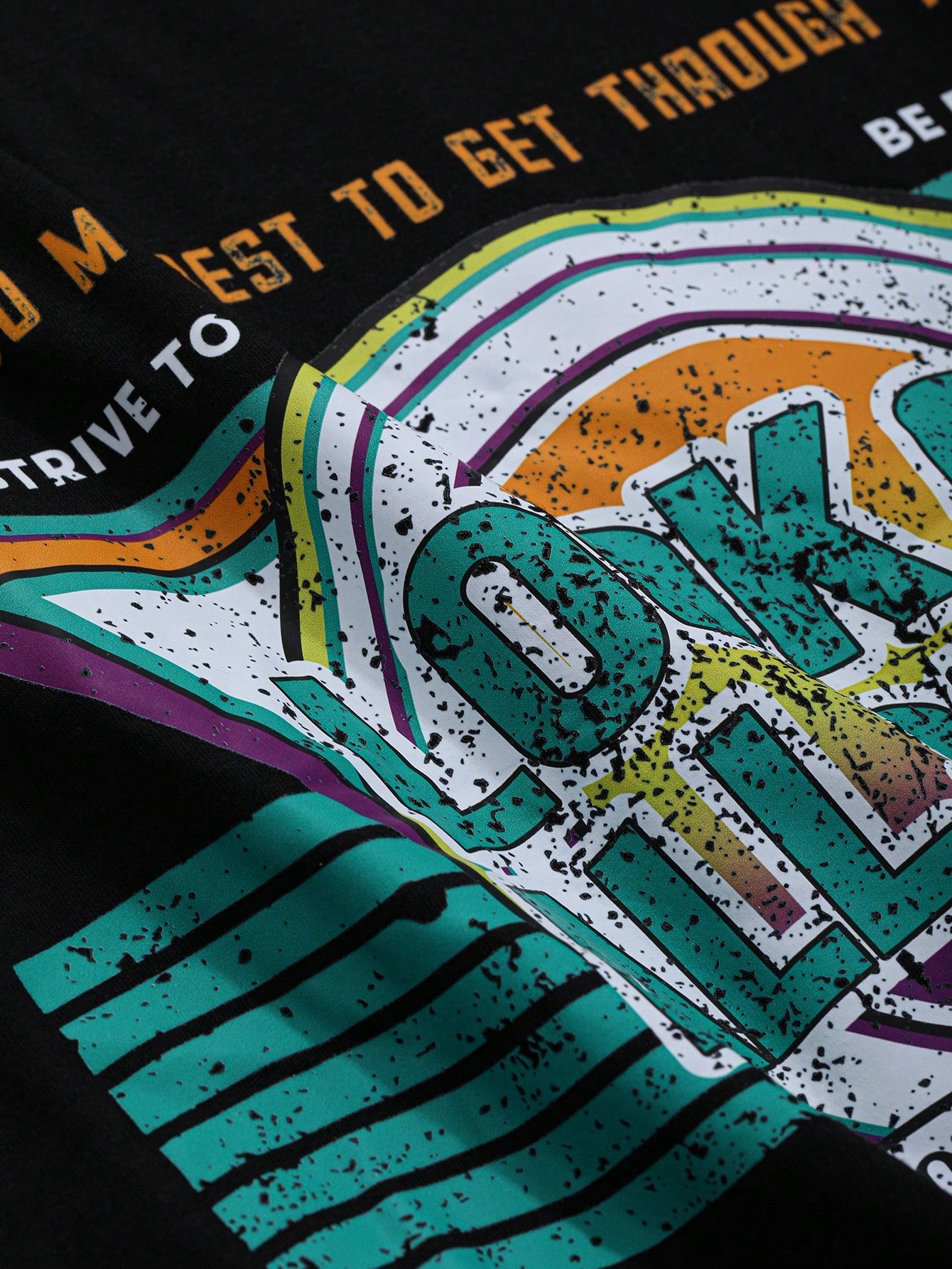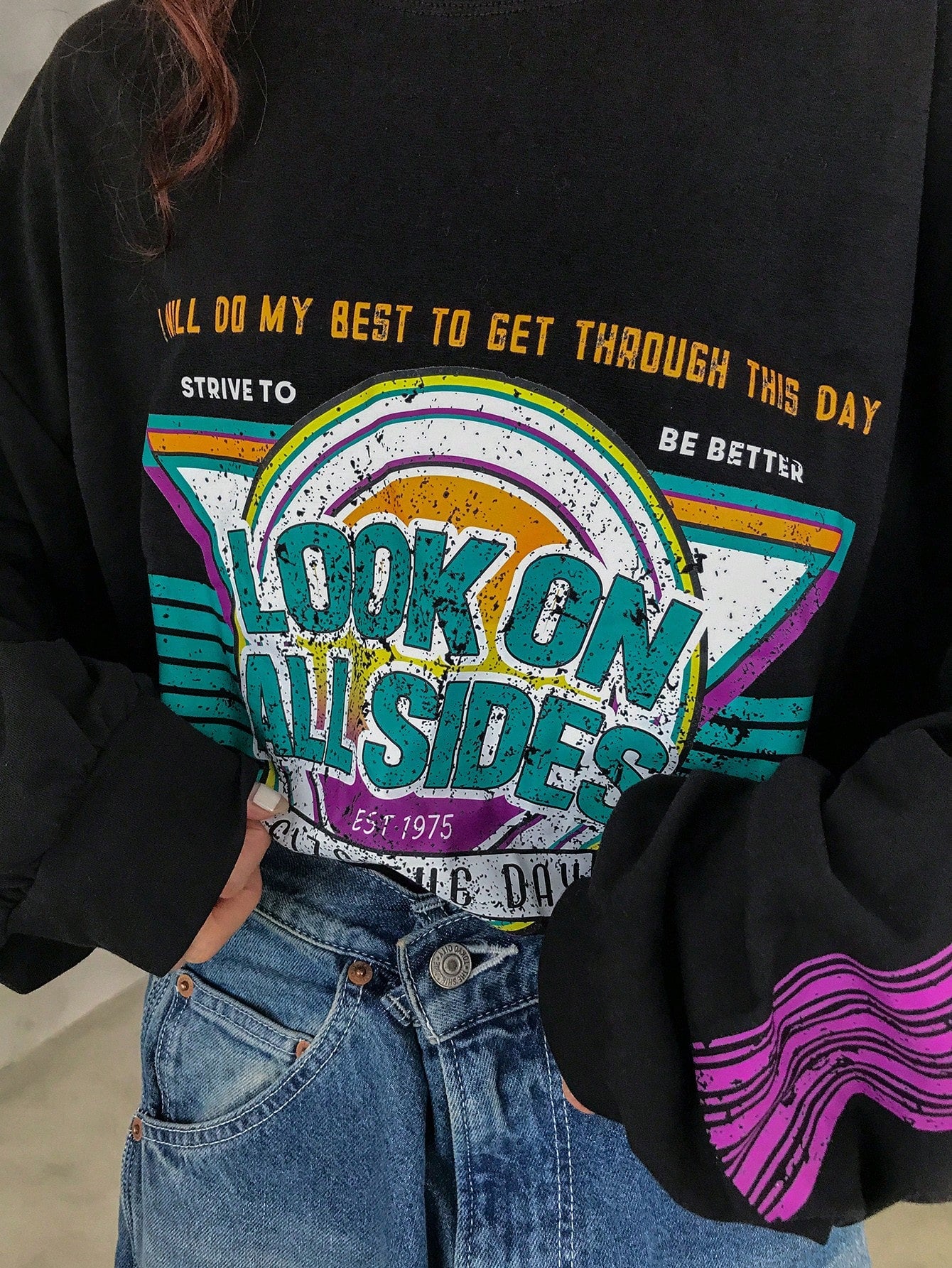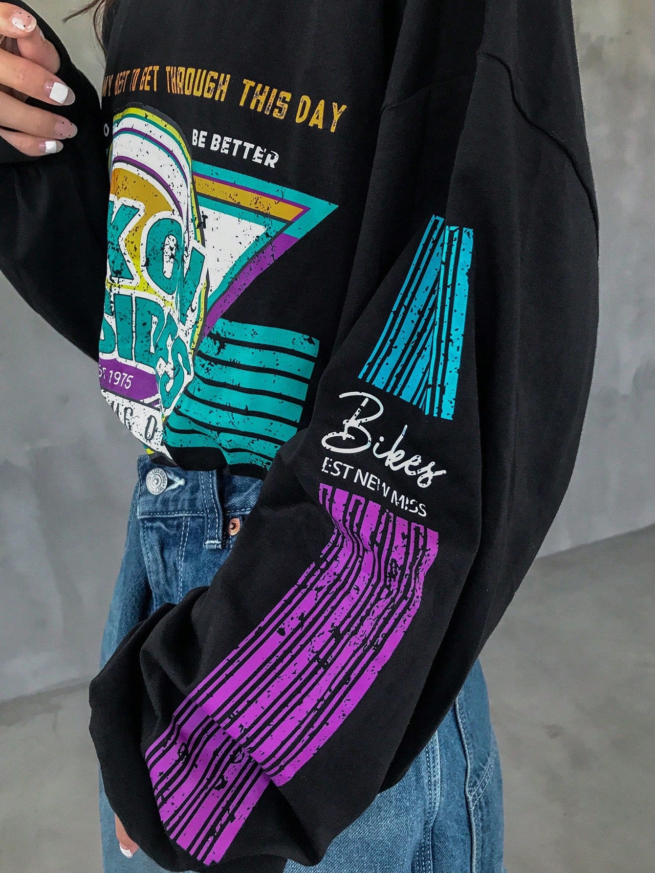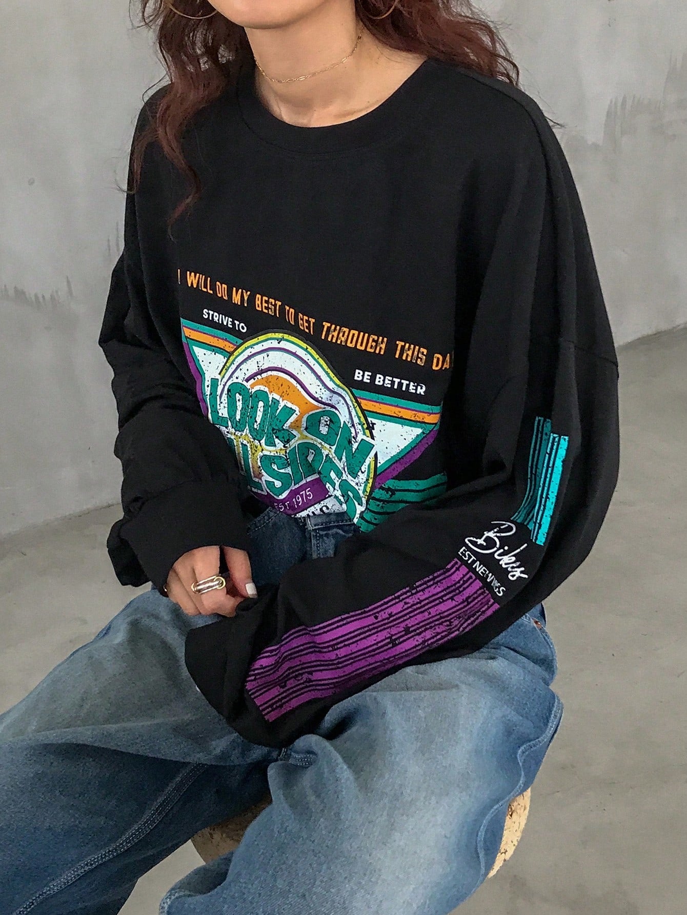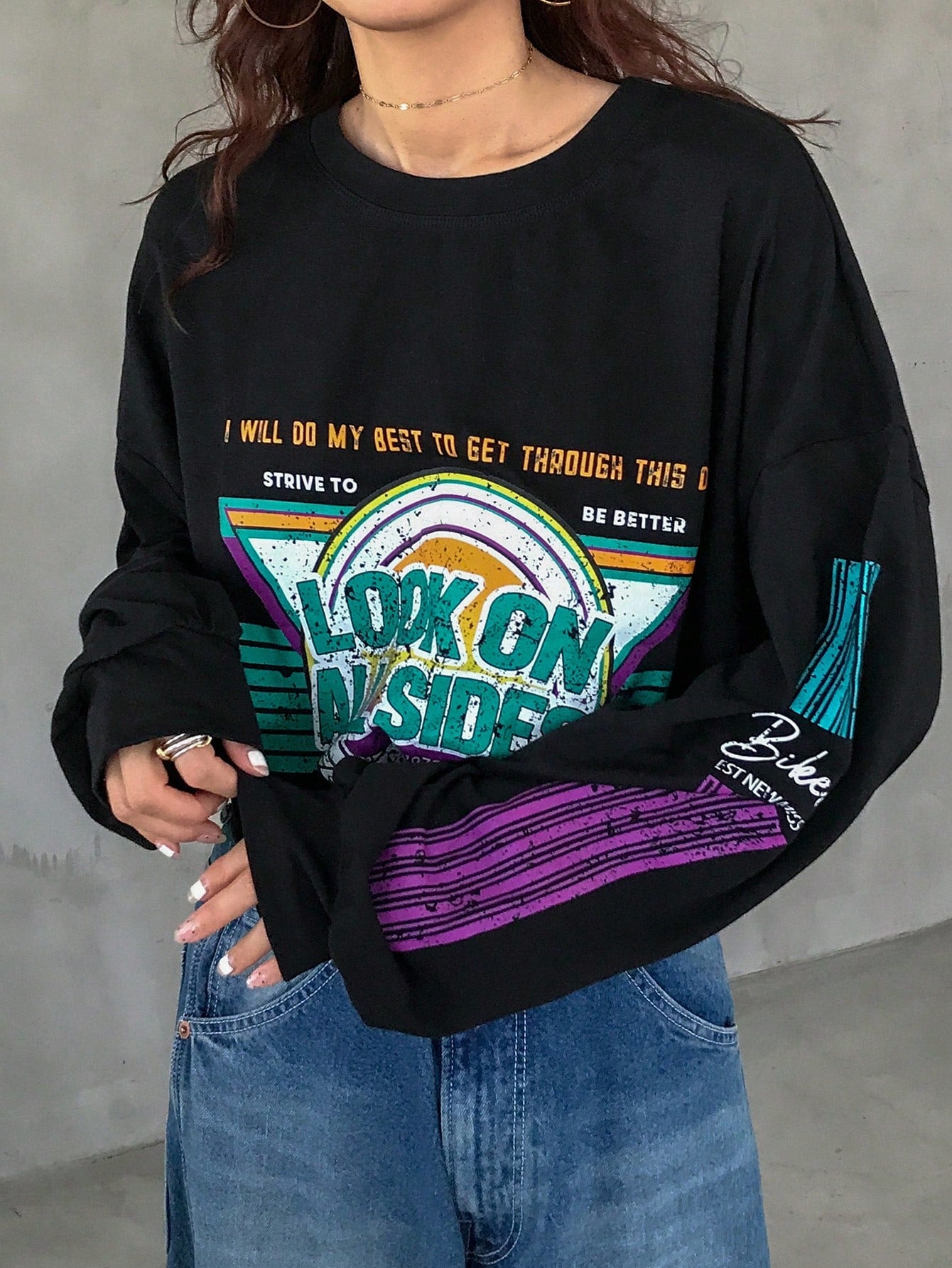 FRIFUL Women's Casual Loose Graphic Print Drop Shoulder Long Sleeve T-Shirt