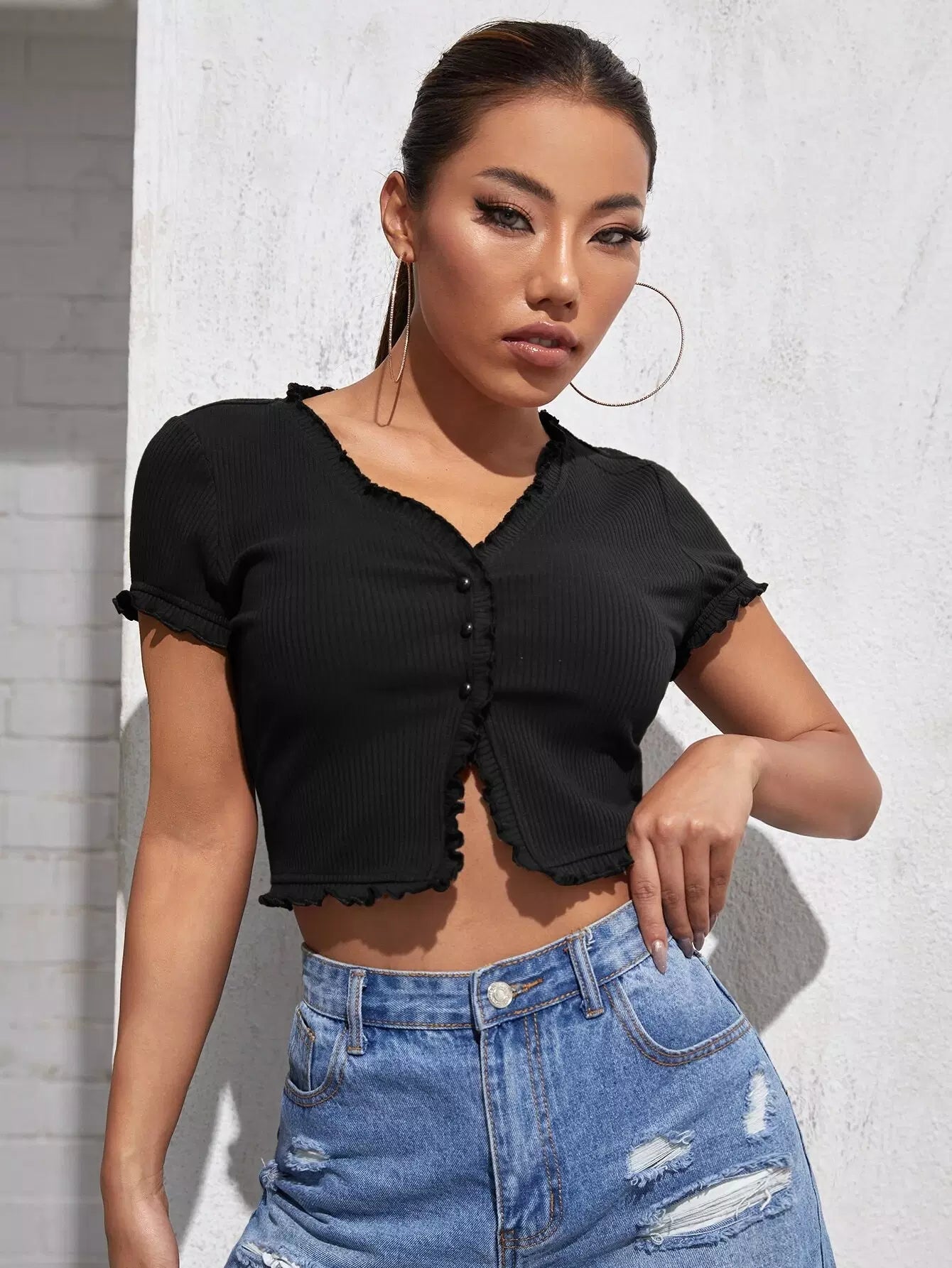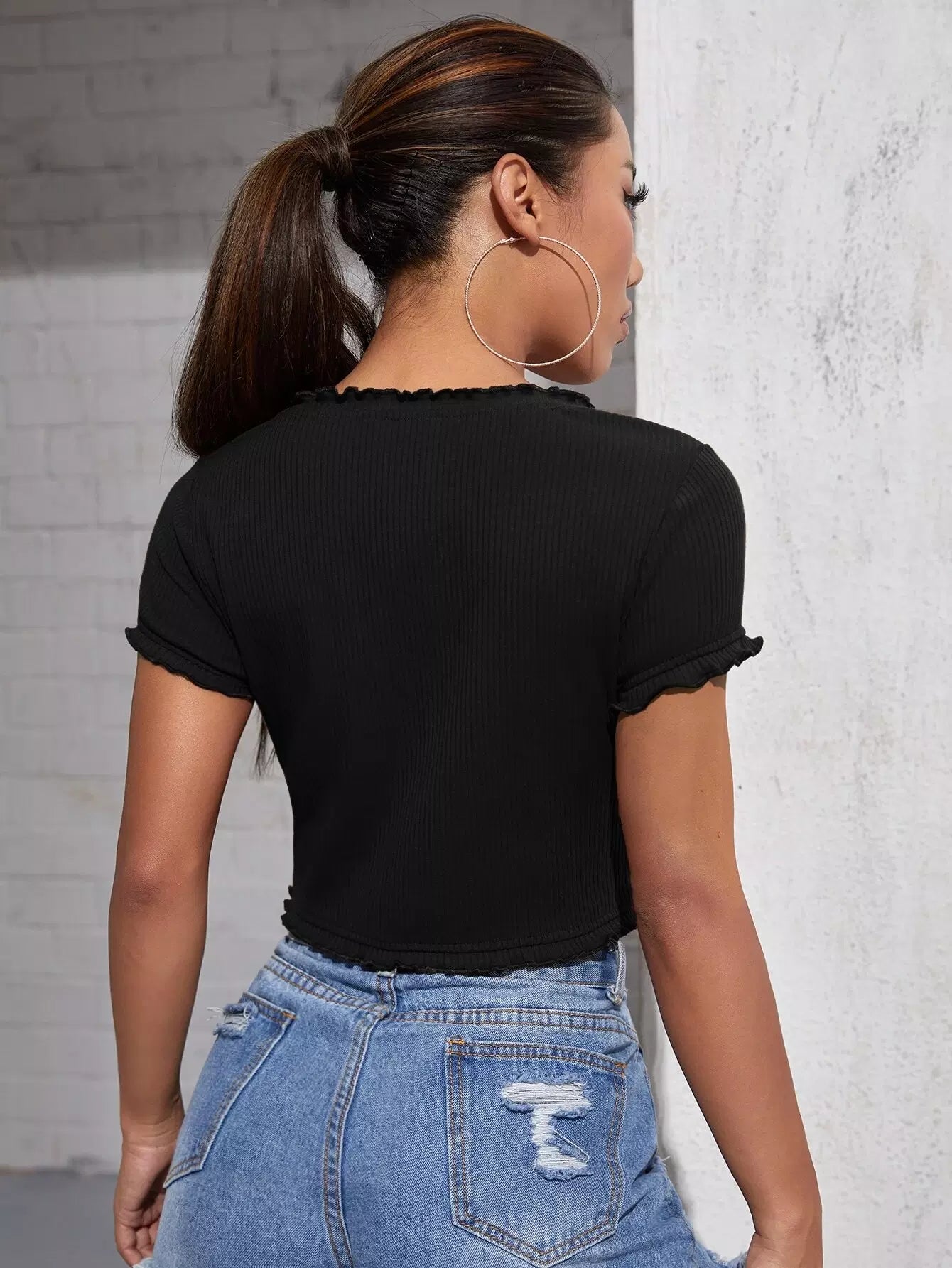 Frill Trim Button Front Tee