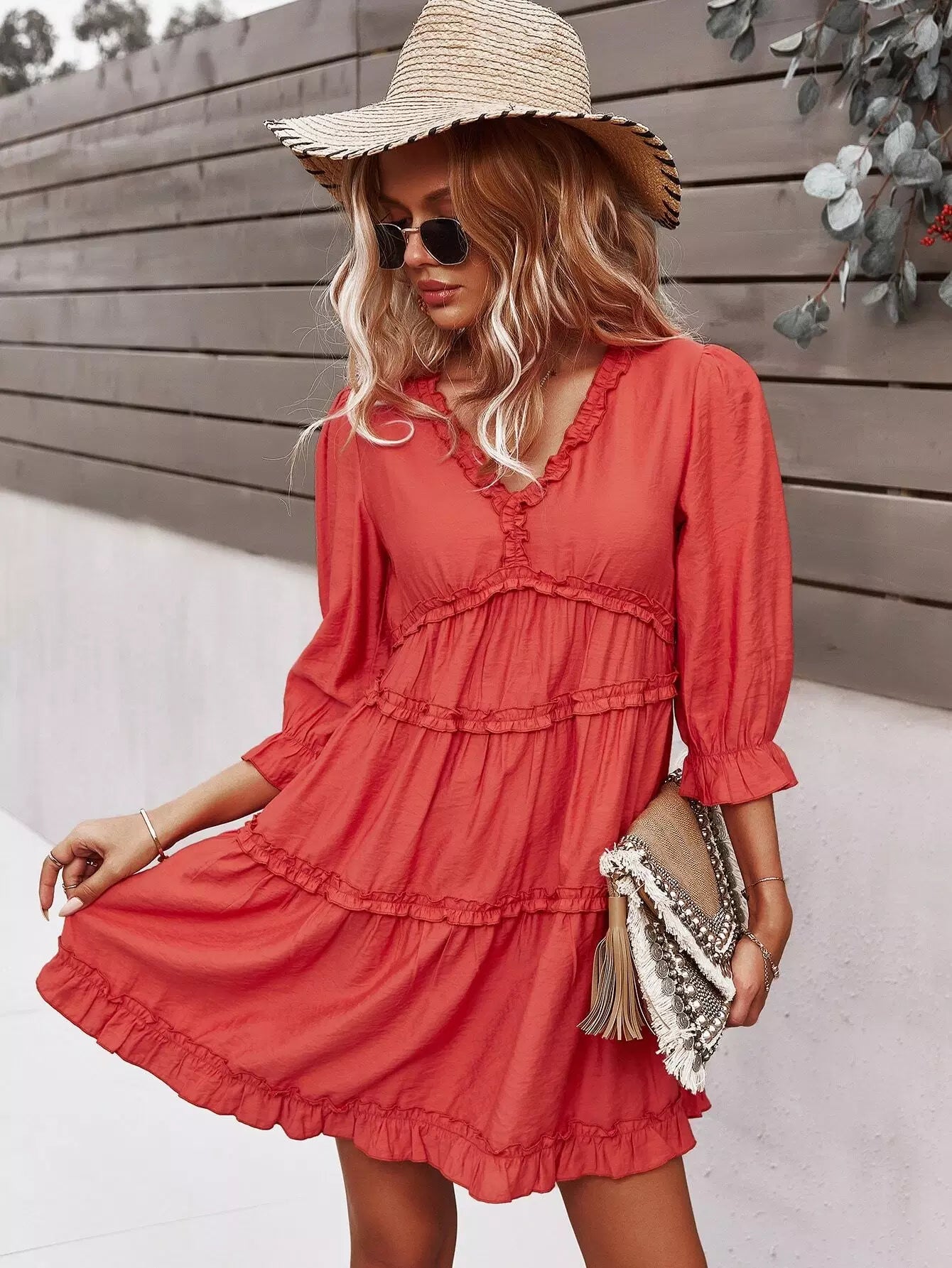 Frill Trim High Waist A-line Dress