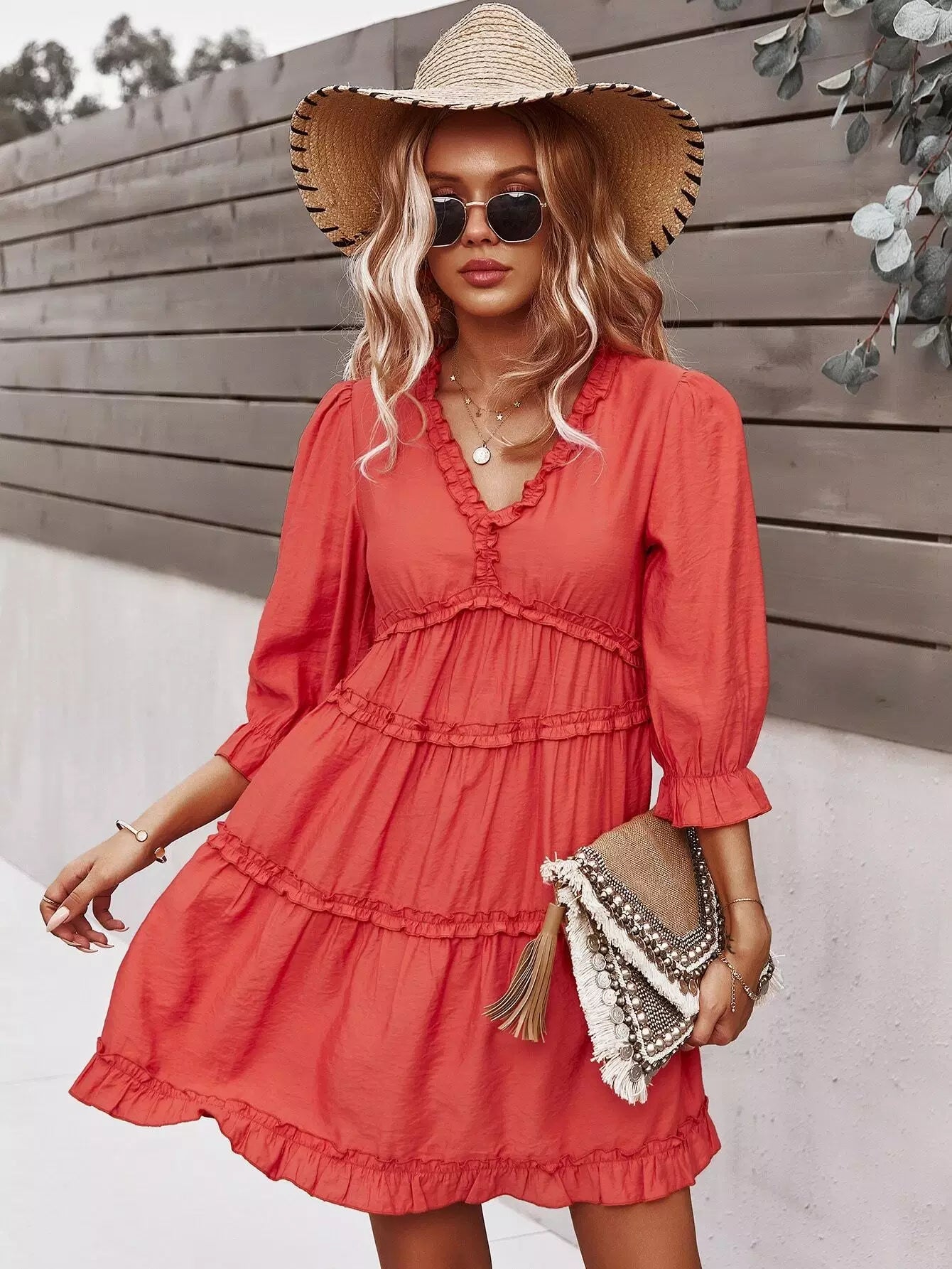Women - Frill Trim High Waist A-line Dress