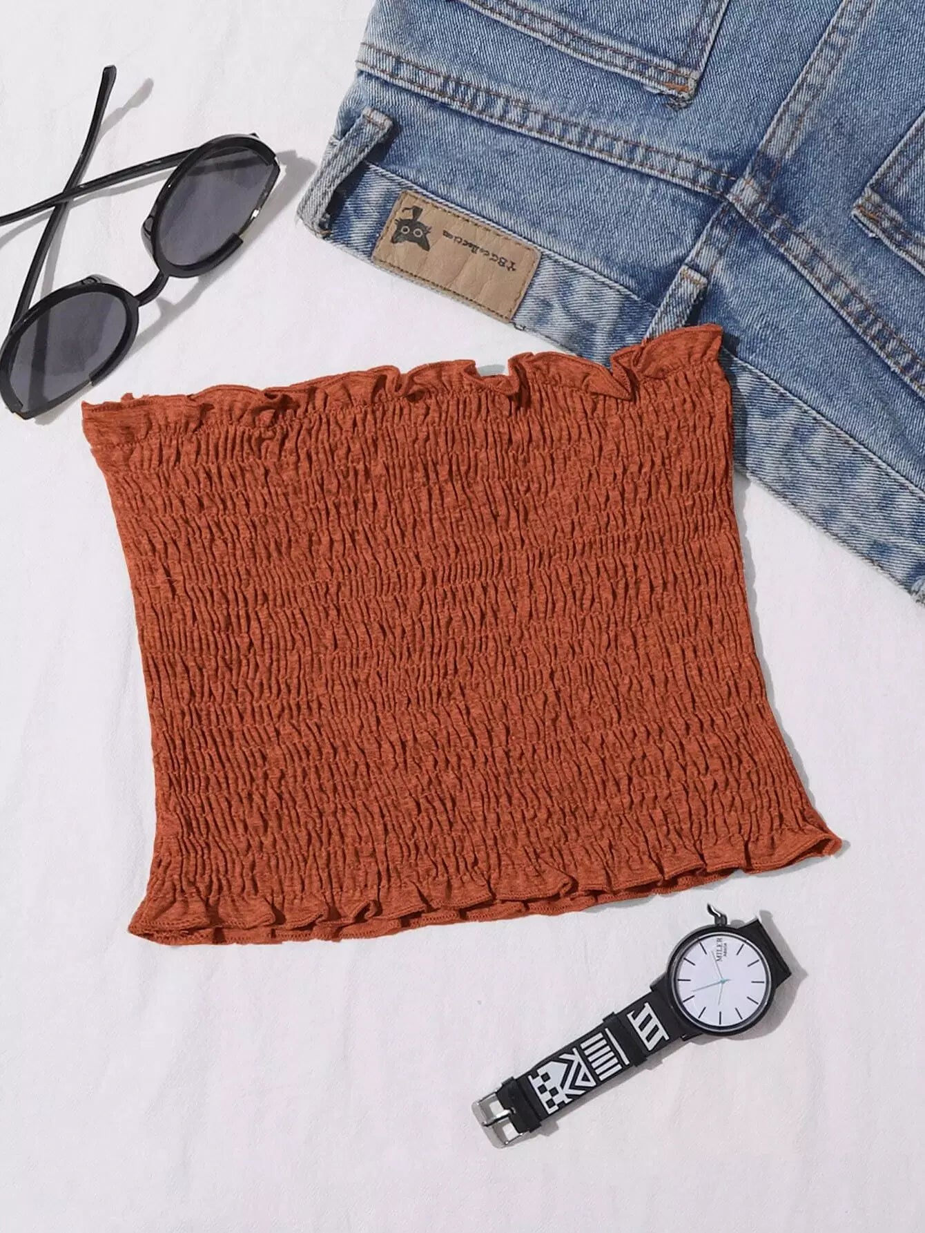 Frill Trim Shirred Tube Top