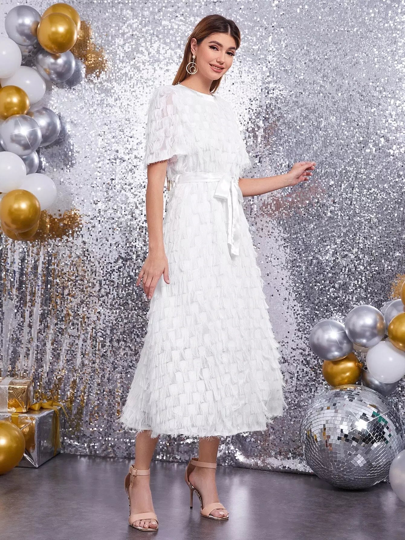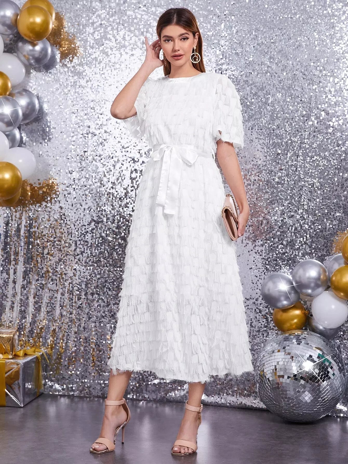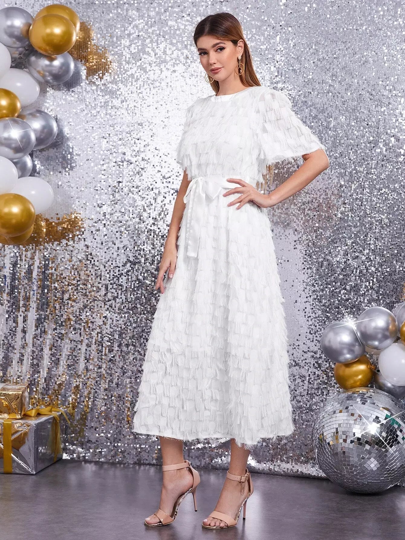Women - Fuzzy Self Belted A-line Dress