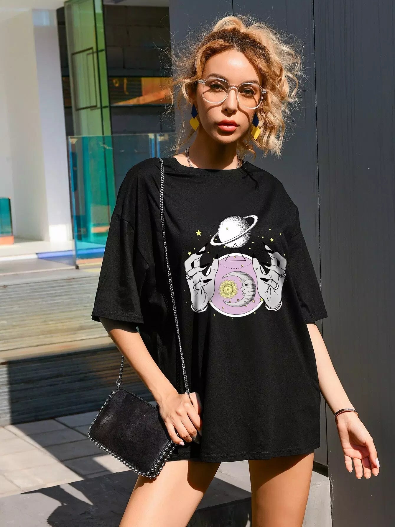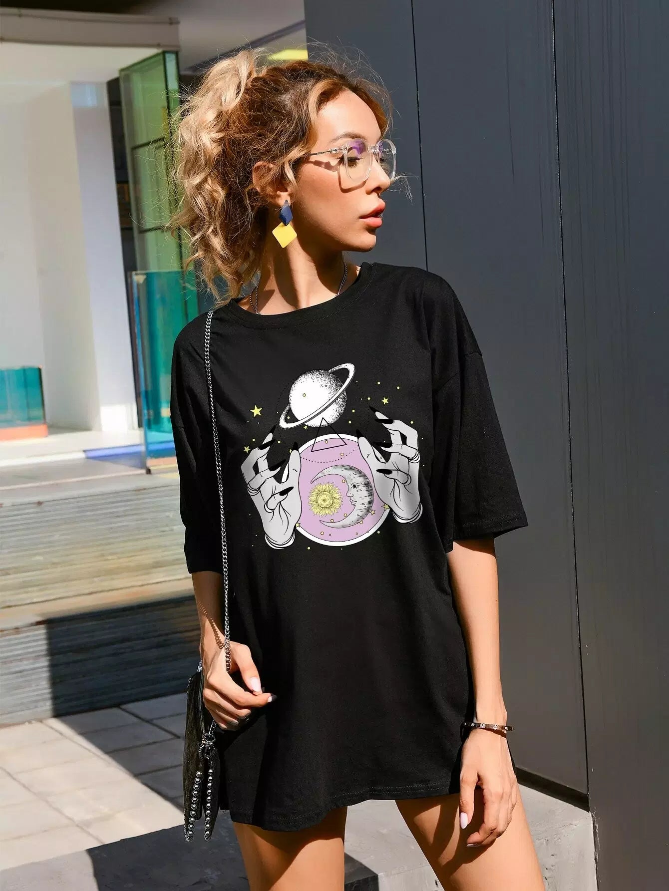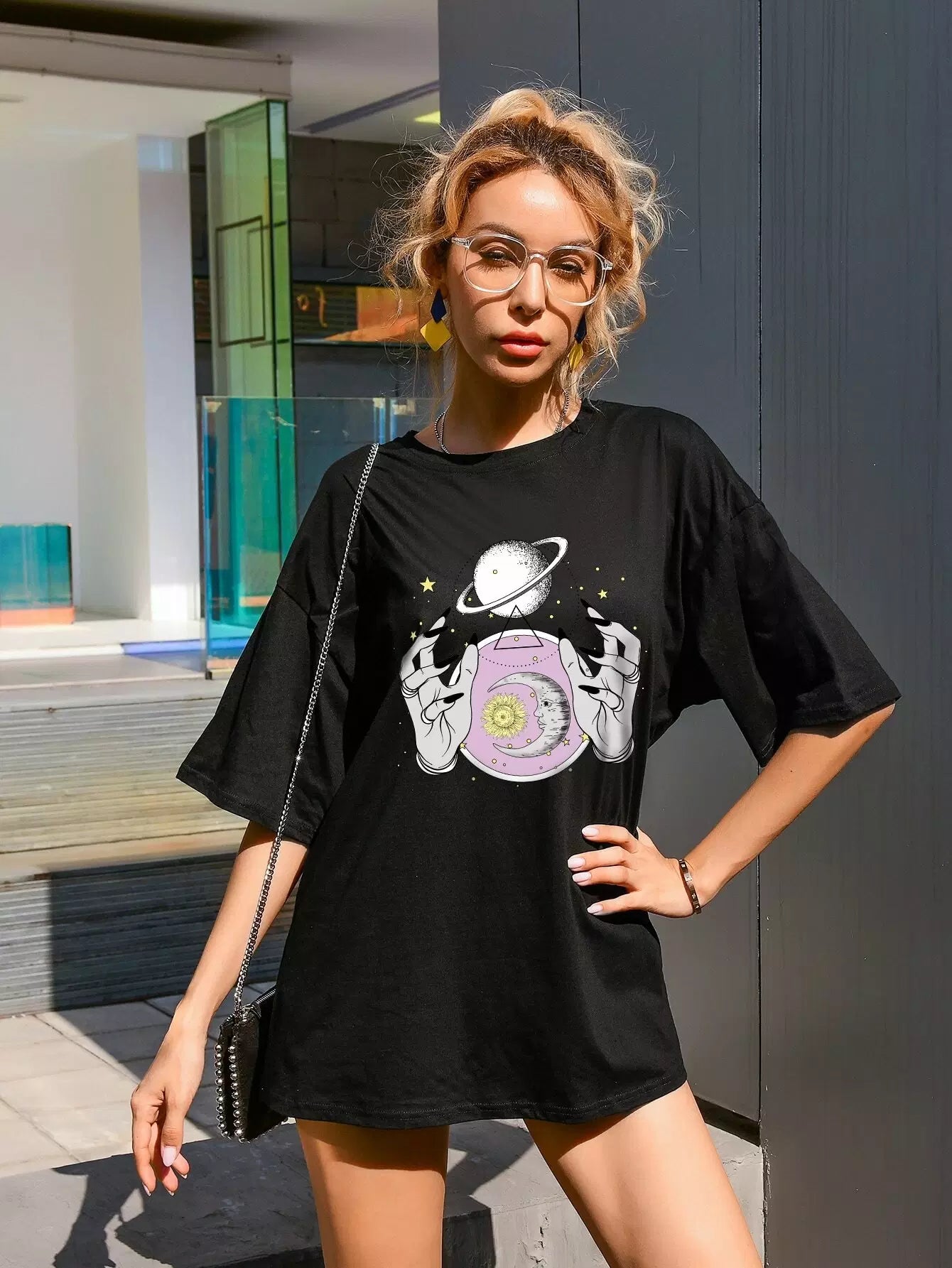 Galaxy & Hand Print Oversized Tee