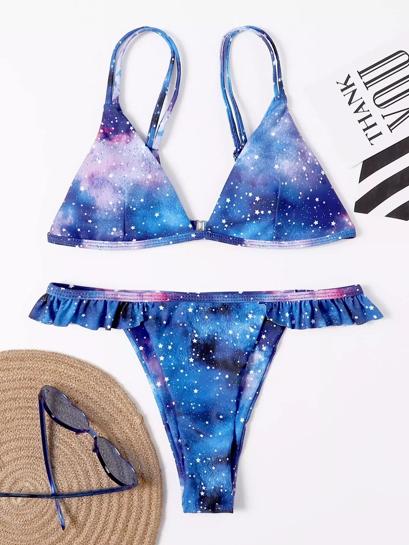 Galaxy Print Triangle Thong Bikini Swimsuit