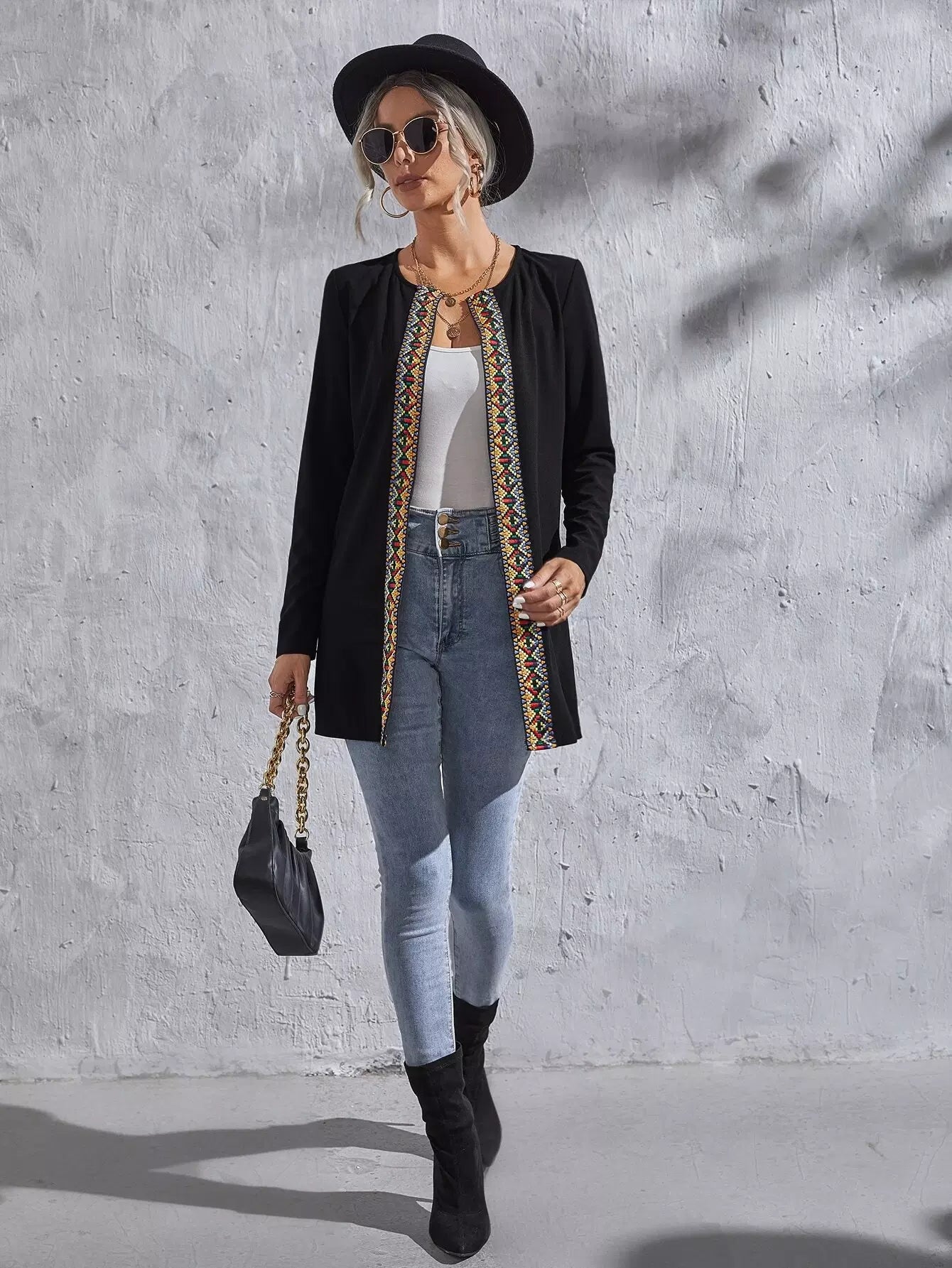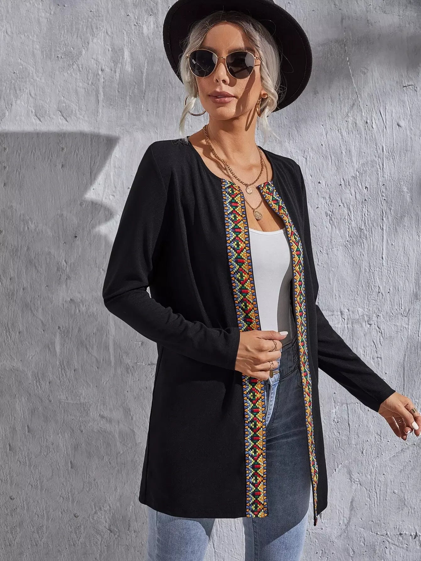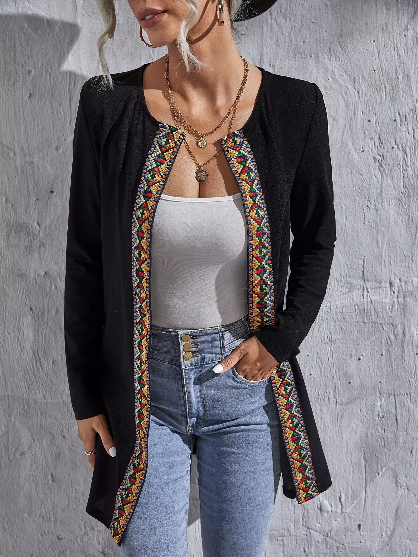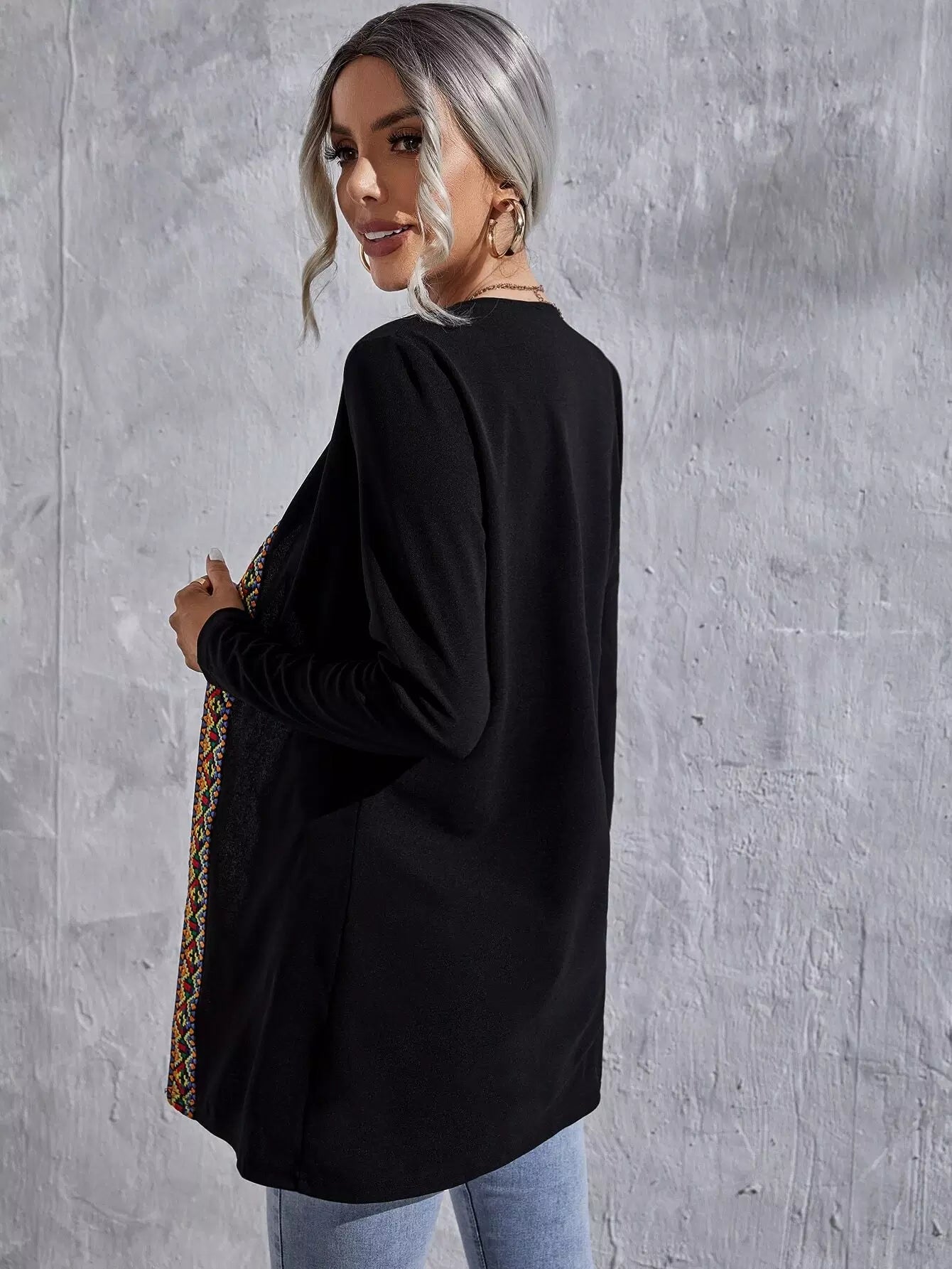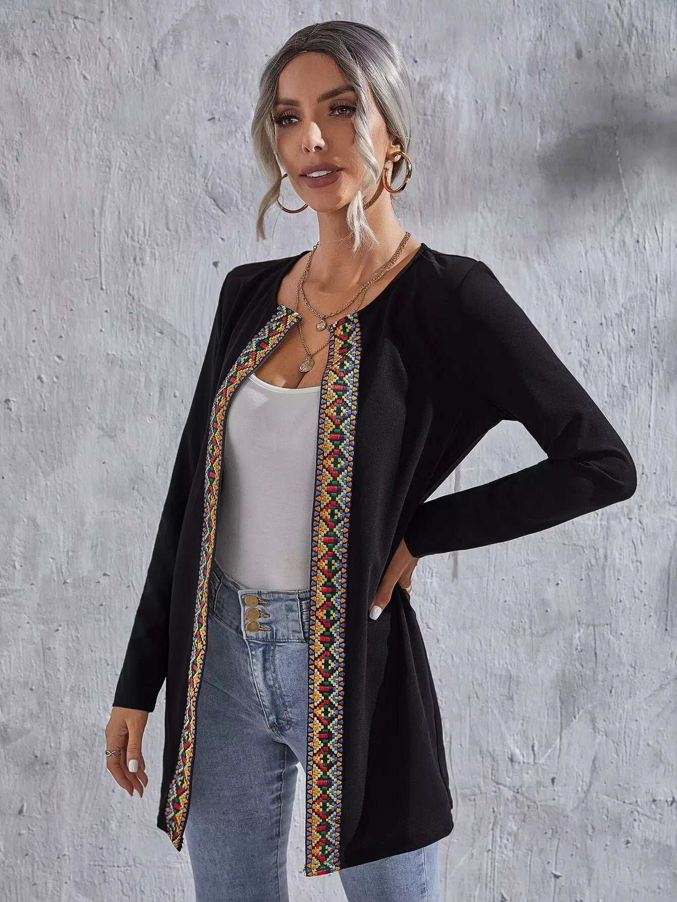 Geo Pattern Tape Open Front Coat