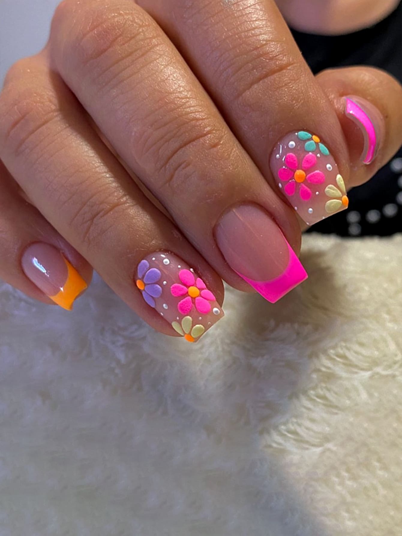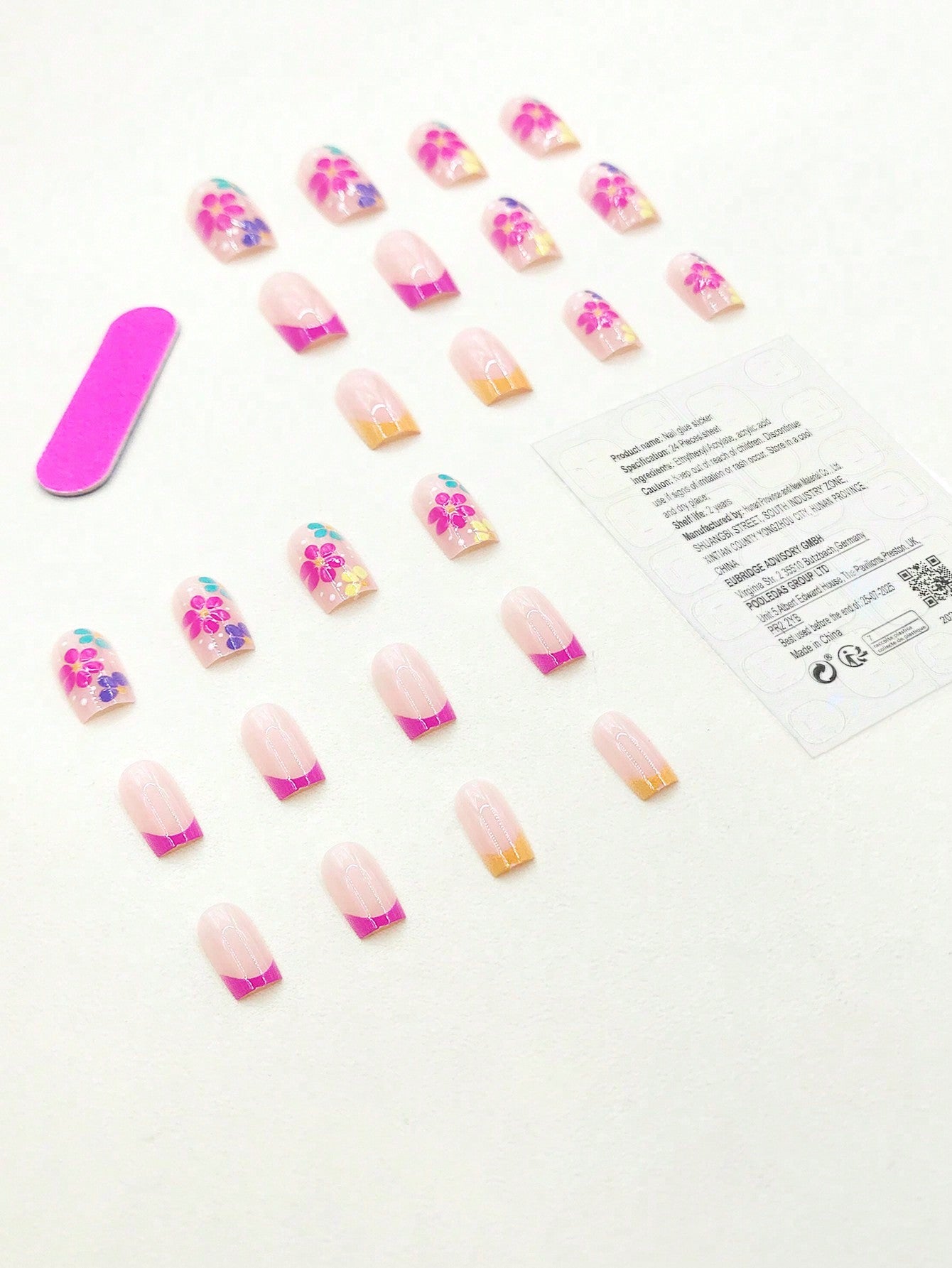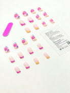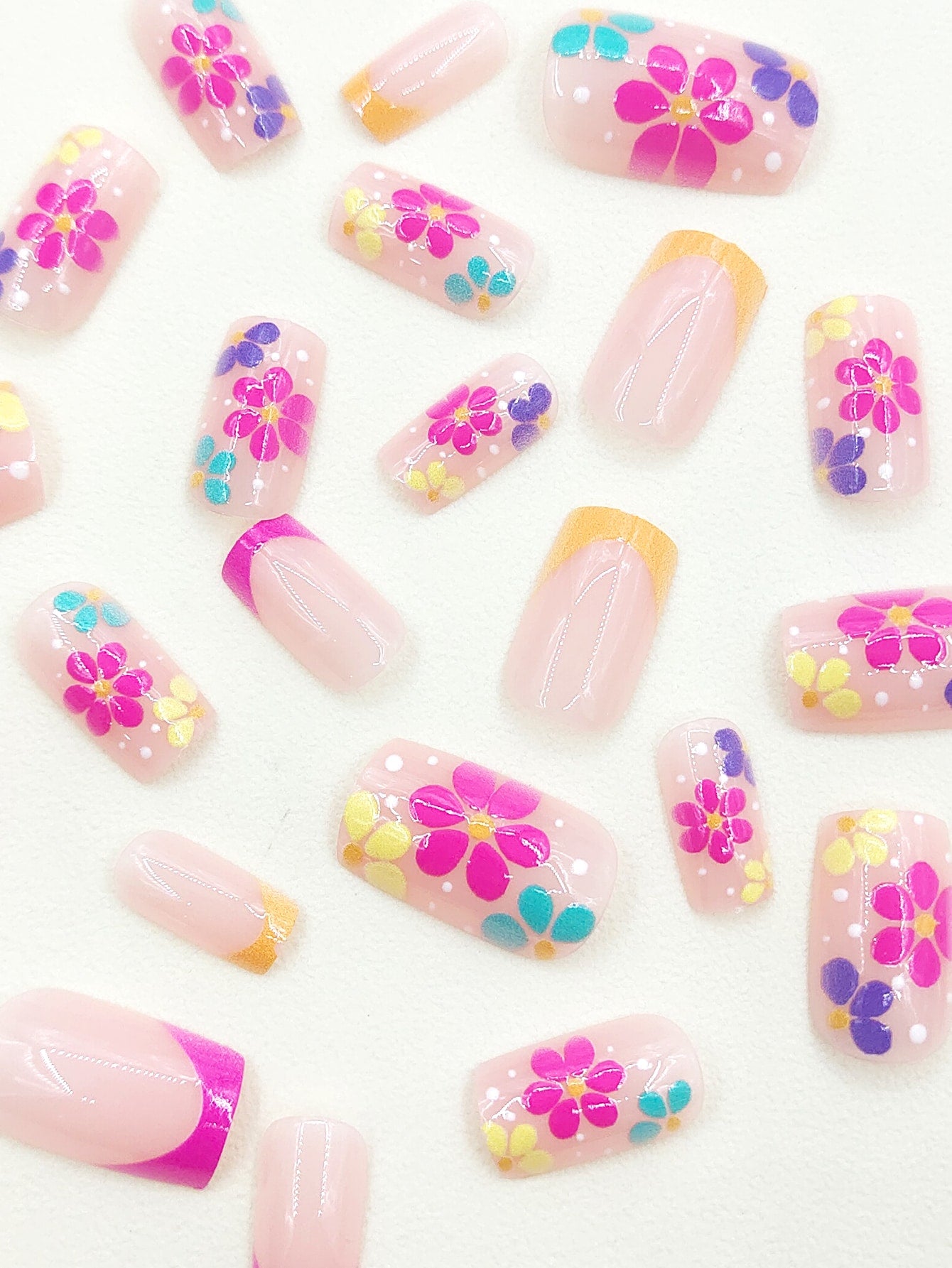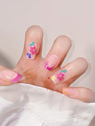Get Glamorous With 24pcs Y2K Style Long Square Fluorescent Color Floral Pattern Fake Nail & 1pc Nail