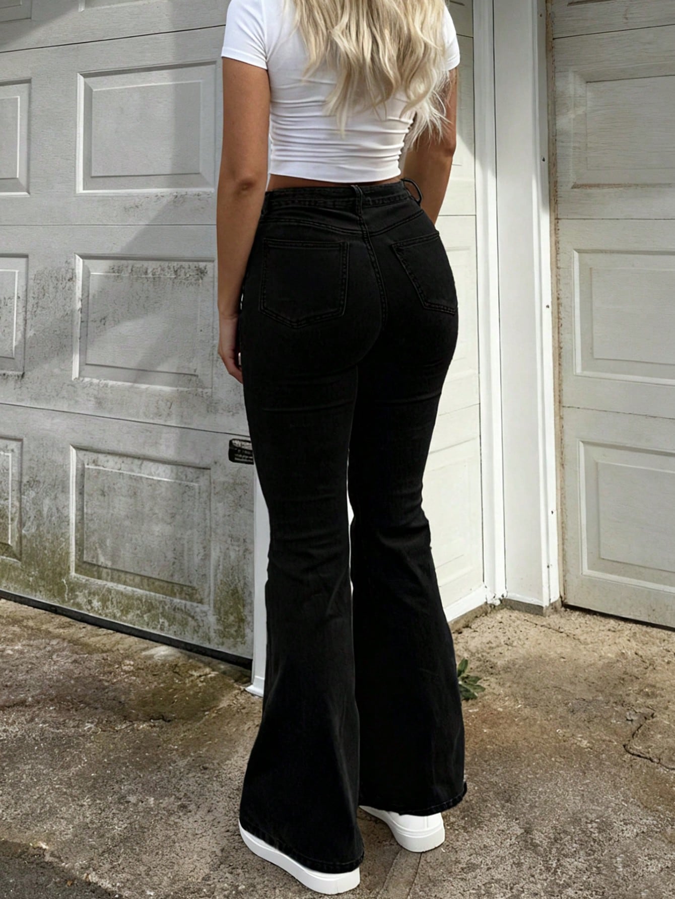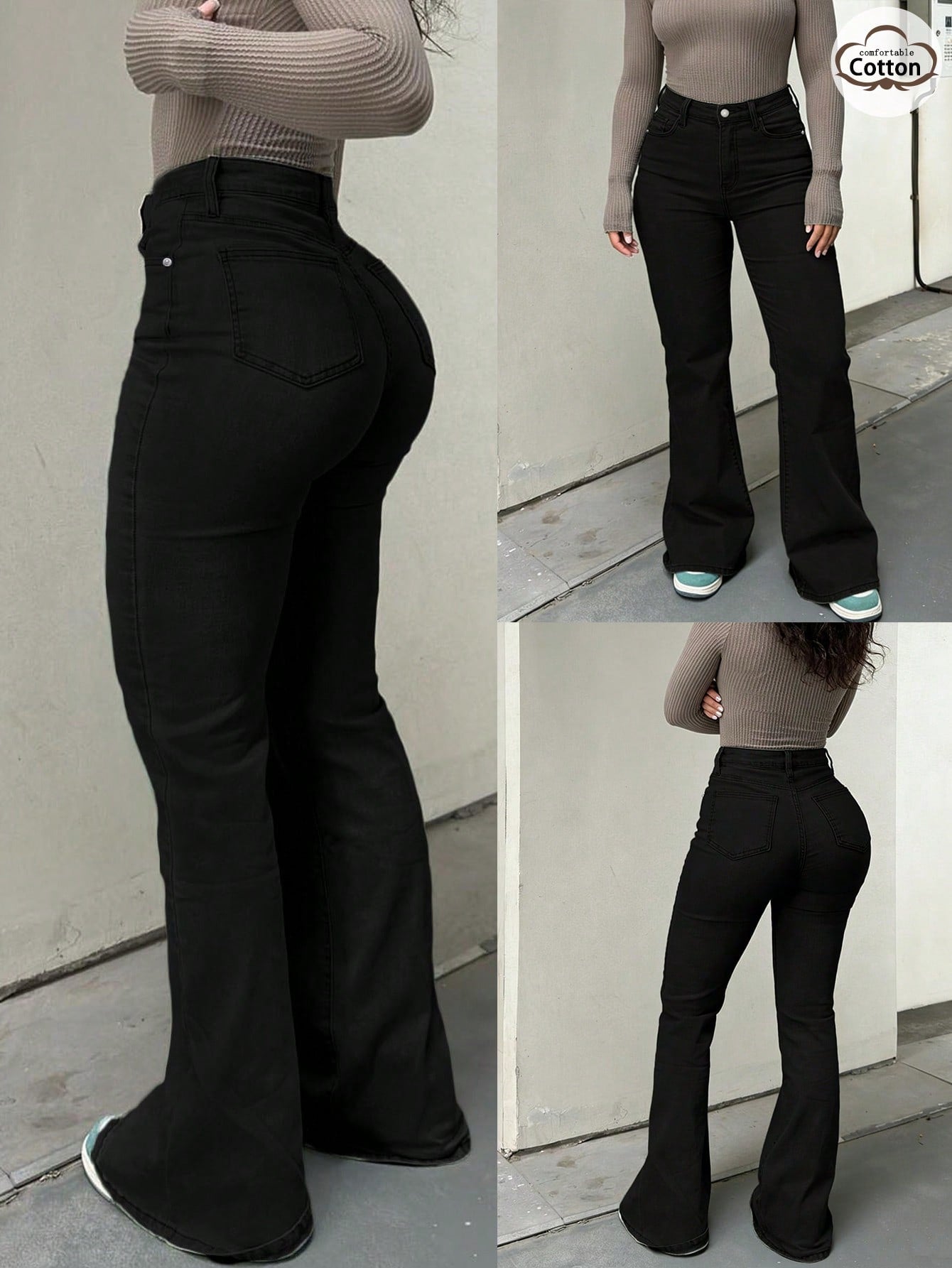 GILIPUR Y2K Black Flared Jeans Solid Color High Waisted Slim Fitting Elegant Women's Pants Fashion Stretch
