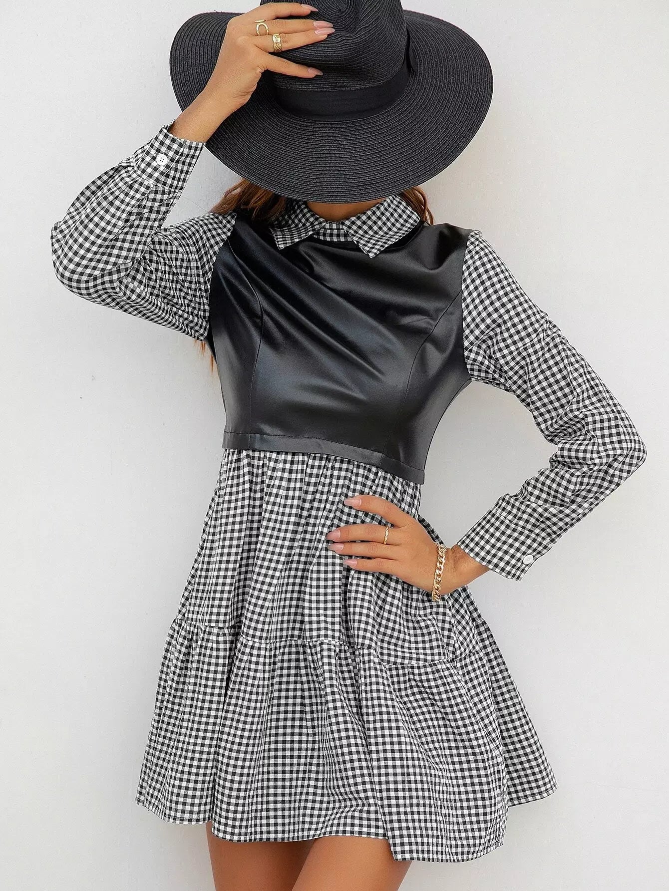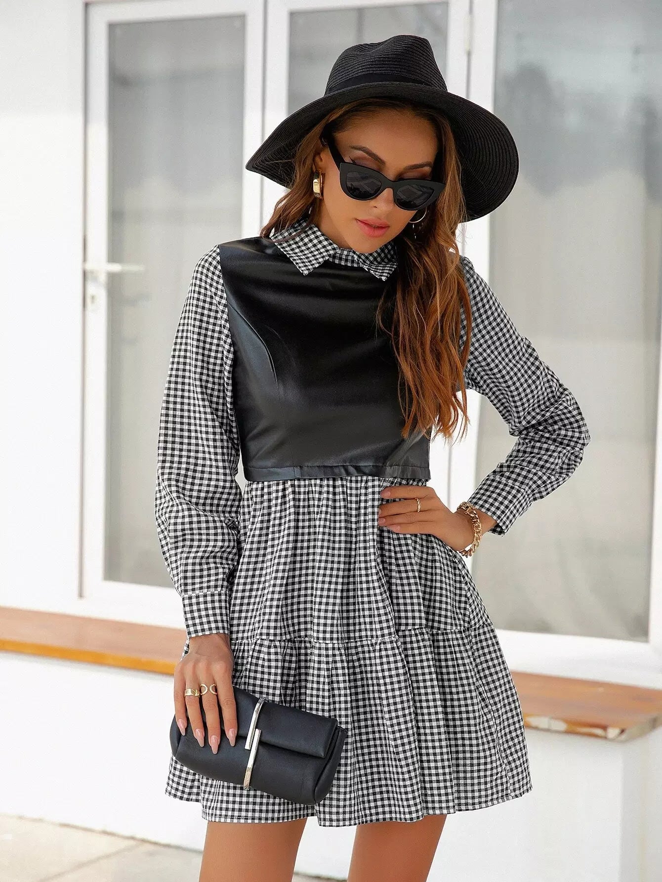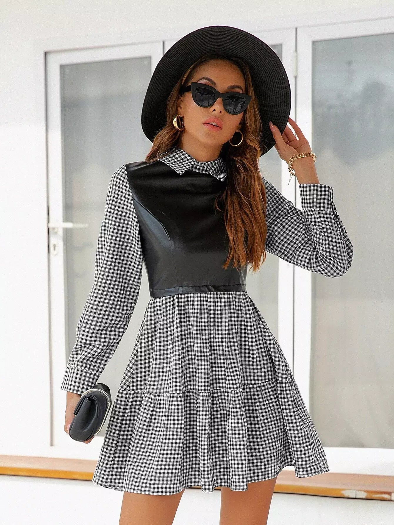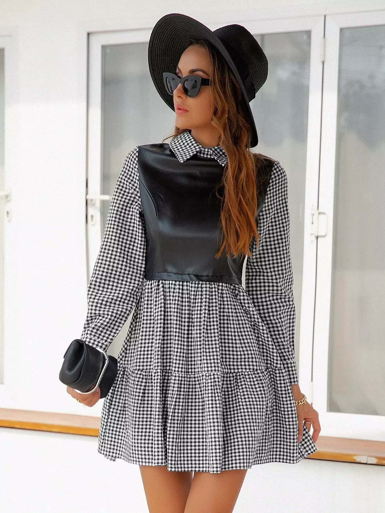 Gingham Panel Ruffle Hem 2 In 1 Dress