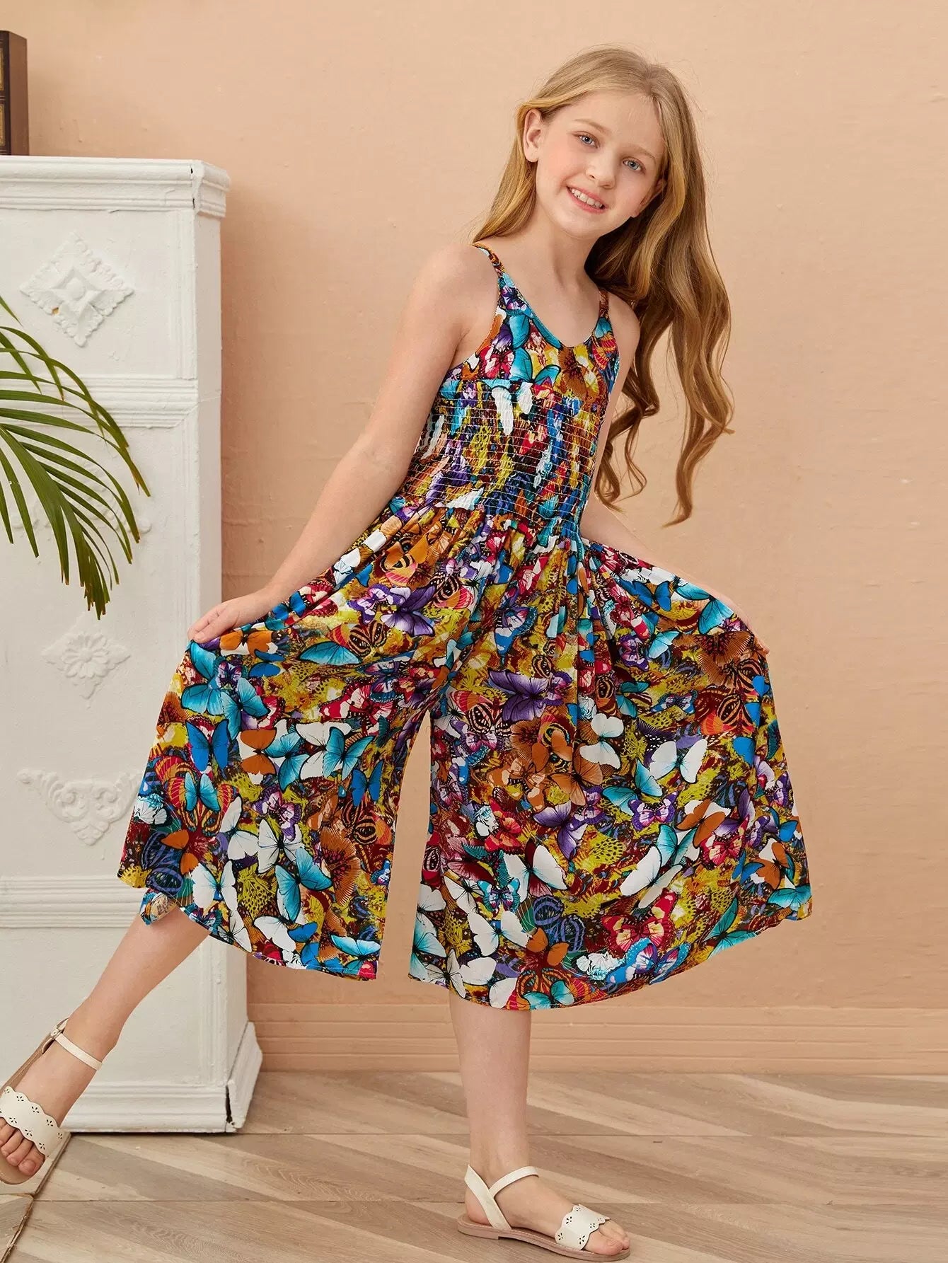 Girls Allover Butterfly Shirred Cami Jumpsuit