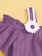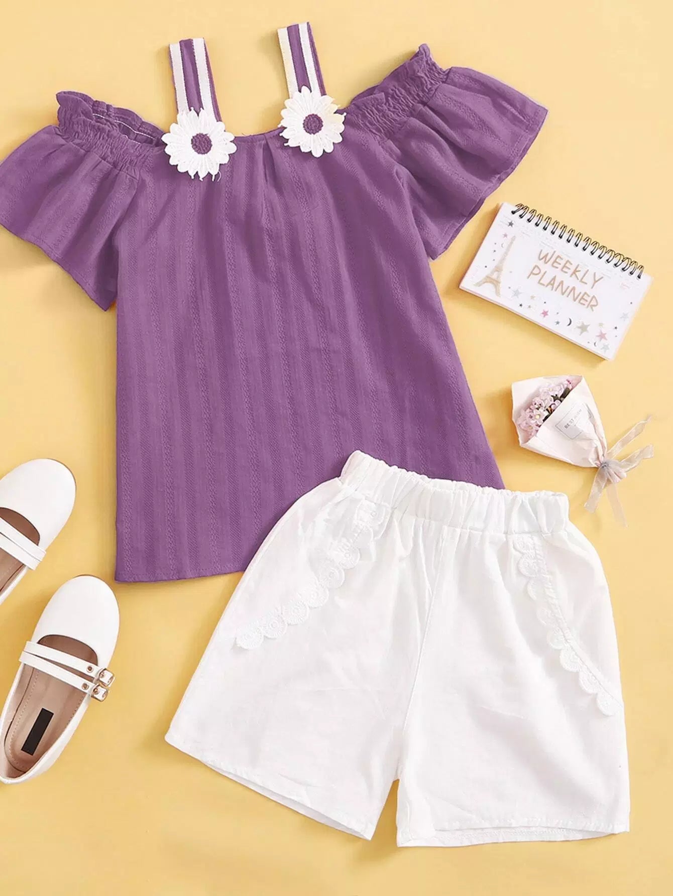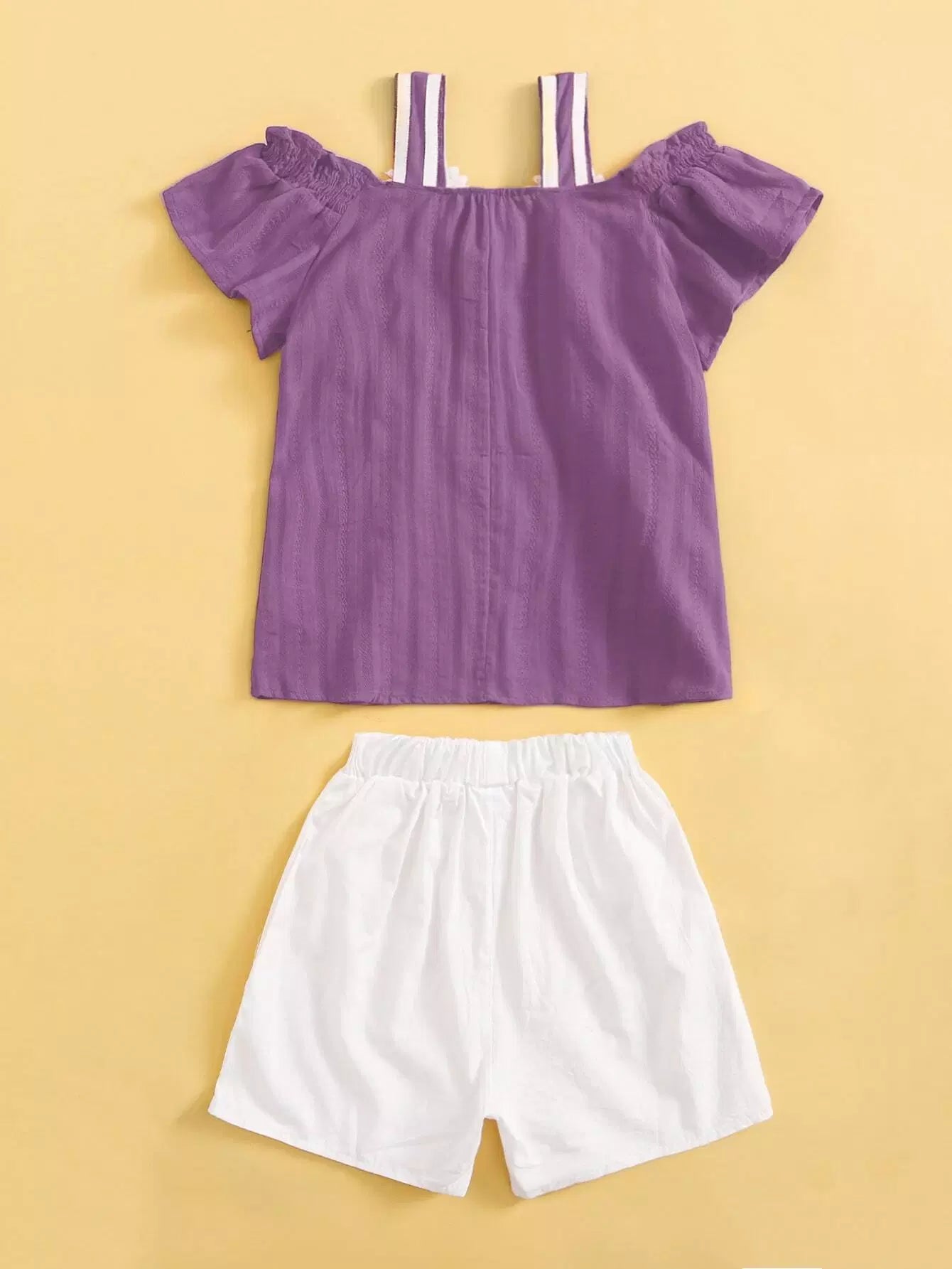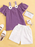 Girls Appliques Cold Shoulder Top & Shorts