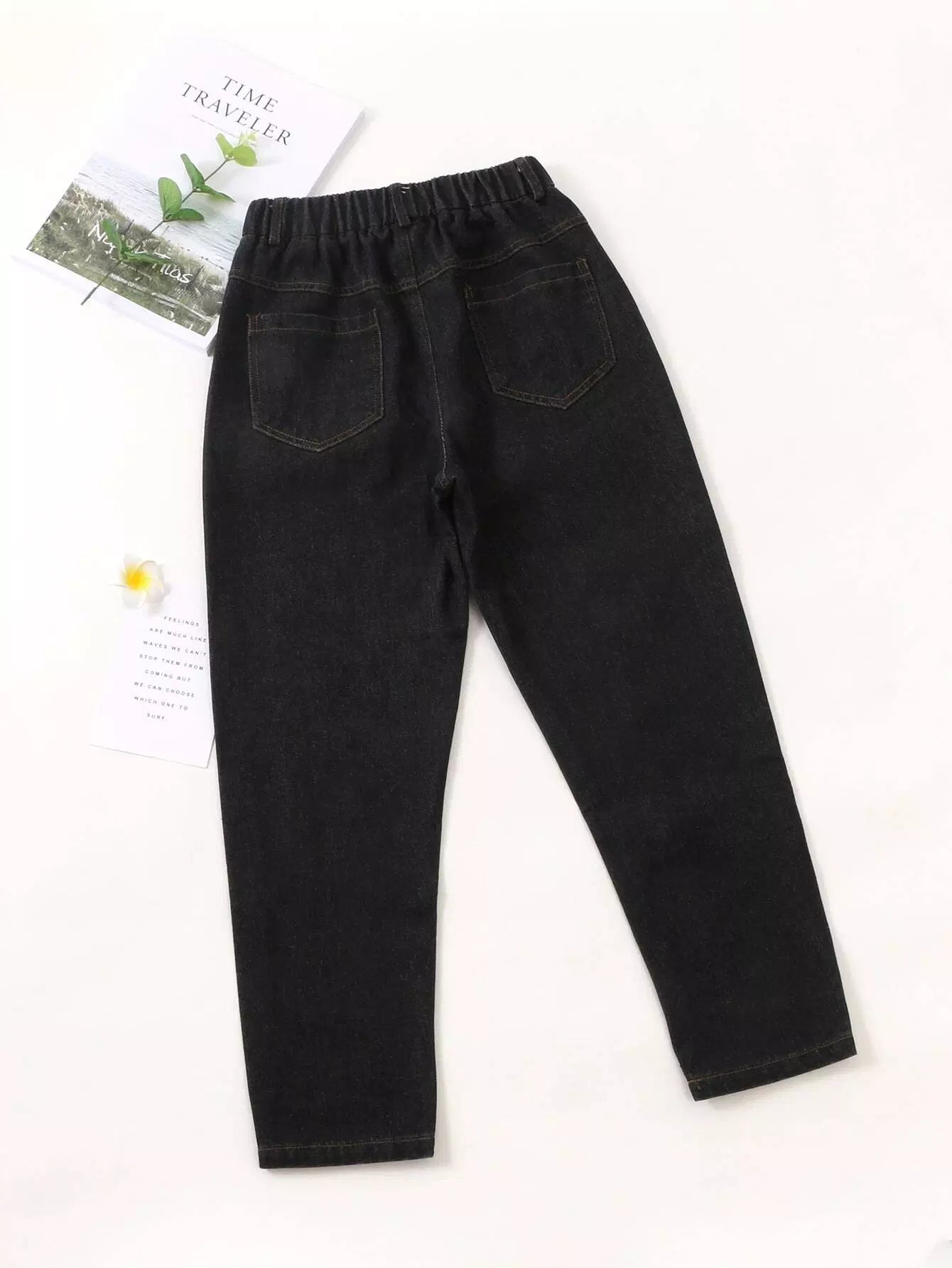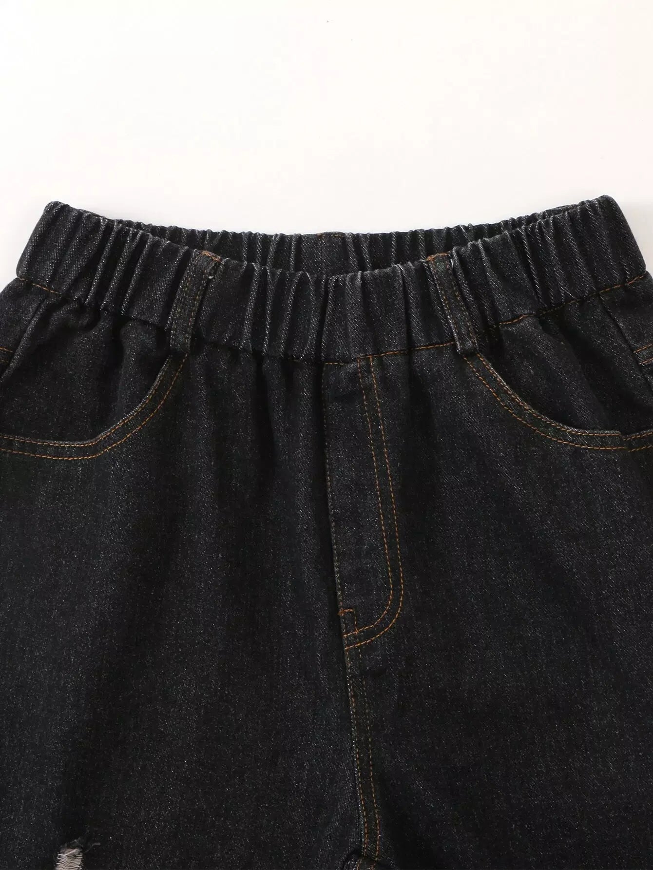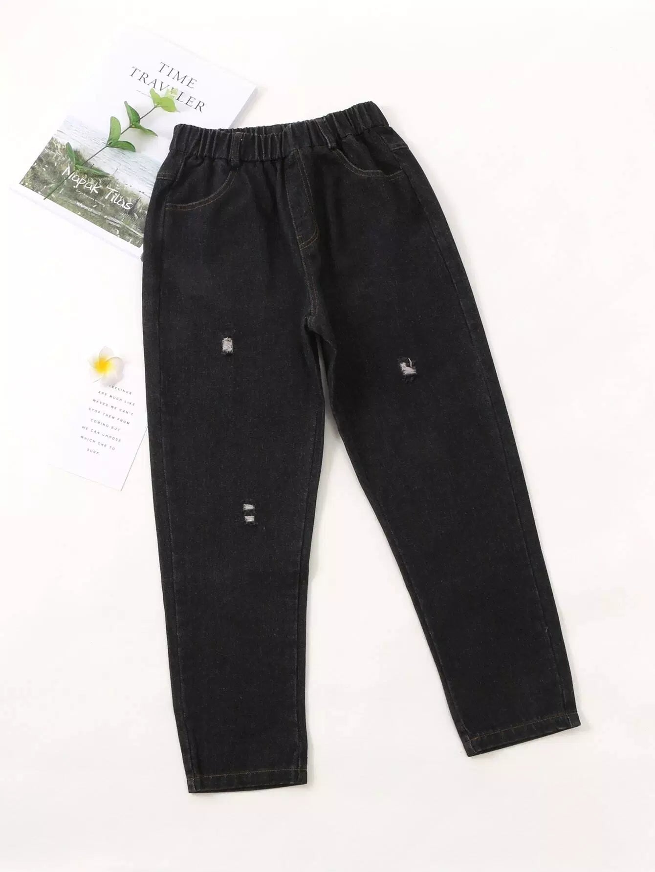 Girls Elastic Waist Ripped Mom Fit Jeans