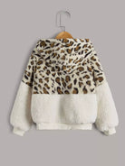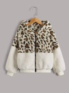 Kids - Girls Leopard Pattern Color Block Hooded Teddy Jacket