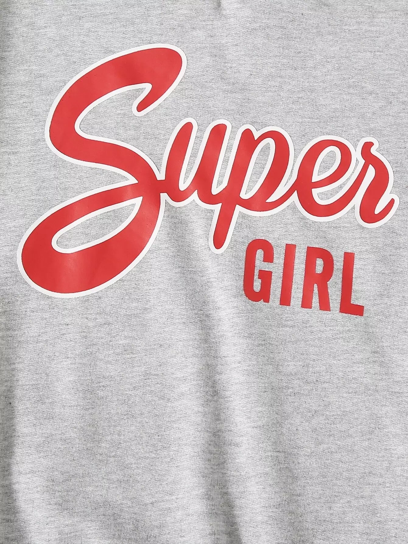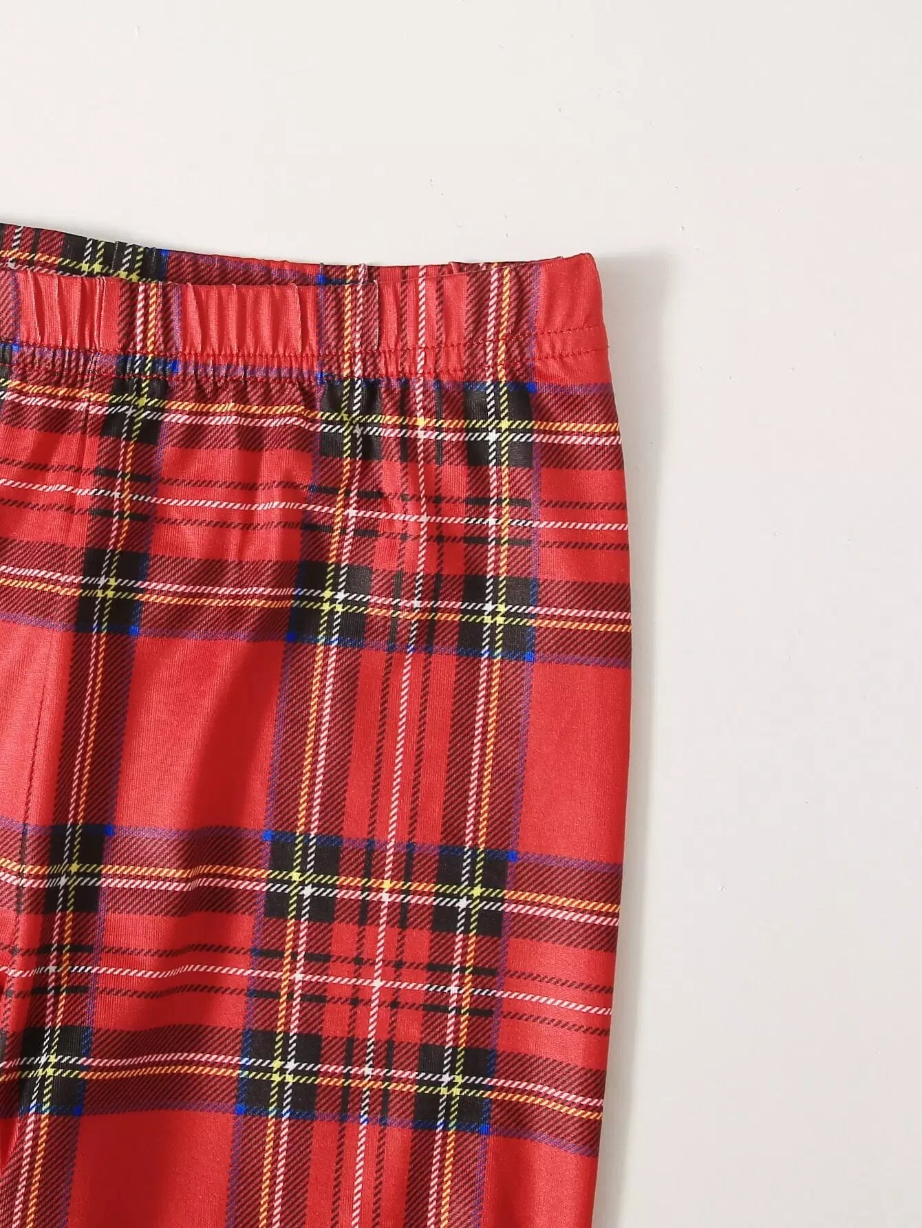 Kids - Girls Letter Graphic Pullover & Tartan Leggings Set