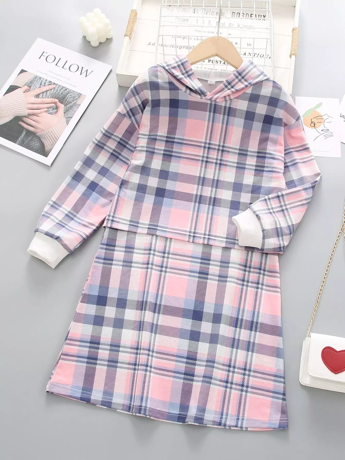 - Girls Plaid Drop Shoulder Hoodie & Tank Dress