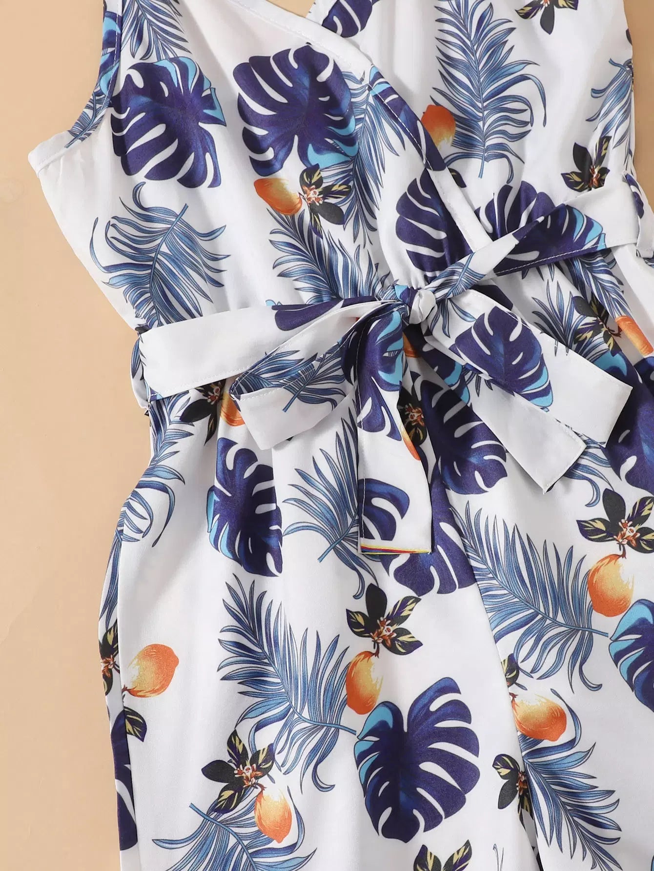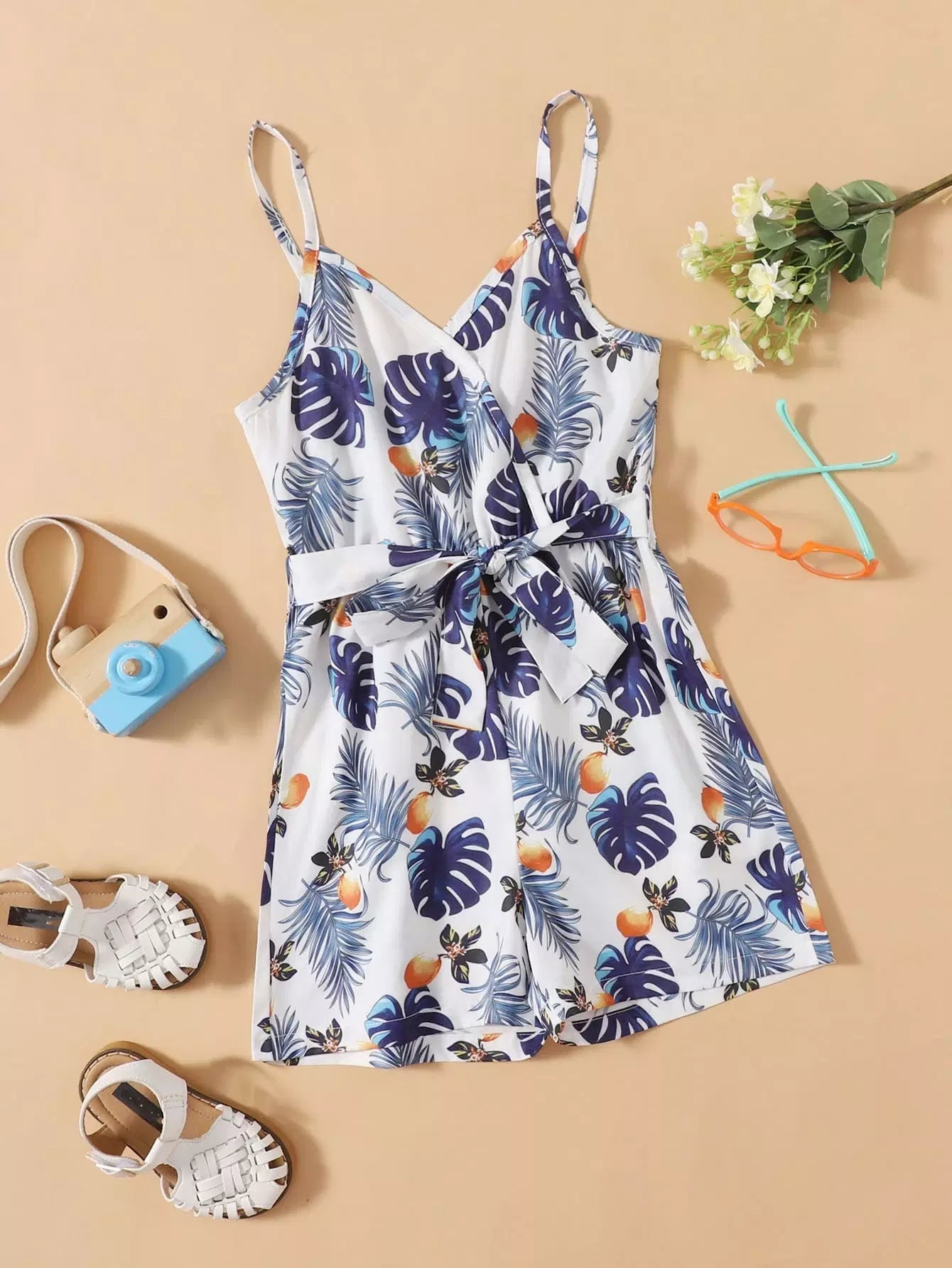 Girls Plants Print Cami Romper Without Belt