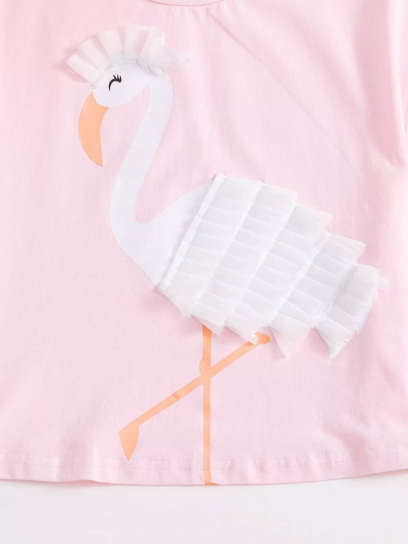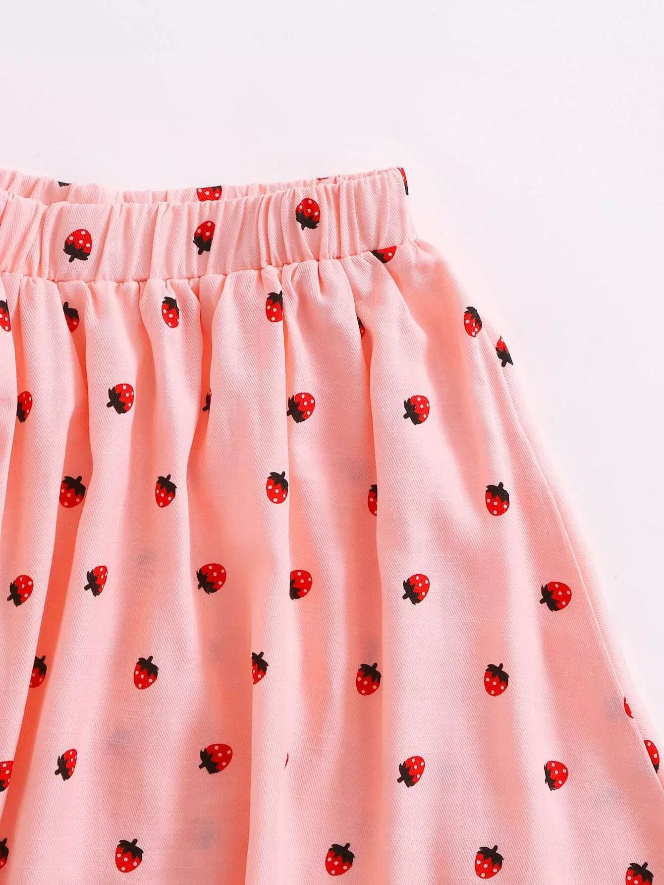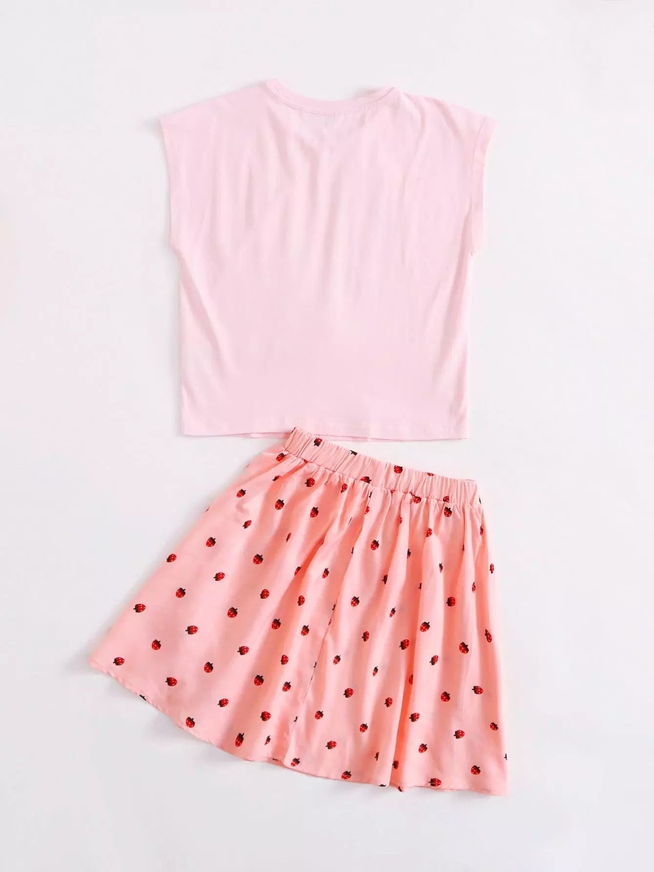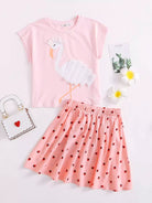 Girls Pleated Appliques Flamingo Print Top & Strawberry Print Skirt Set