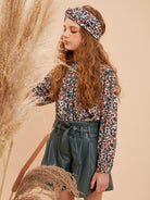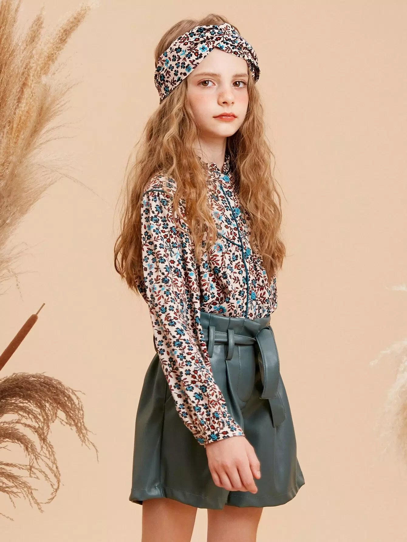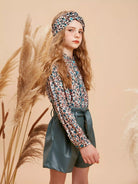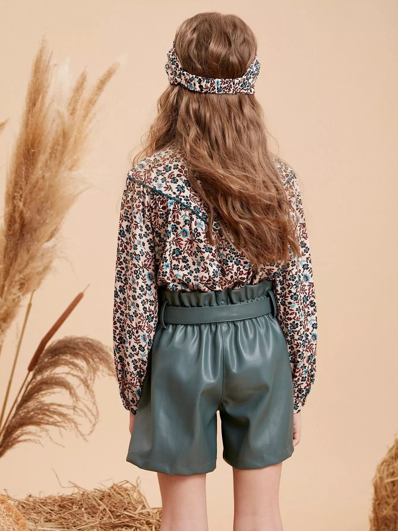 Girls Plicated Detail PU Leather Shorts Without Belt
