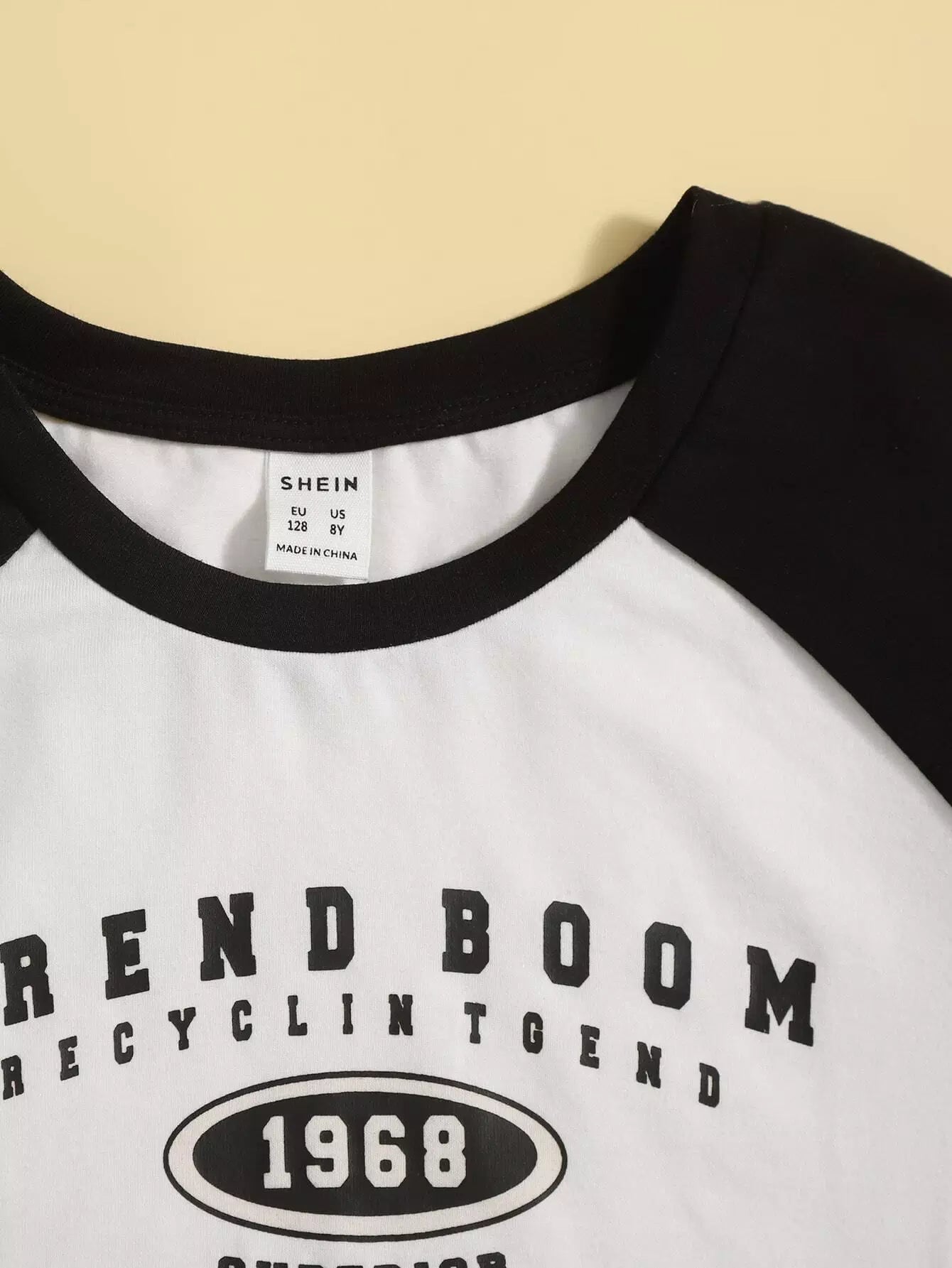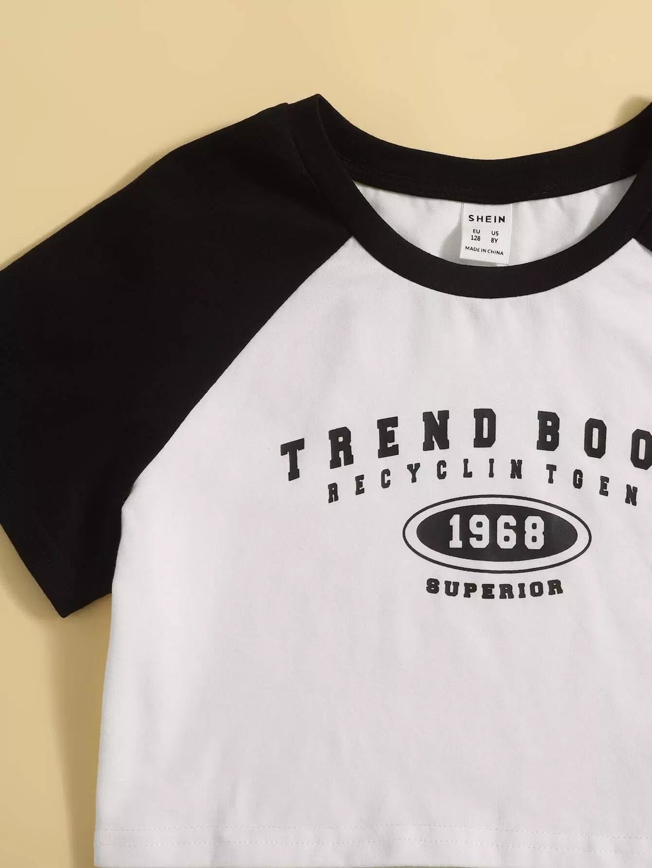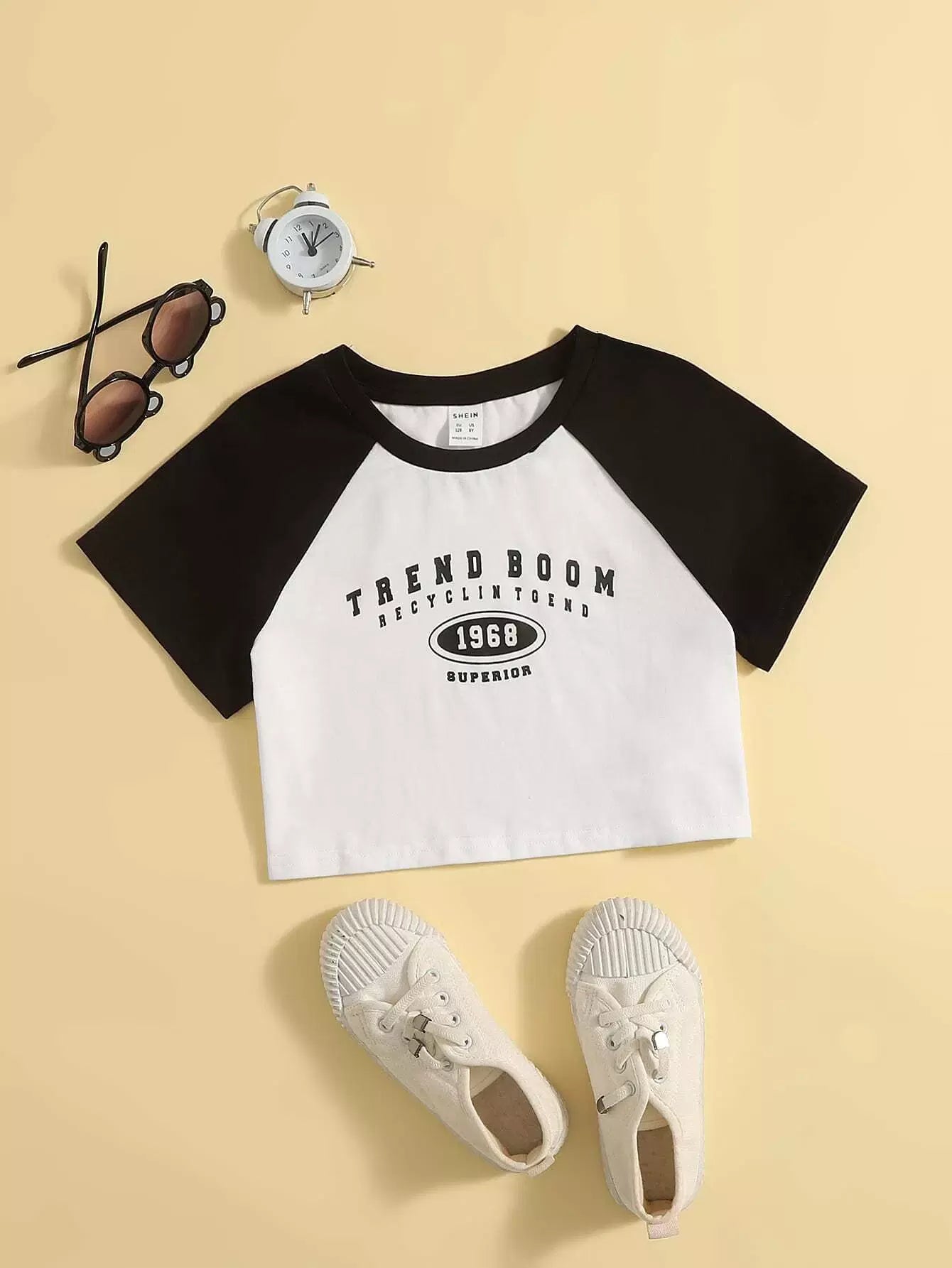 Girls Raglan Sleeve Letter Graphic Crop Top