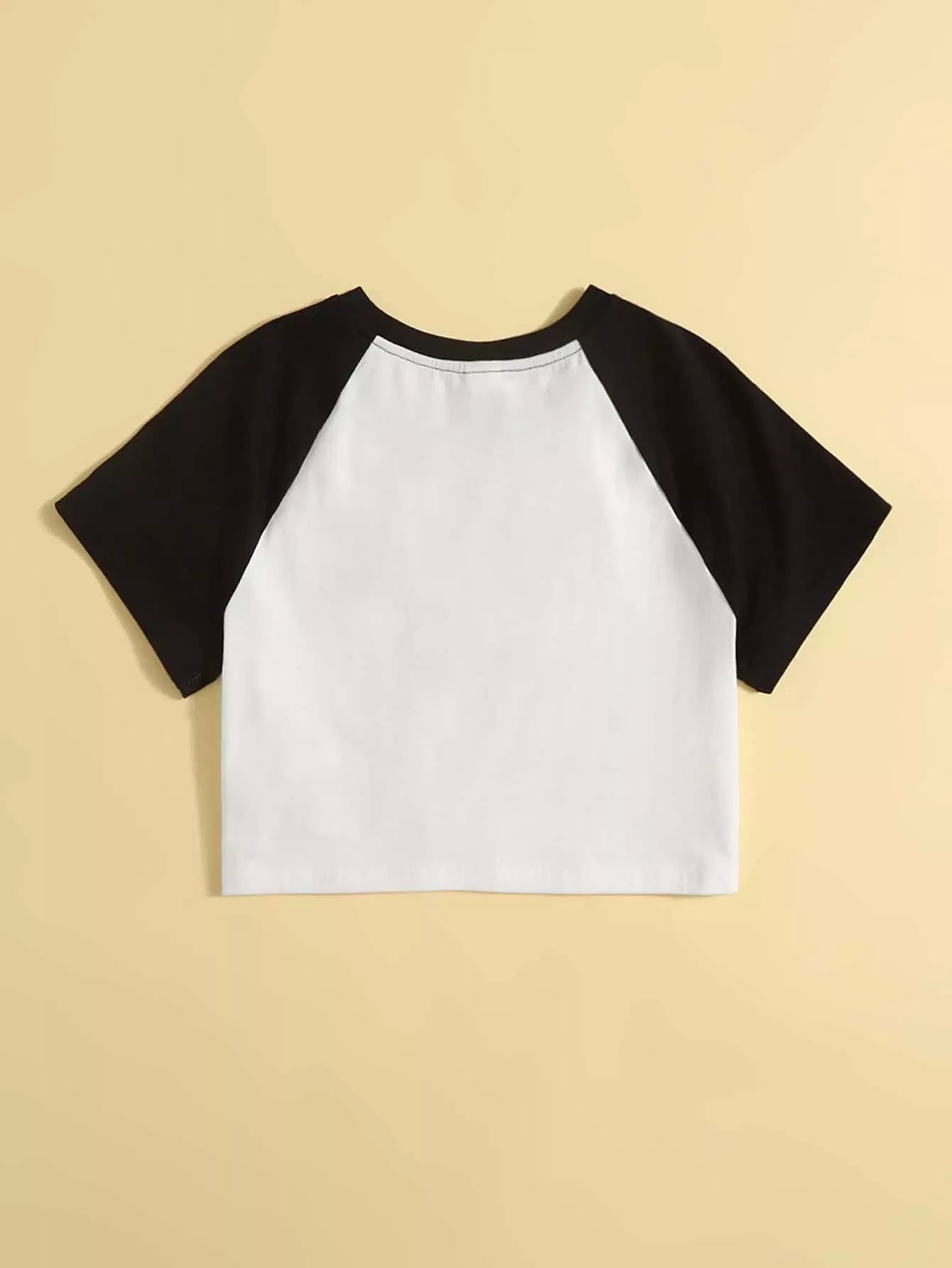 Kids - Girls Raglan Sleeve Letter Graphic Crop Top