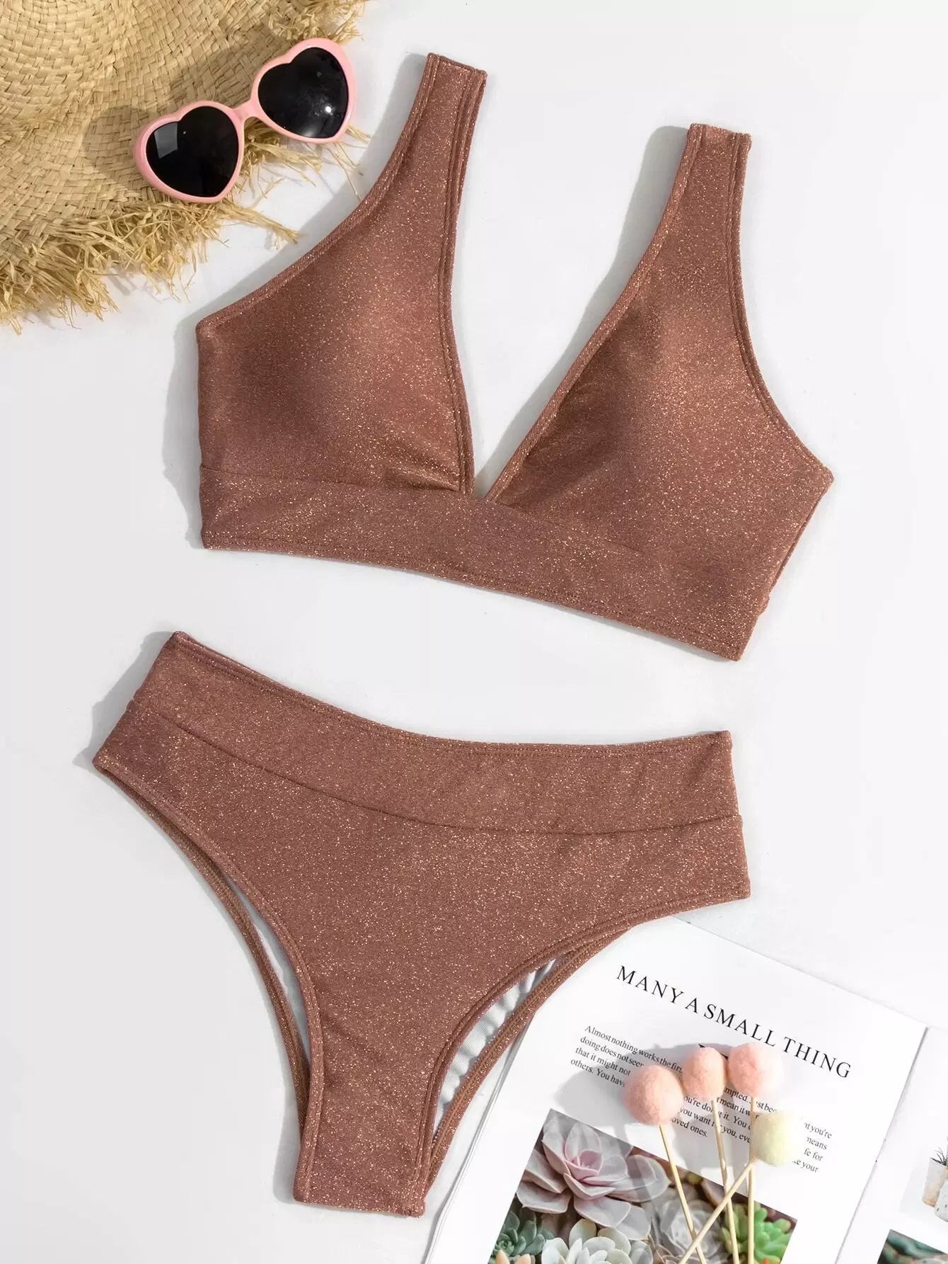 Glitter V Neck Bikini Swimsuit