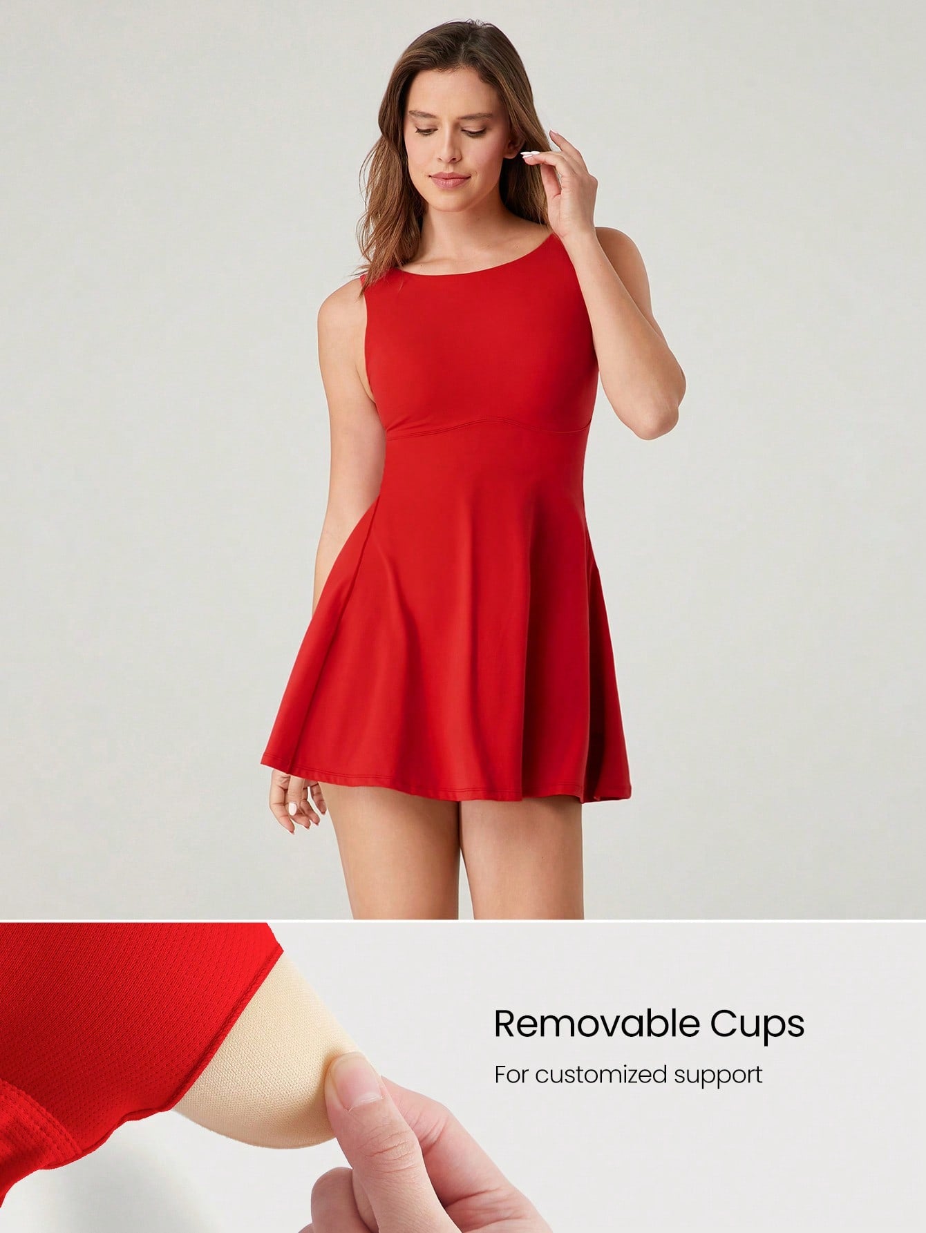 GLOWMODE FeatherFitâ„-Air Peekaboo Curved One-Shoulder Twisted Backless Dress With Built-In Shorts Low